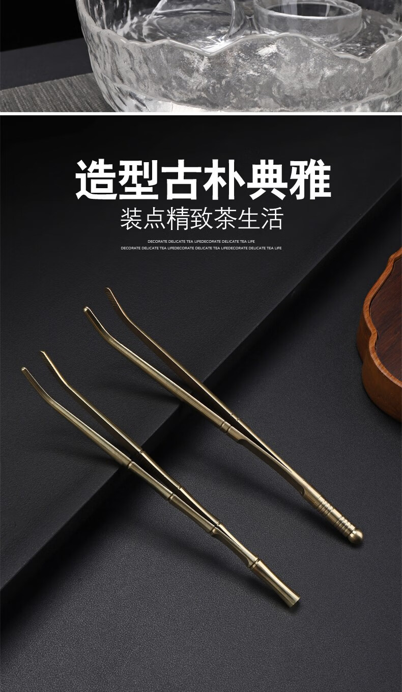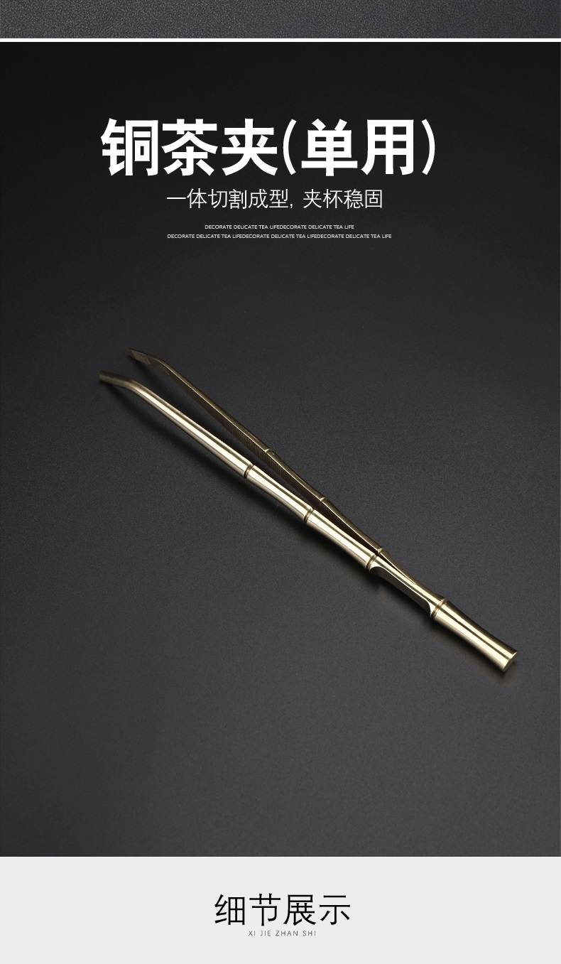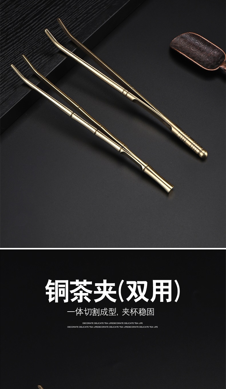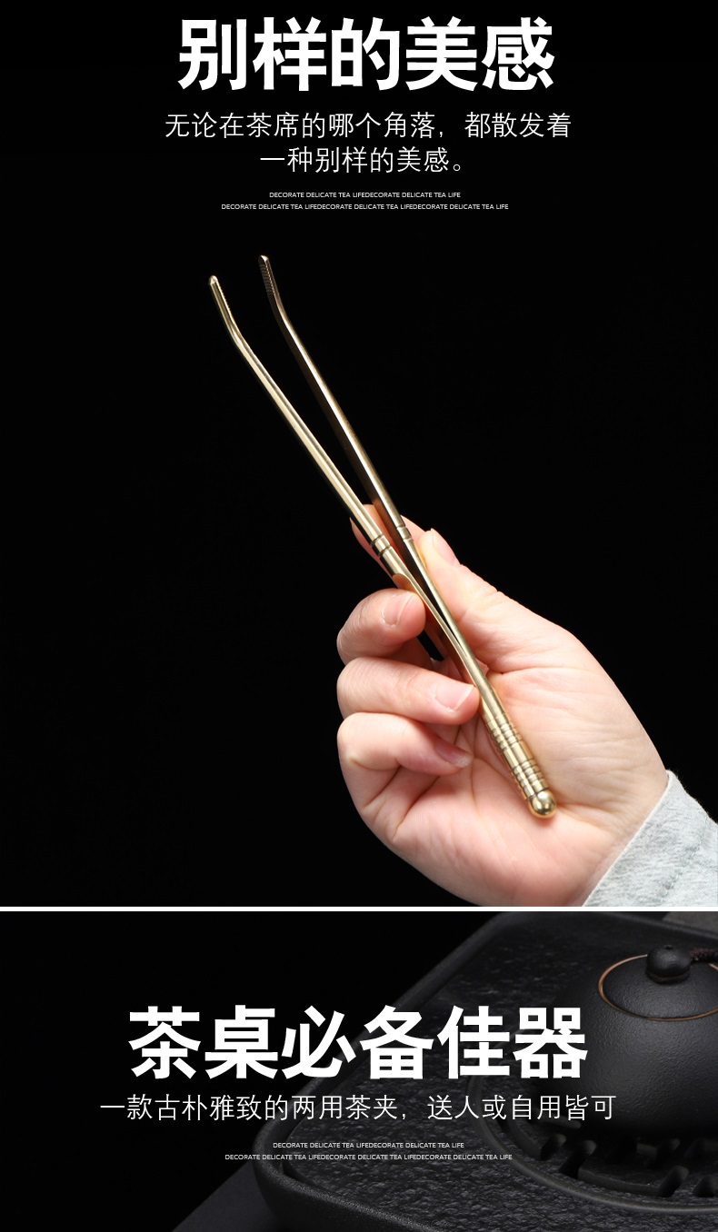 Zhengyang Tea Clamp Thickened Copper Color Copper Tea Clamp Tweezers Tea Cup Clamp Tea Knife Clamp Tea Ceremony Six Gentlemen Tea Fork Tea Clamp (Pure Copper)_Jieshenggaosheng