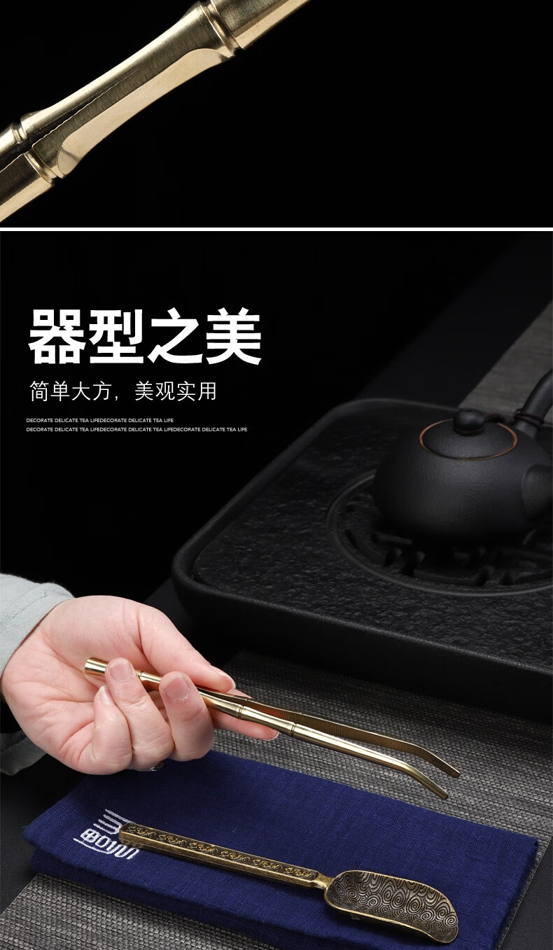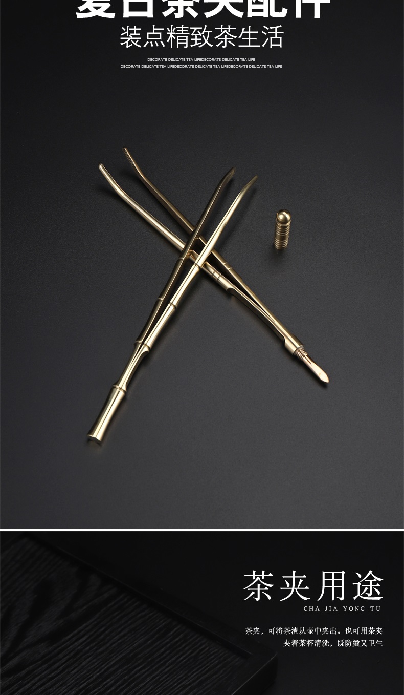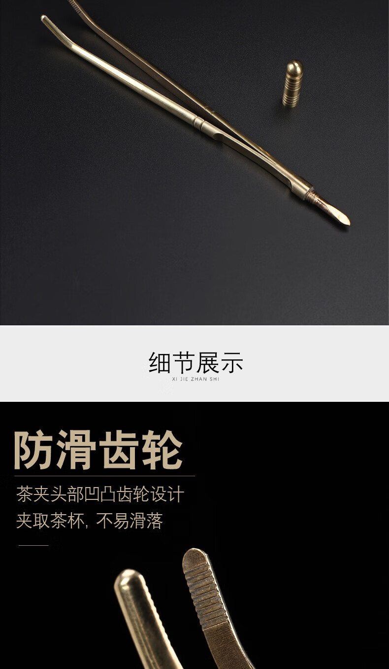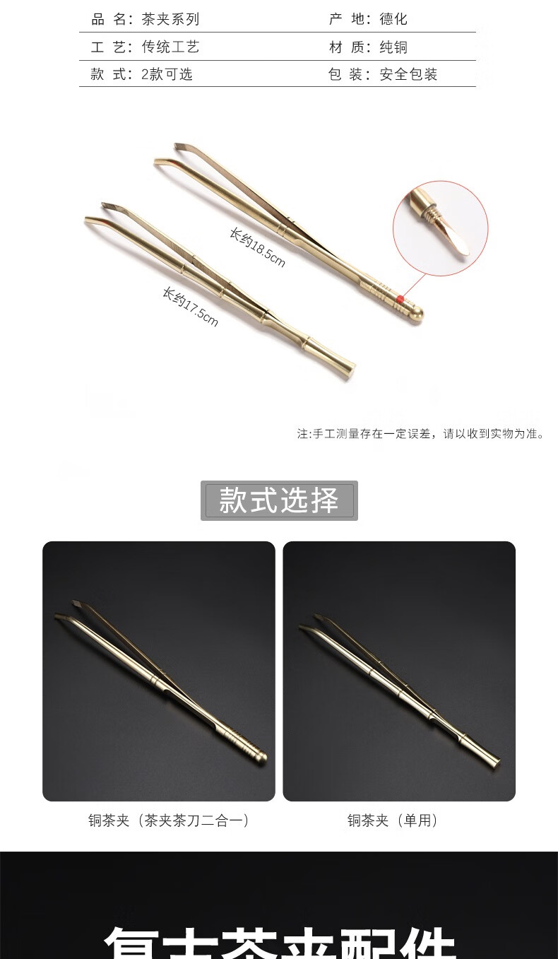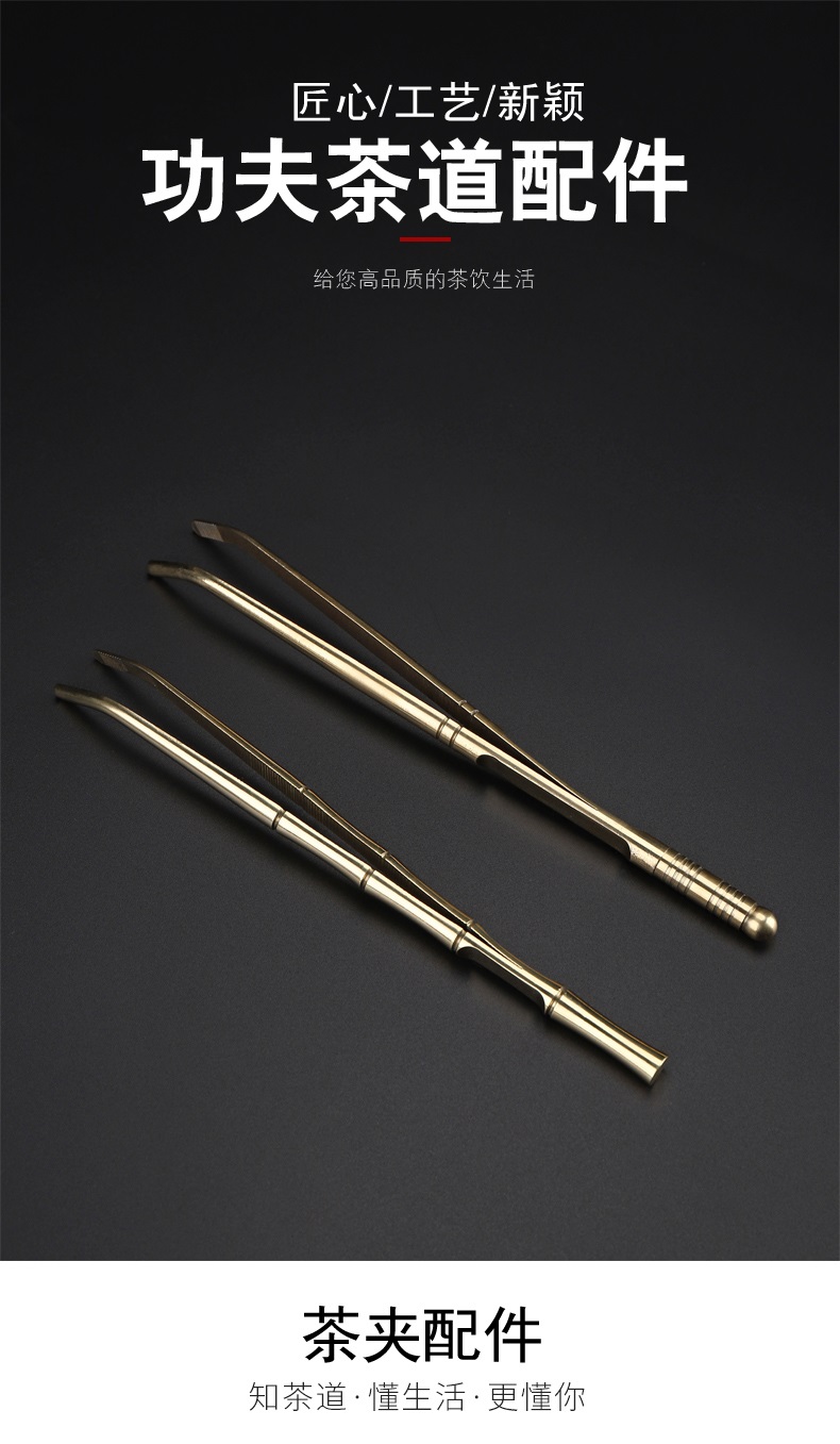 Zhengyang Tea Clamp Thickened Copper Color Copper Tea Clamp Tweezers Tea Cup Clamp Tea Knife Clamp Tea Ceremony Six Gentlemen Tea Fork Tea Clamp (Pure Copper)_Jieshenggaosheng