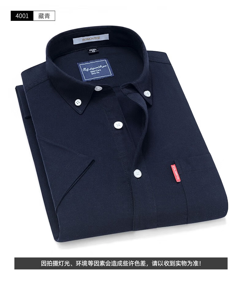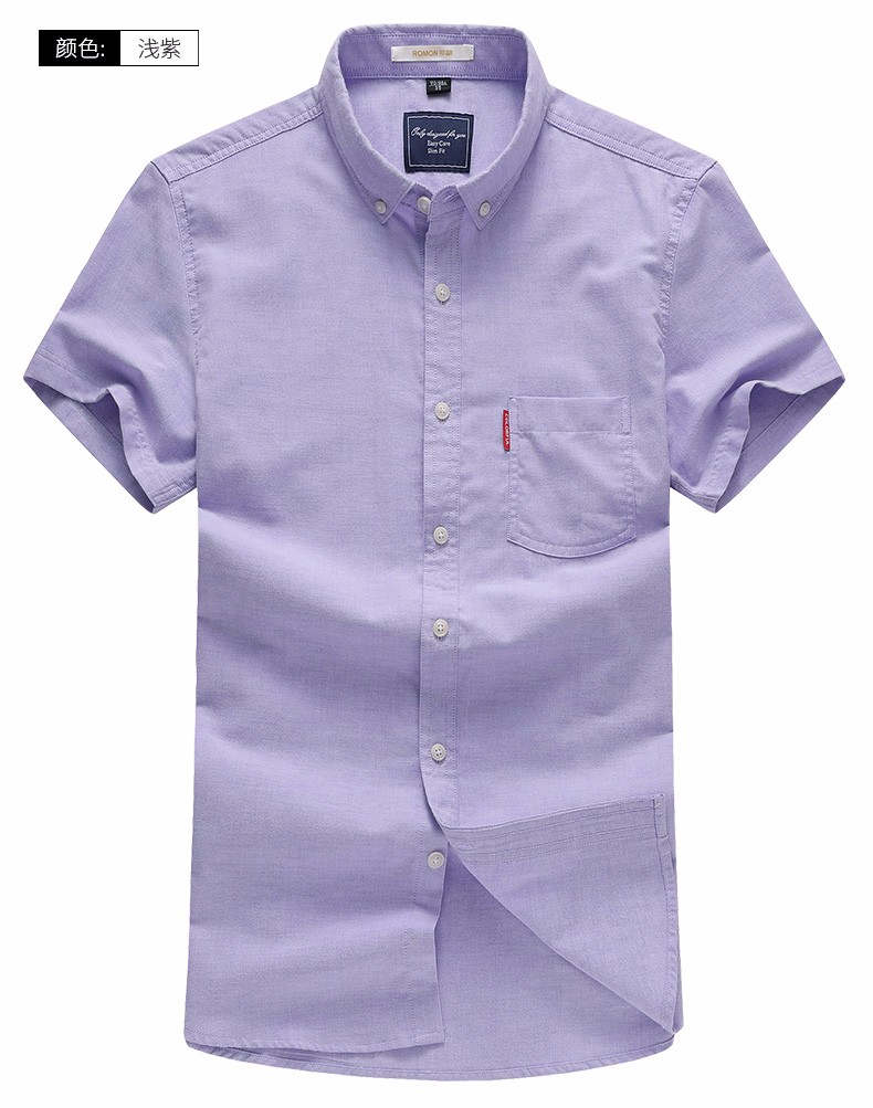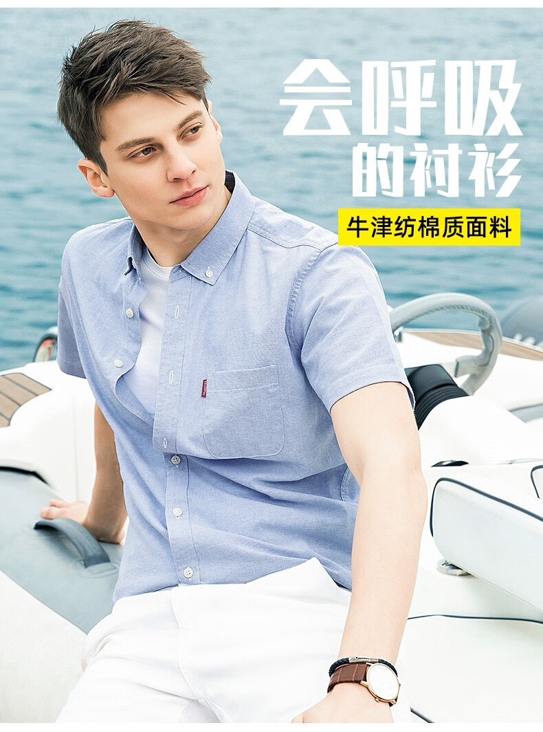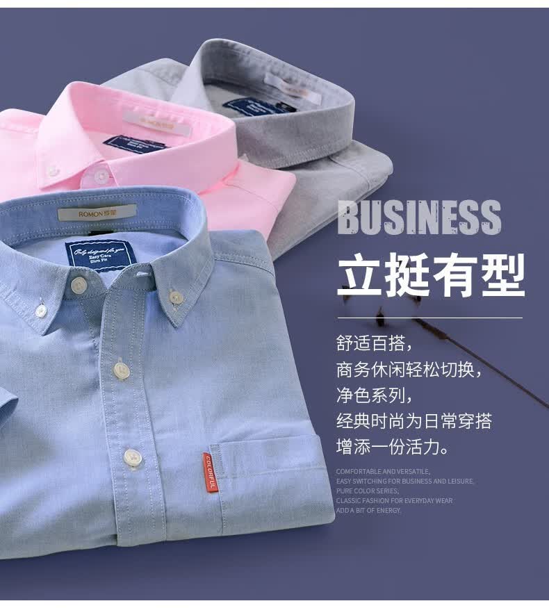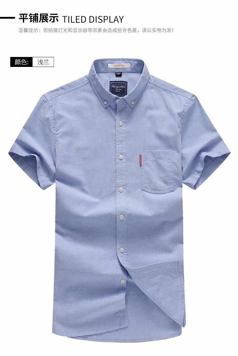 罗蒙牛津纺高端翻领修身短袖衬衫男士夏季中青年商务休闲薄款透气衬衣 浅兰 39 【建议110-125斤】