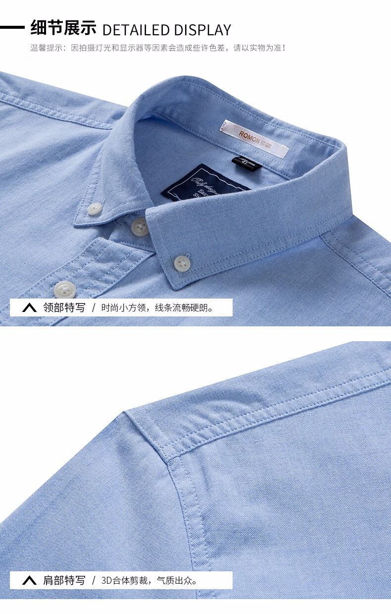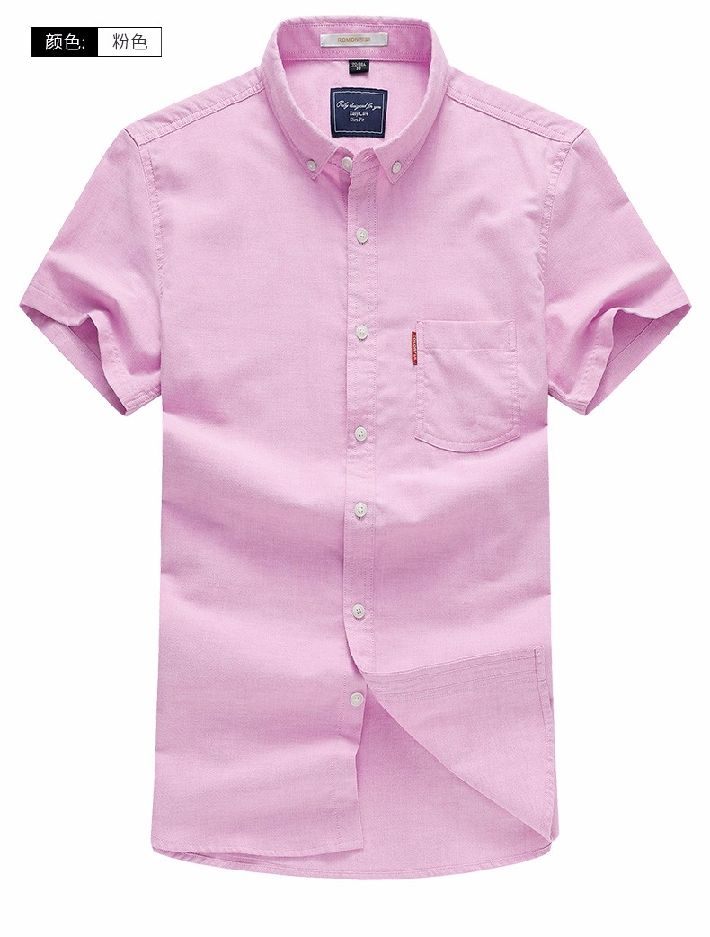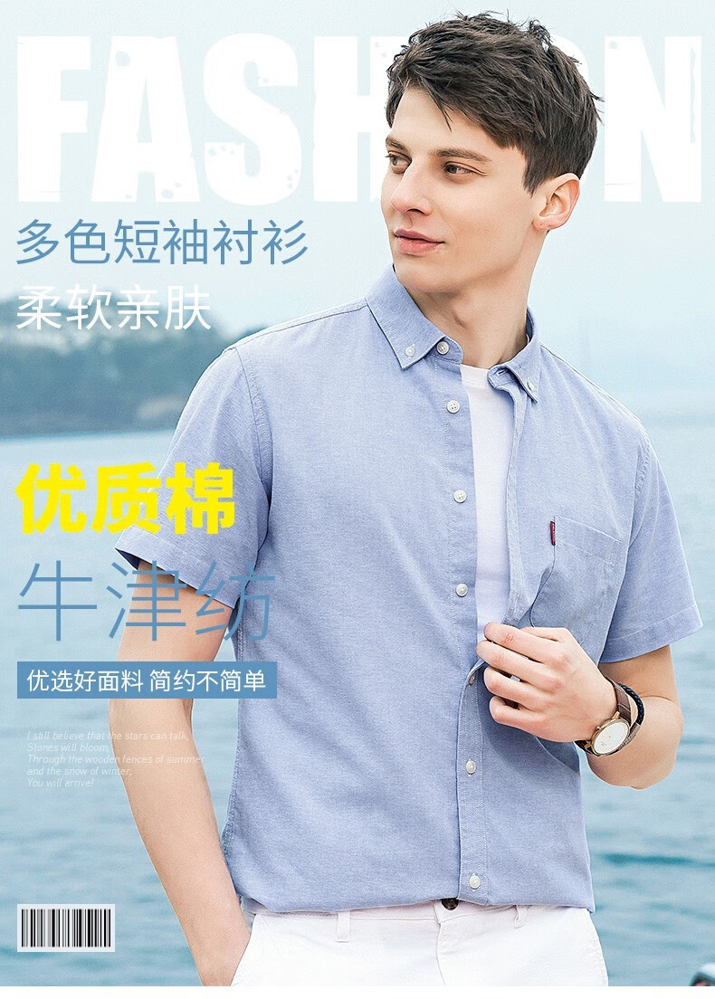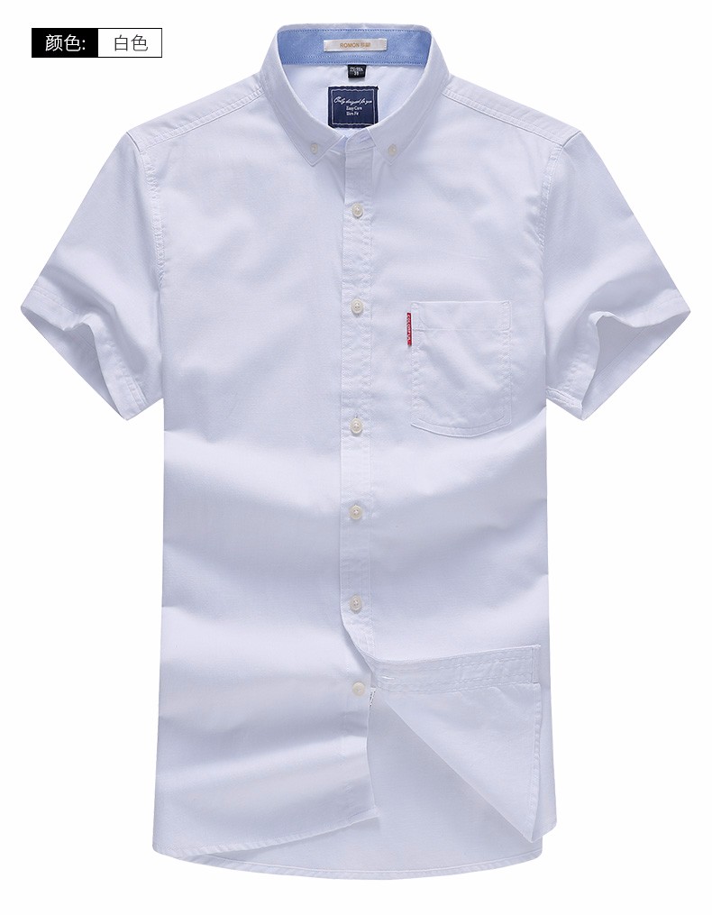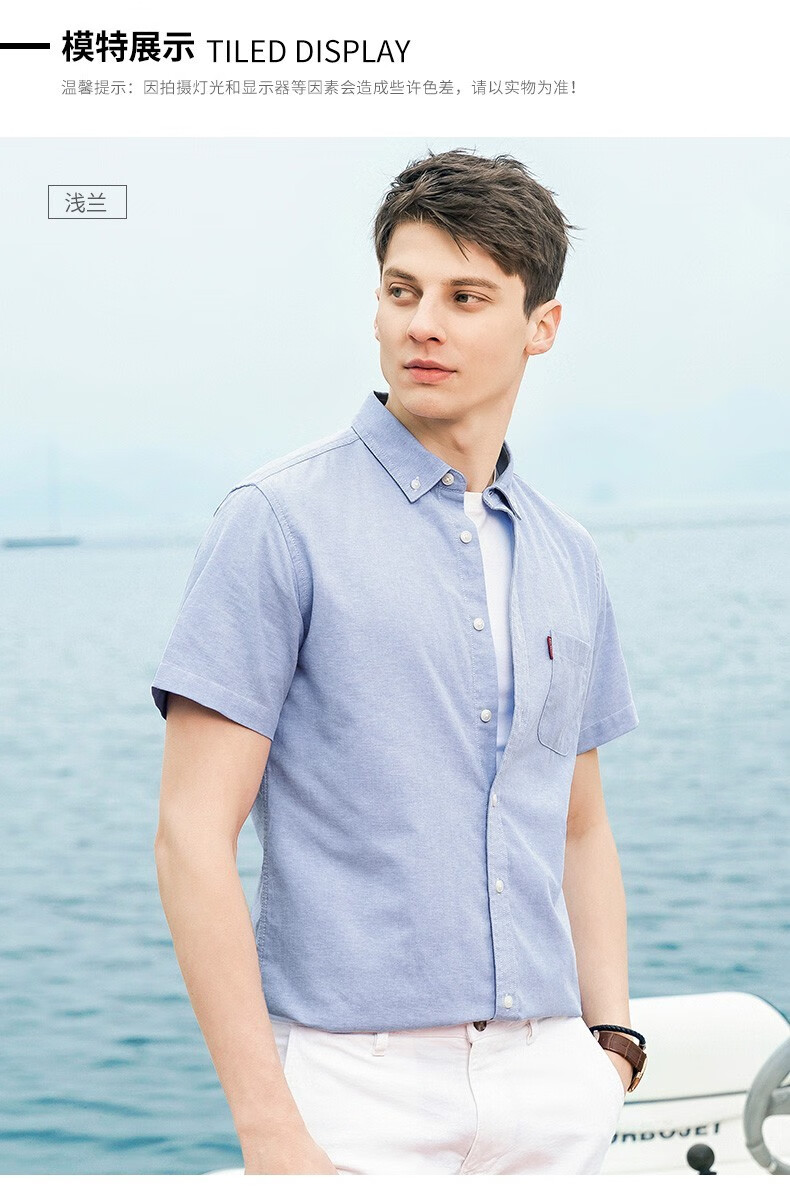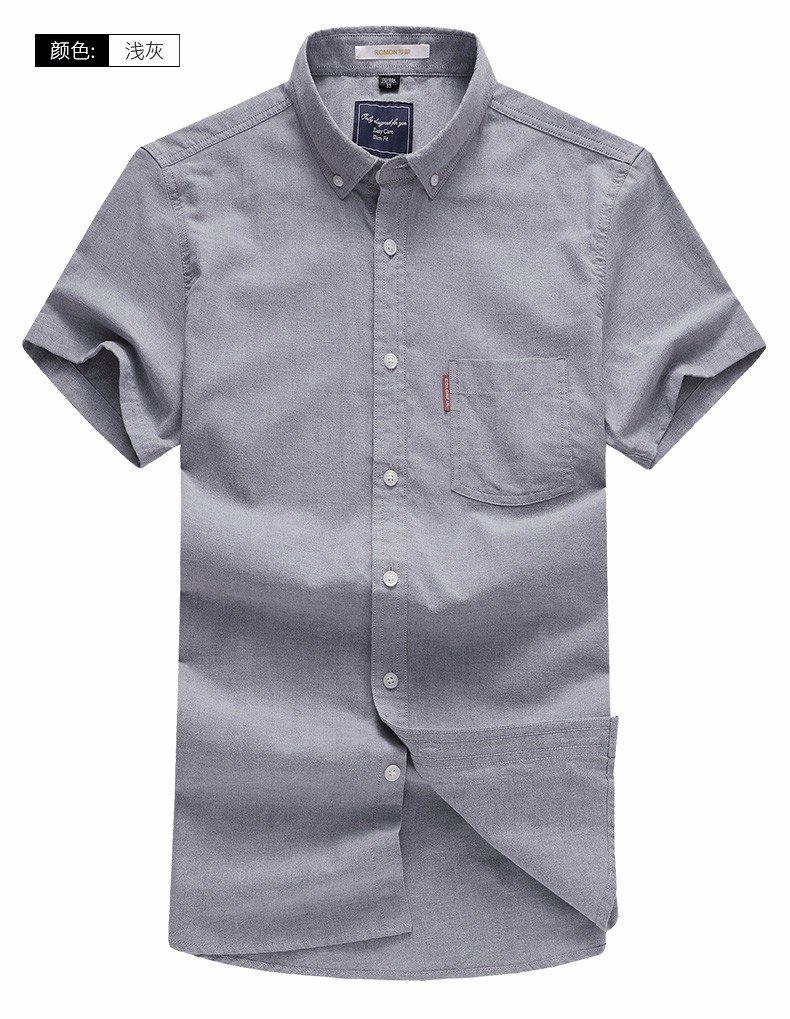 罗蒙牛津纺高端翻领修身短袖衬衫男士夏季中青年商务休闲薄款透气衬衣 浅兰 39 【建议110-125斤】