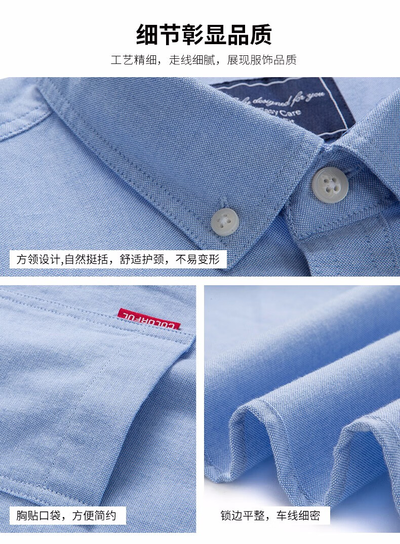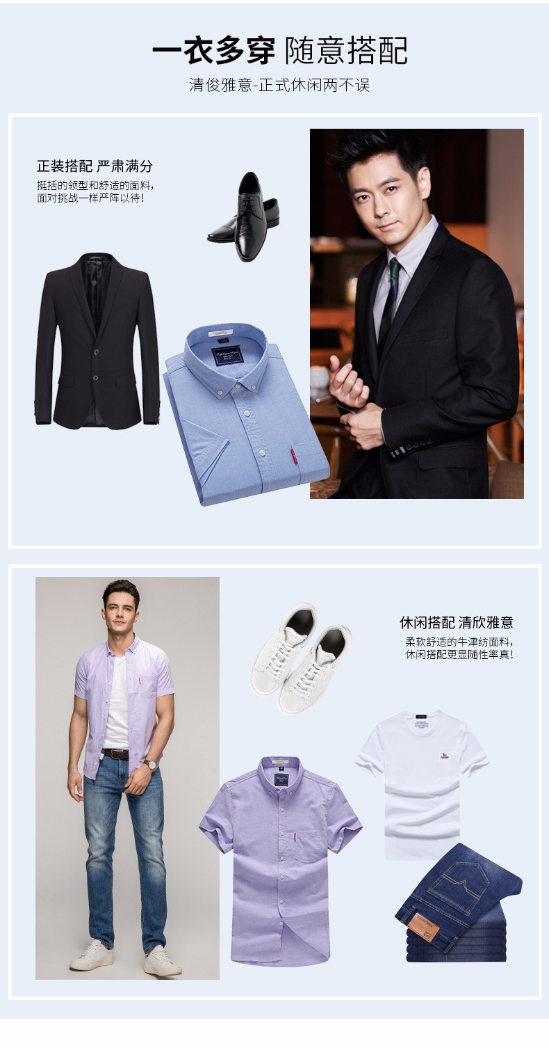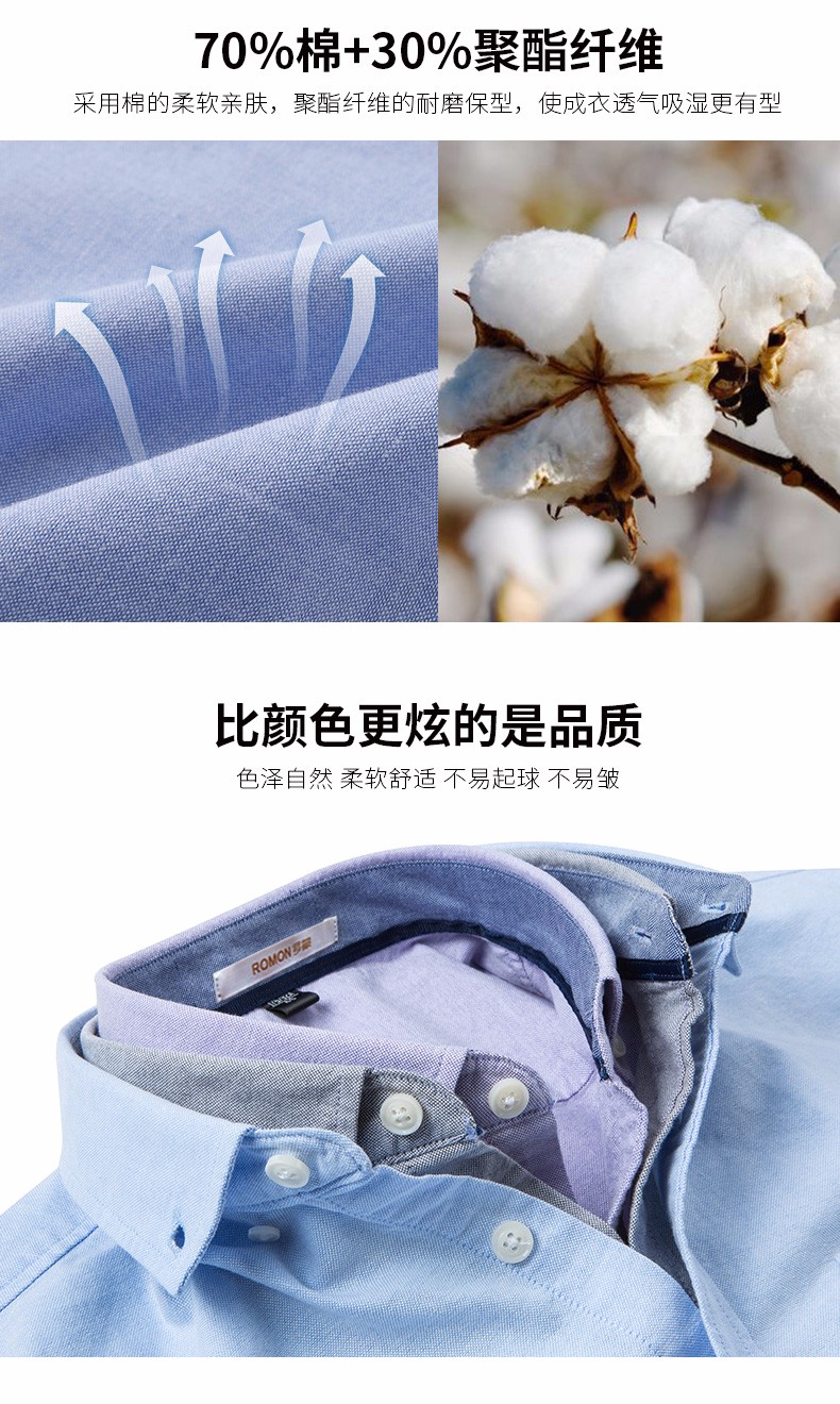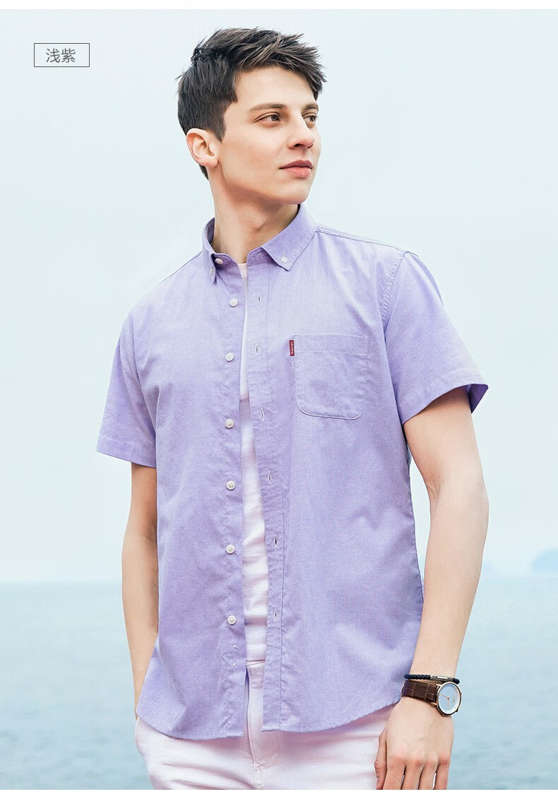 罗蒙牛津纺高端翻领修身短袖衬衫男士夏季中青年商务休闲薄款透气衬衣 浅兰 39 【建议110-125斤】
