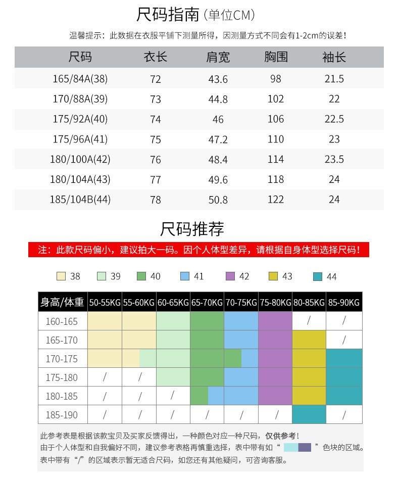 China (cm) 160-165/84-86 165-170 / 88-90 167-172 / 92-96 168-173 / 98-102 170-176 / 106-110