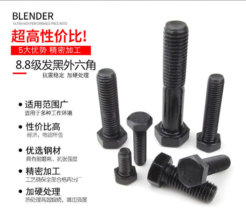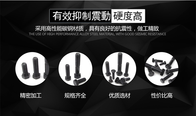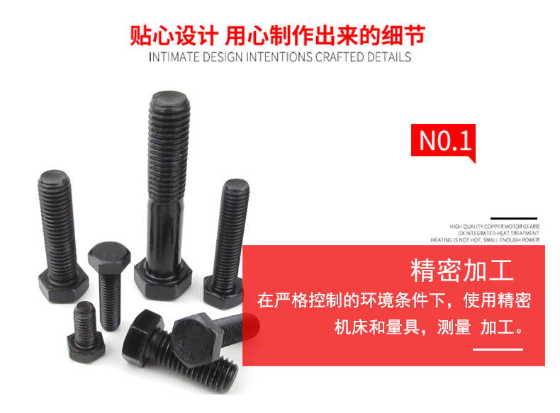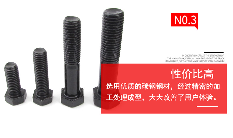 Jishuo M24/M27-72 GB5782 black external hexagonal screws 8.8 grade high strength external hexagonal bolts M27*170