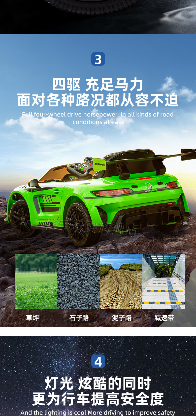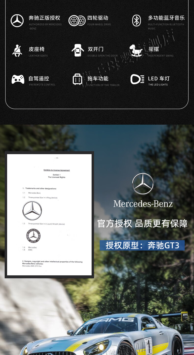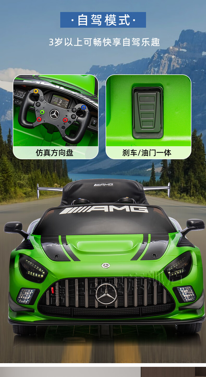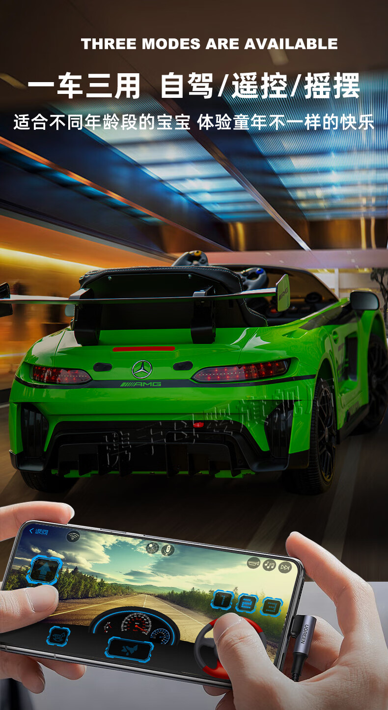 Join hands with Mercedes-Benz children's electric car, four-wheeled, seatable, remote-controlled swing for infants, boys and girls, baby toy car, upgraded silver paint + 12v1w1 large lithium battery + full function
