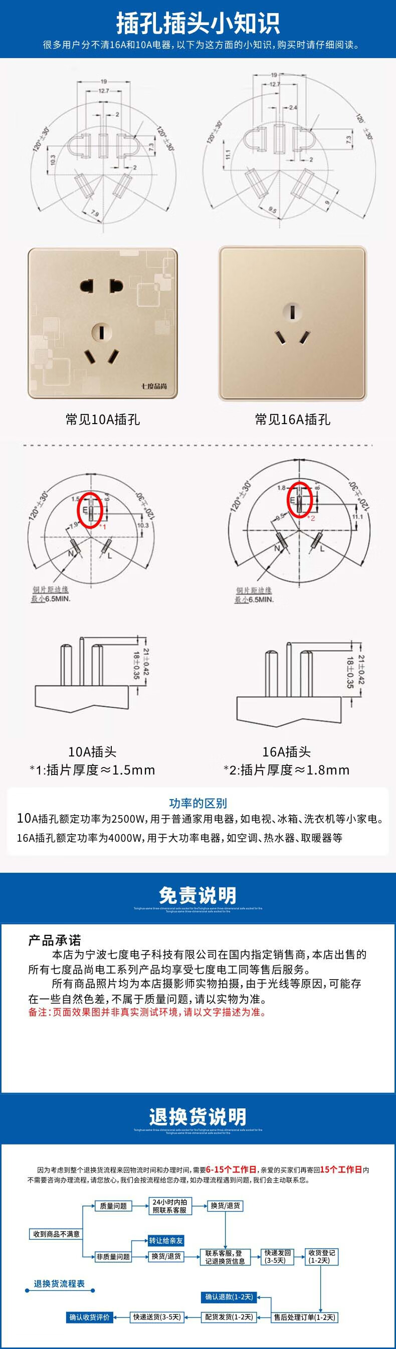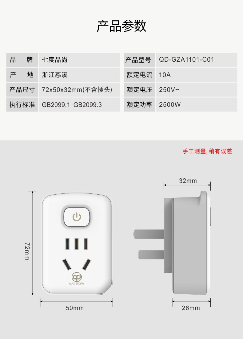 Seven Degrees Pinshang 16A high-power socket with switch conversion socket socket air conditioner water heater heater converter conversion plug-in strip 301B (16A to 16A) 4000W