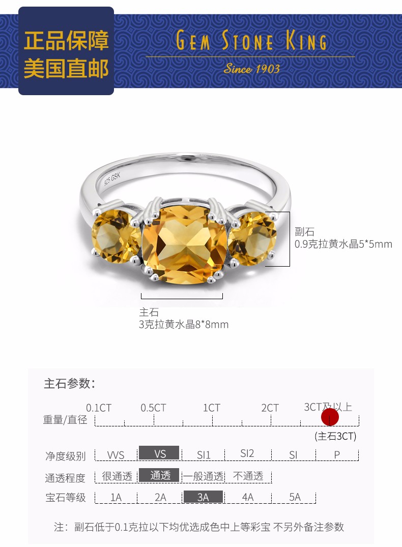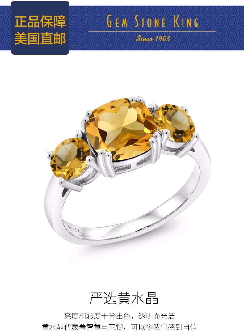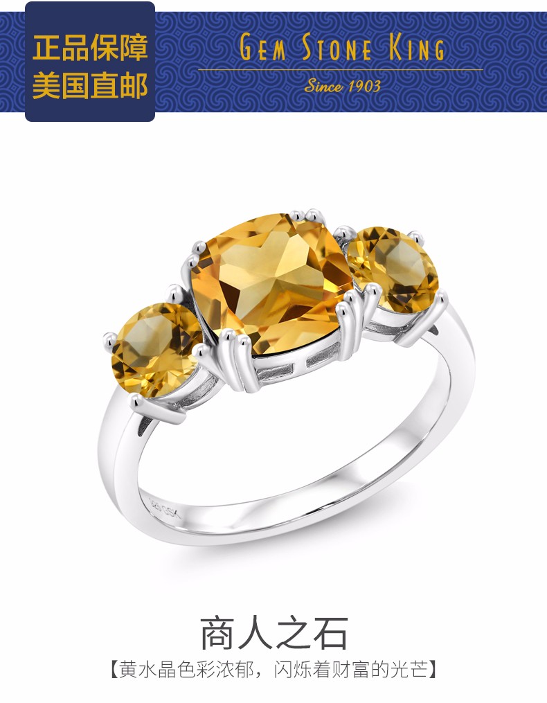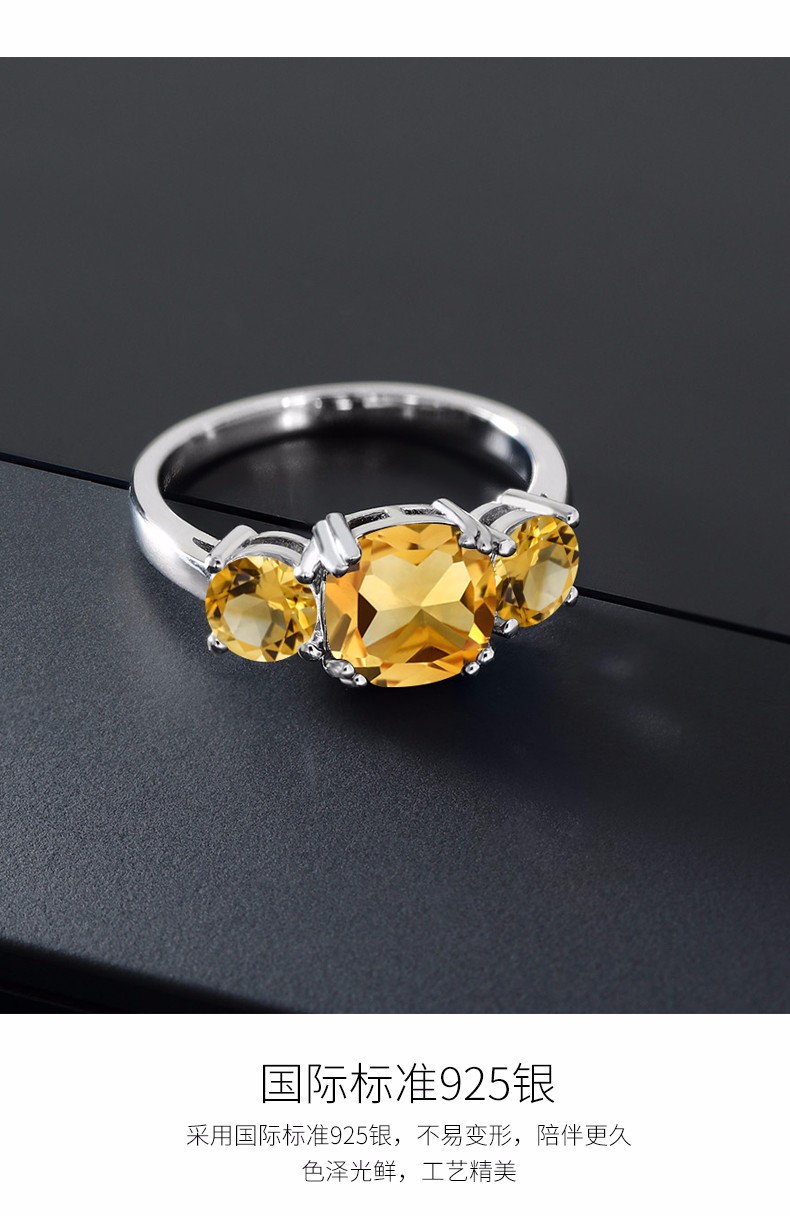 GEM STONE KING Silver Ring Women's Jewelry 925 Silver 3.9 Carat Citrine Fashion Ring for Girlfriend Chinese Valentine's Day Gift Beauty No. 5