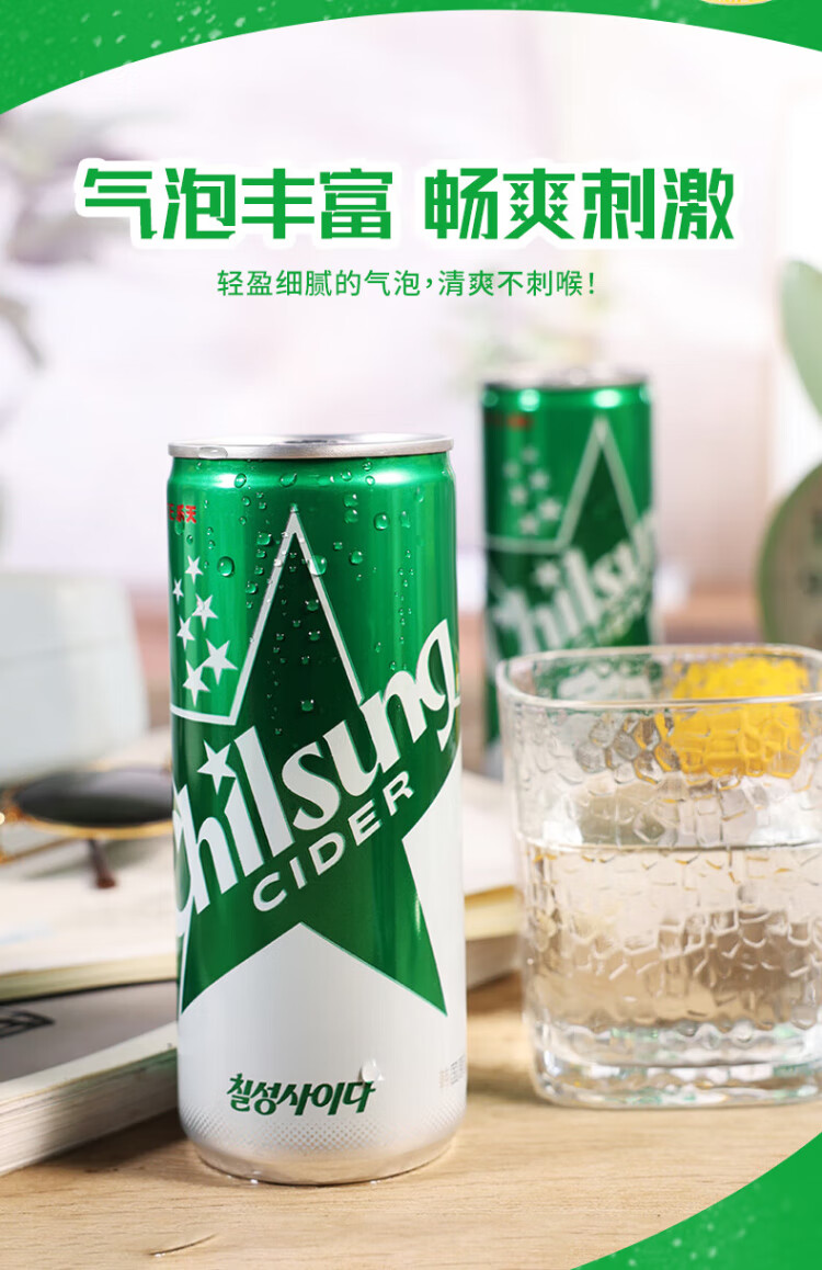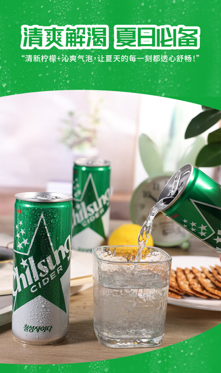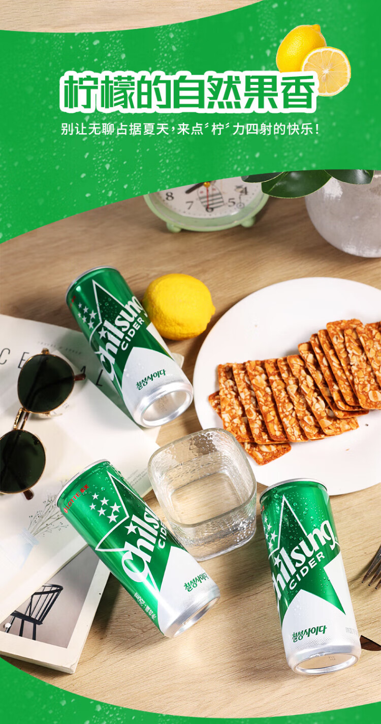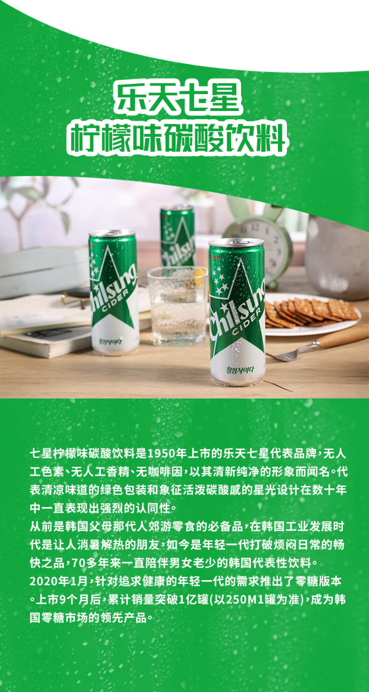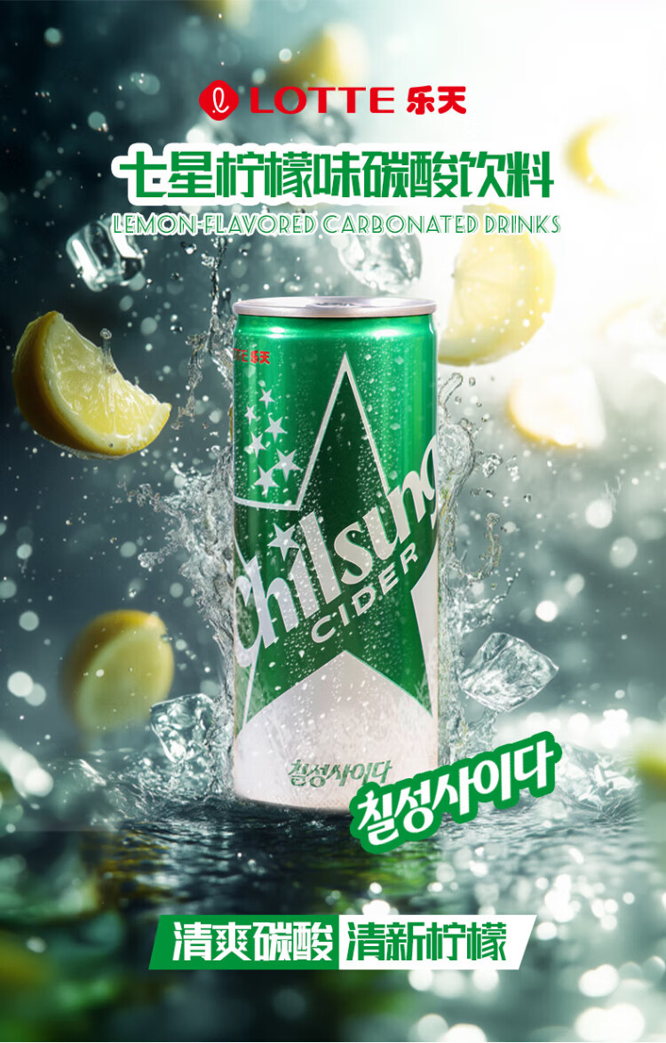 LOTTE Seven Star Ice Lemon Flavored Carbonated Soda Zero Fat Bubbles Refreshing Ice and Thirst-Quinifying Summer Must-Have Original from Korea