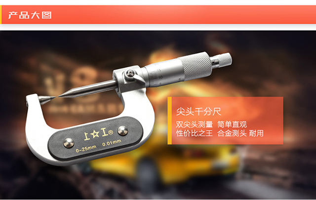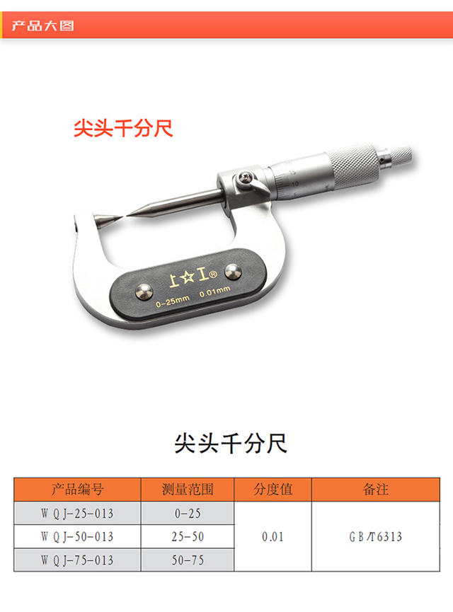 Shanggong pointed micrometer 0-25mm centicali micrometer mechanical micrometer spiral micrometer graduation value 0.01 WQJ-25-013