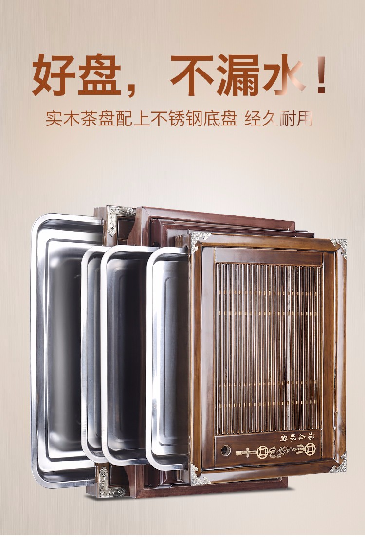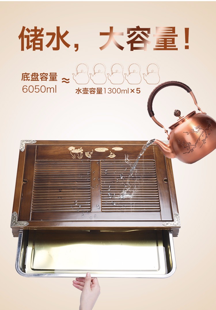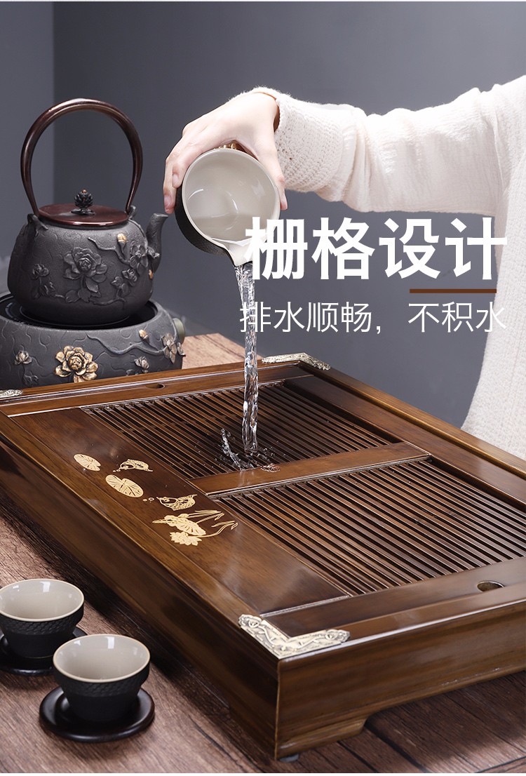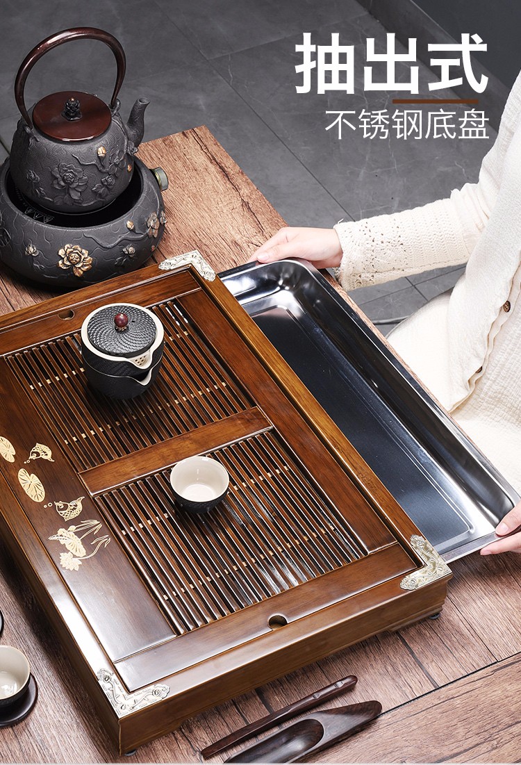 Tangfeng tea tray household simple tray solid wood tea table kung fu small tea table tea tray small tea tray drainage water storage tea table fish lotus with stainless steel tea tray