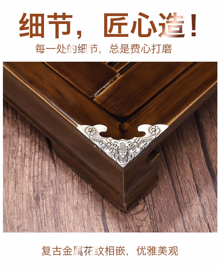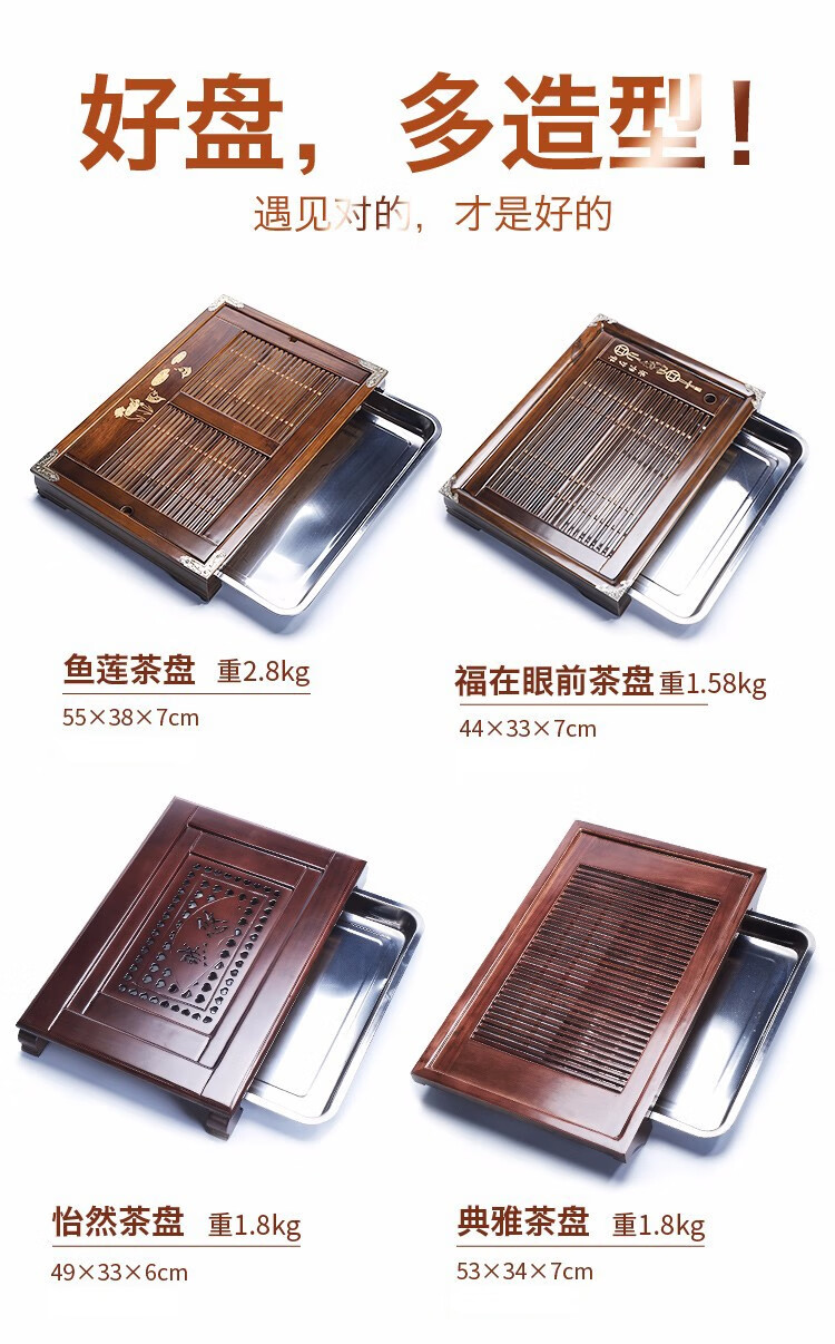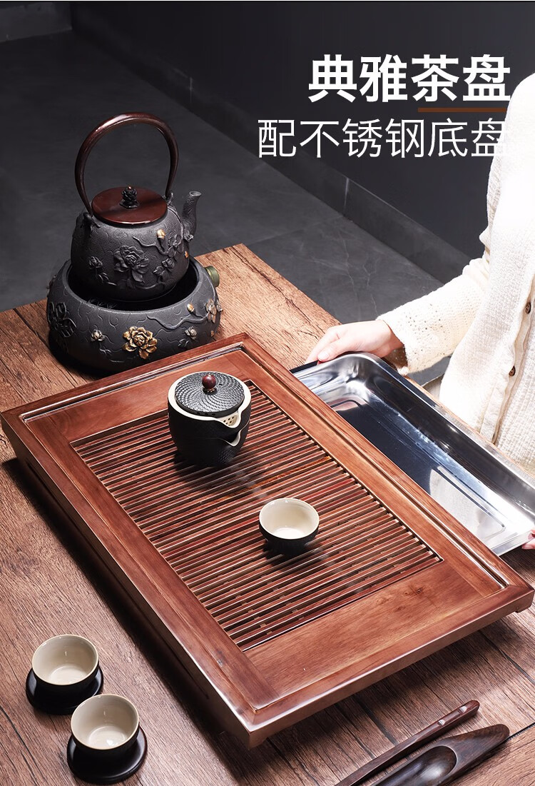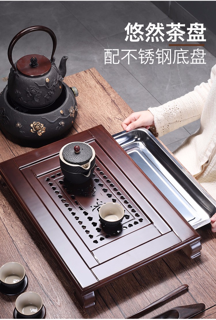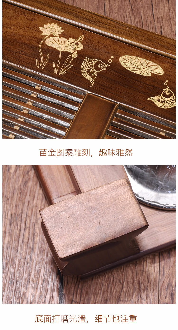 Tangfeng tea tray household simple tray solid wood tea table kung fu small tea table tea tray small tea tray drainage water storage tea table fish lotus with stainless steel tea tray