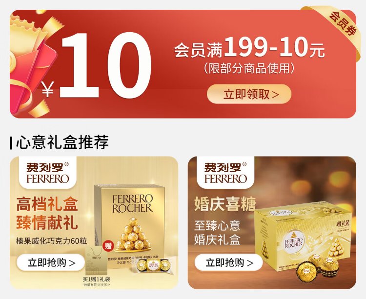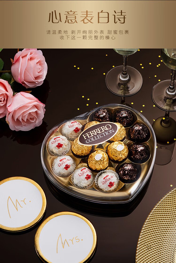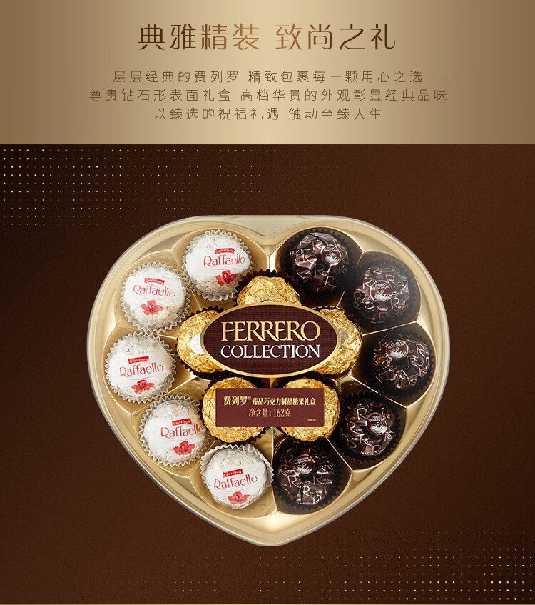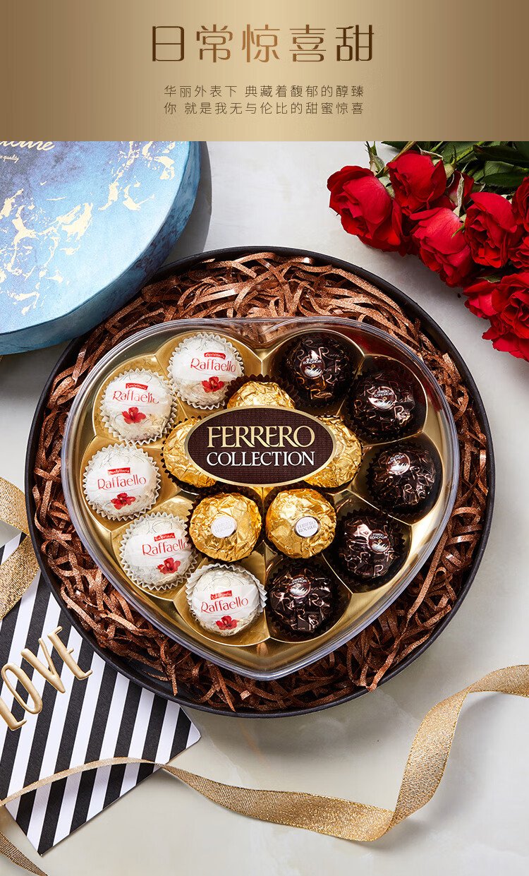 Ferrero hazelnut chocolate gift box 3 flavors 15 pieces 162g heart-shaped gift box candy birthday gift