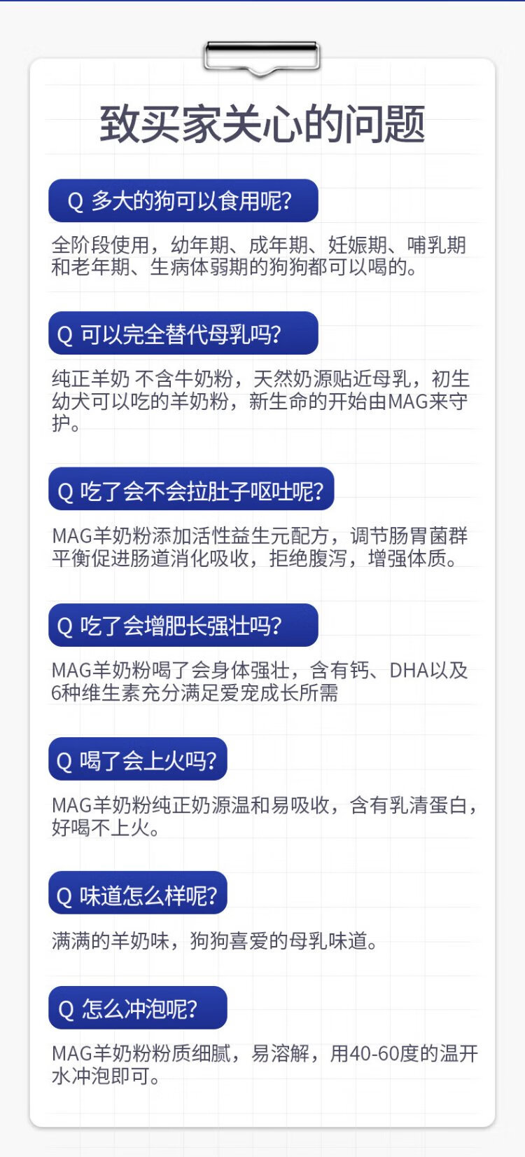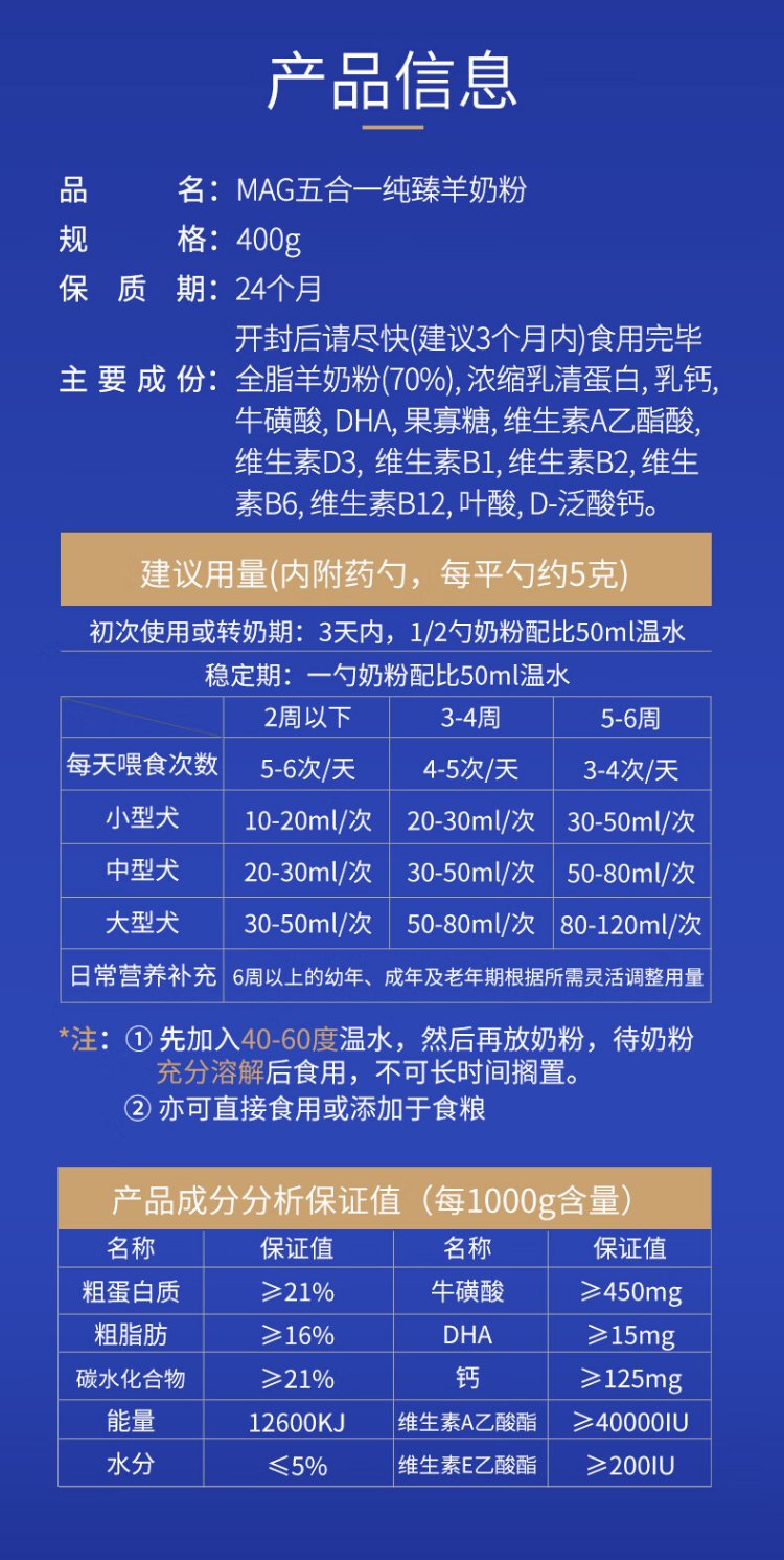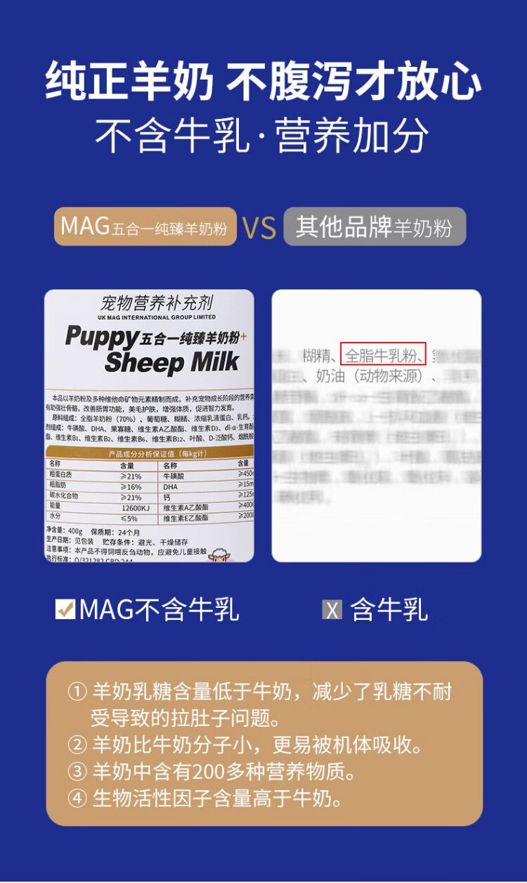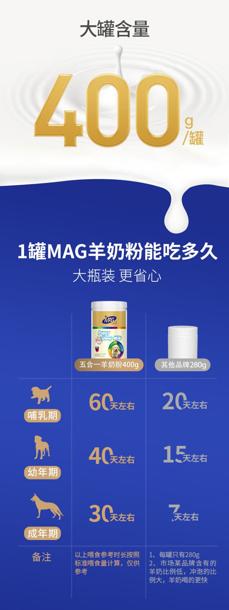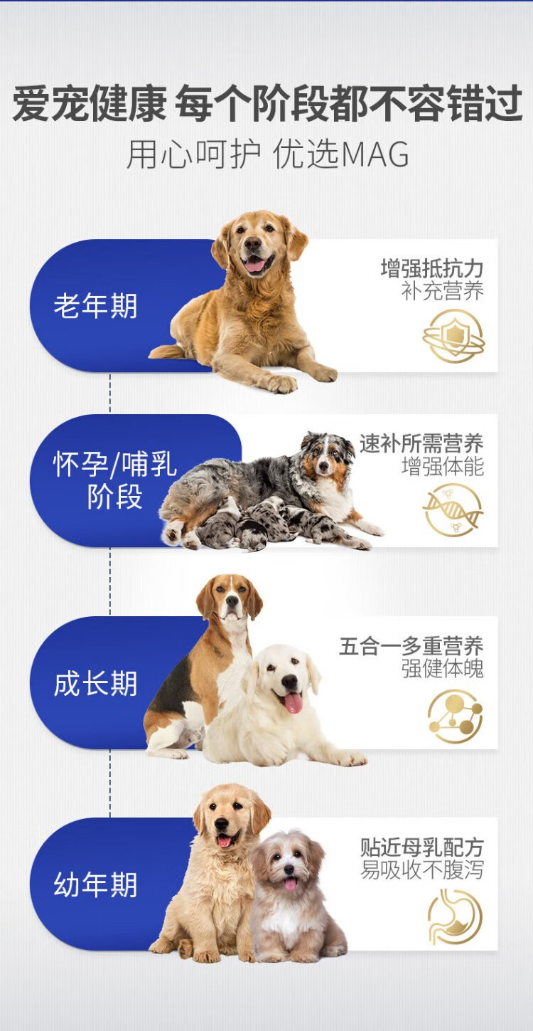 MAG five-in-one goat milk powder 400g for pets, dogs, cats, puppies, pregnant dogs, elderly dogs, universal for all stages of cats and dogs