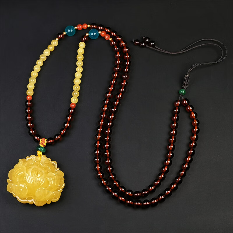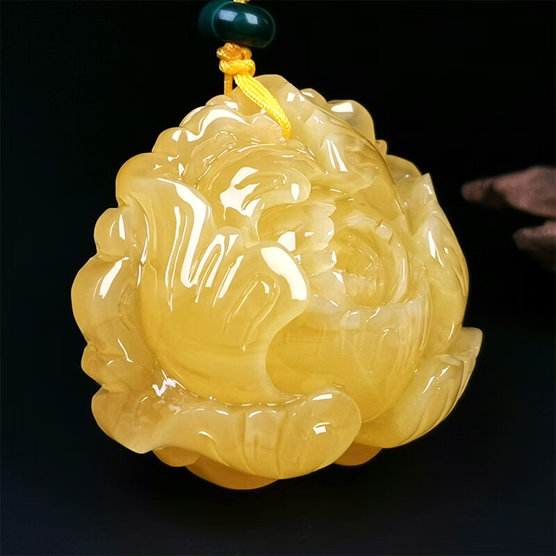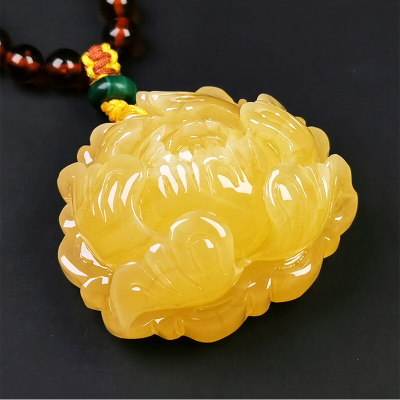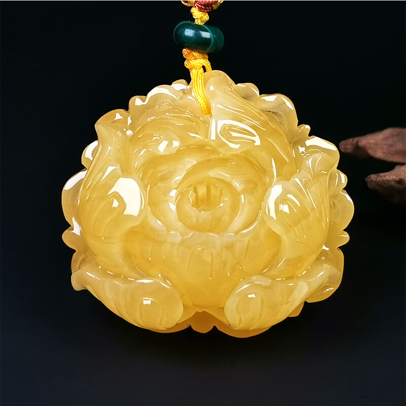 Amber School, one thing, one picture, one certificate, beeswax pendant, women's necklace, natural amber carved peony flower, women's pendant, 8.99 g, 33*30*16 mm