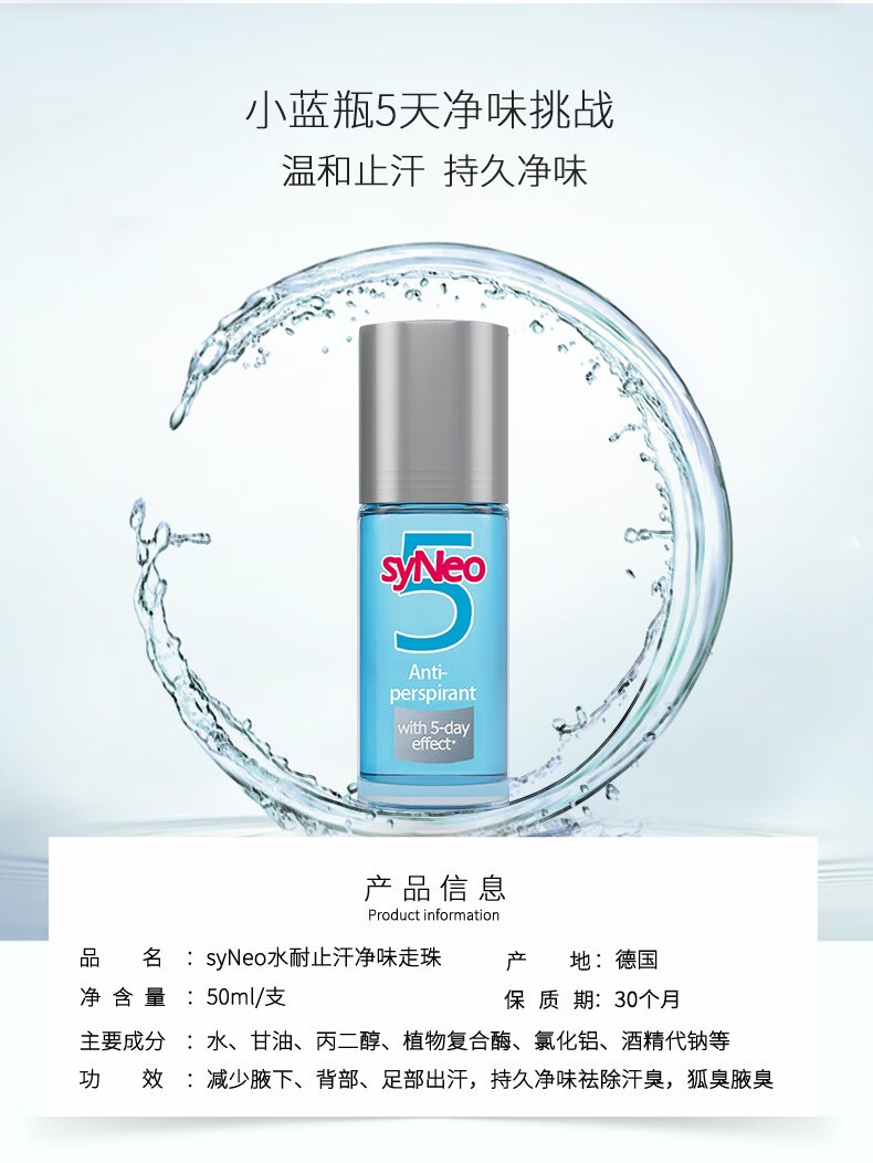 SyNeo German imported water-resistant body odor antiperspirant lotion to remove armpit odor, sweat and odor antiperspirant deodorant water for men and women, antiperspirant deodorant rolling beads 50ml/bottle