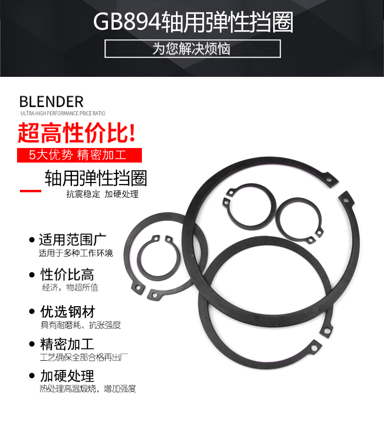 Jishuo 3 200 authentic 65 manganese shaft card GB894 shaft card circlip/shaft retaining ring C-shaped retaining ring shaft external card 20 10 pcs