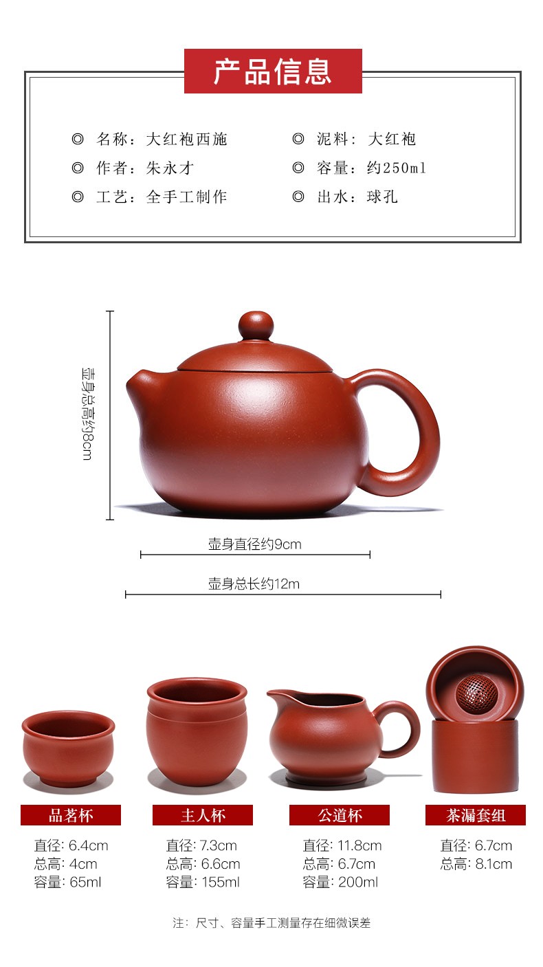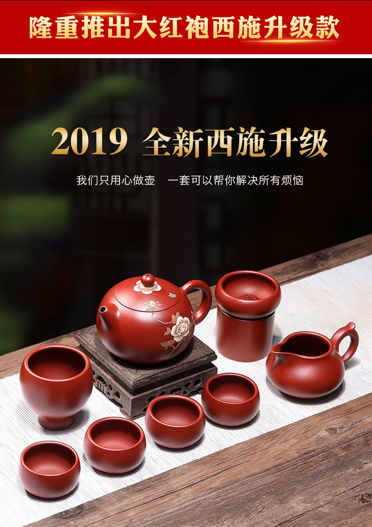 Tea art pot Yixing pure handmade famous raw ore Dahongpao Xishi teapot tea set Guangsu complete set
