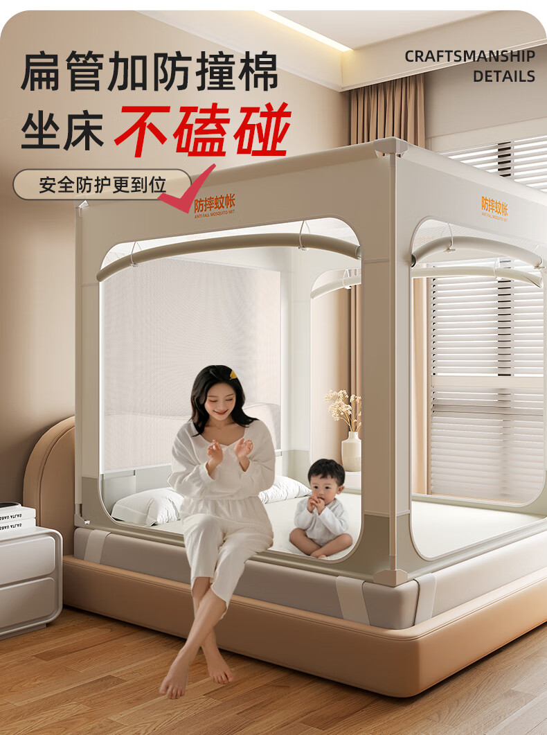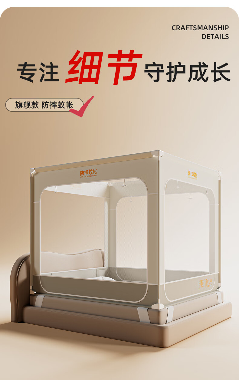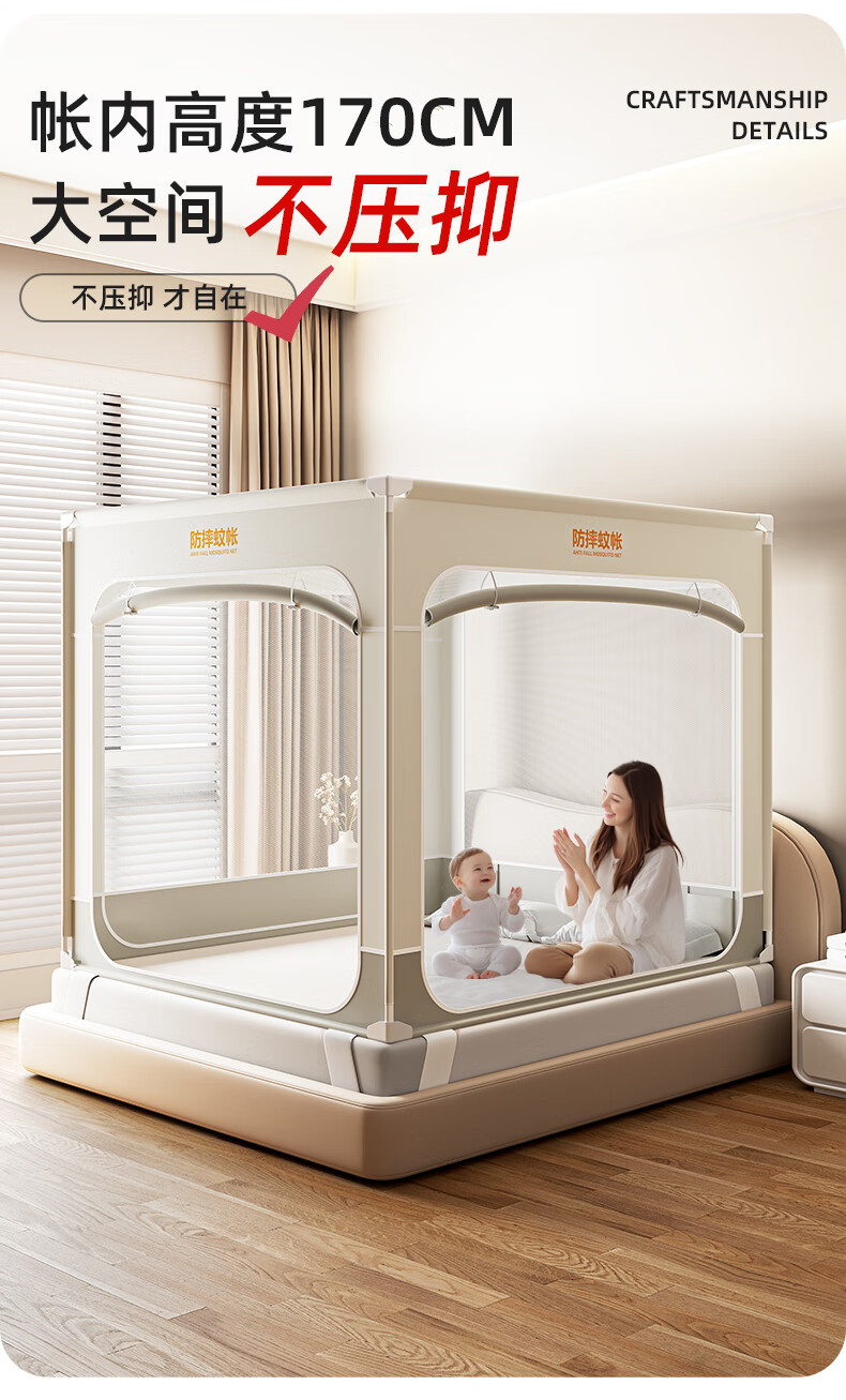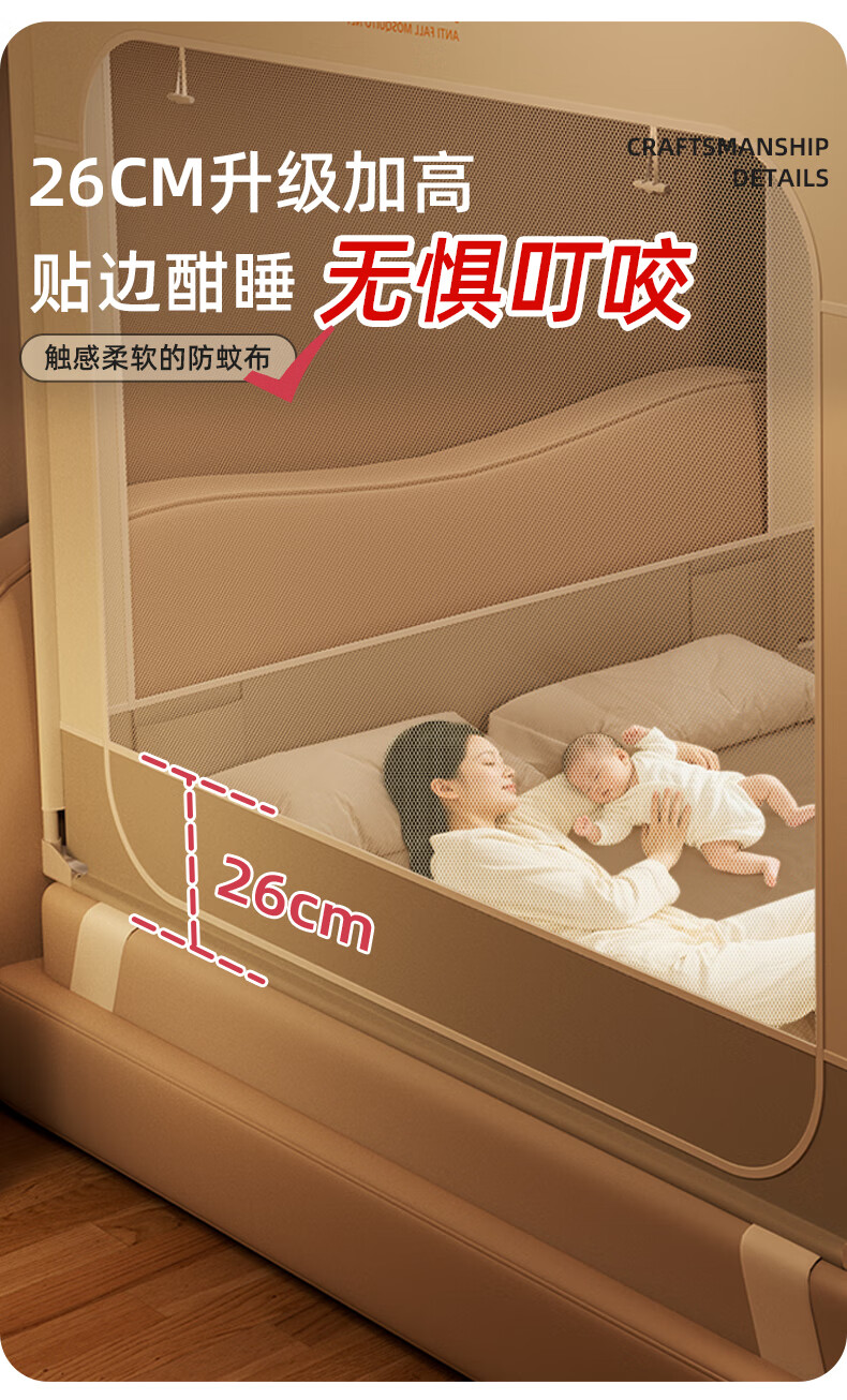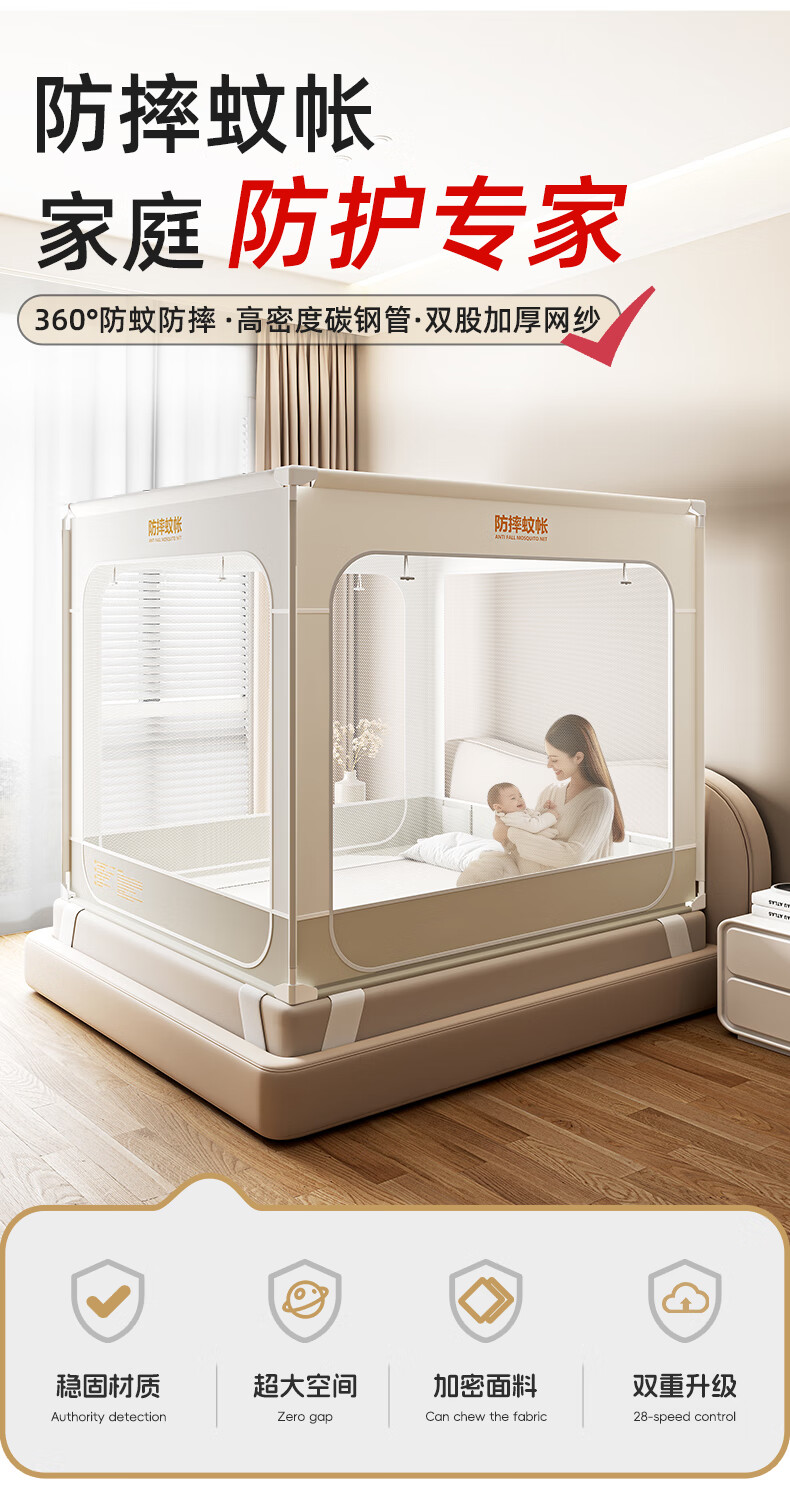 AOTGSSE anti-fall mosquito net baby bed integrated anti-fall guardrail mosquito net all-inclusive anti-fall bed fence quiet white 1.8*2.0 meters bed type four-sided one-piece