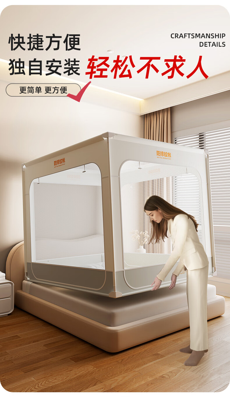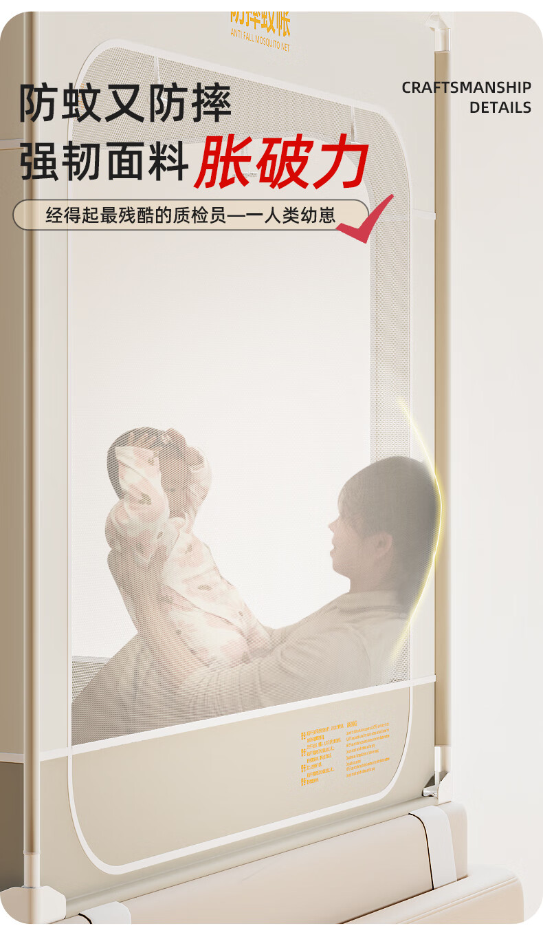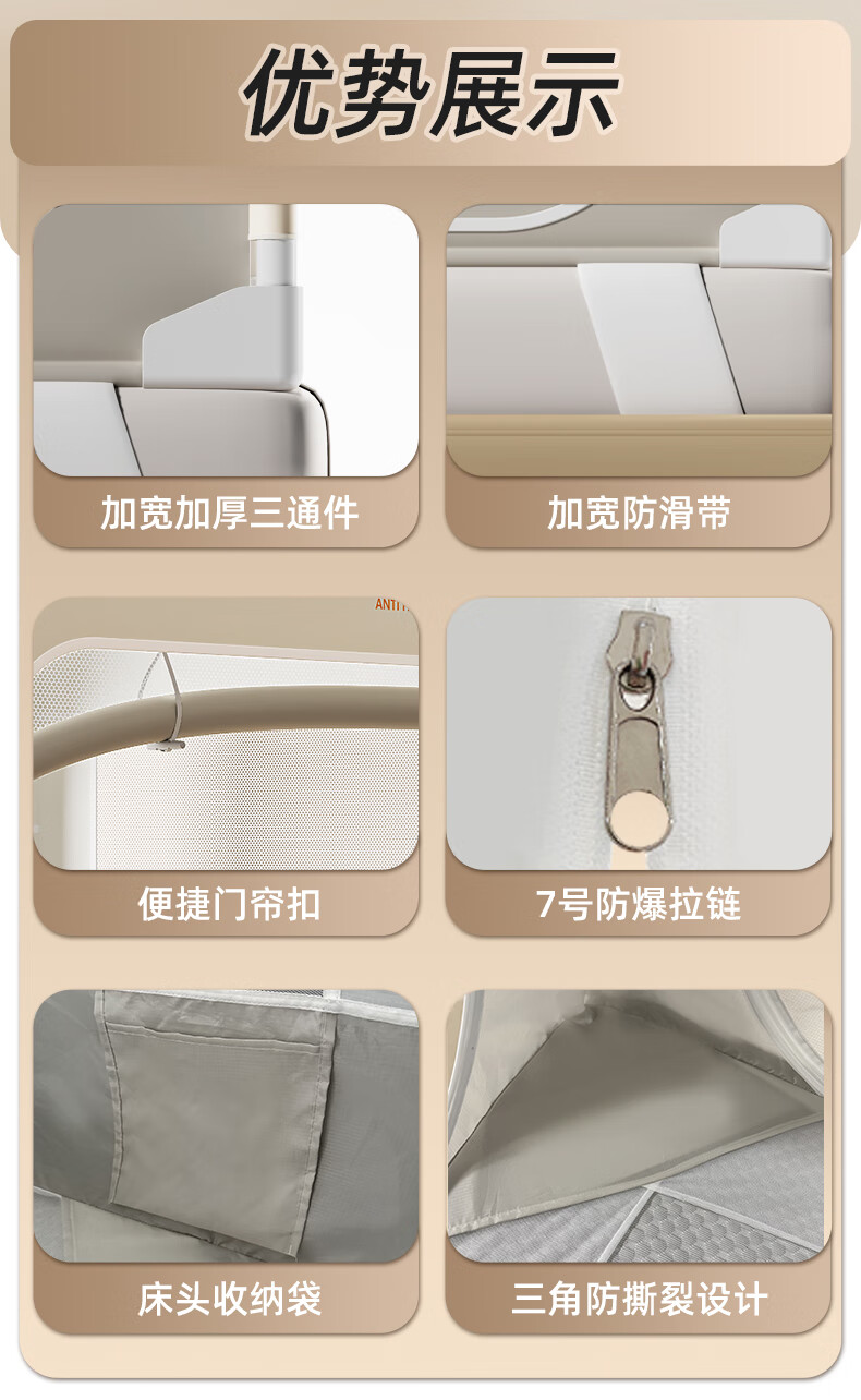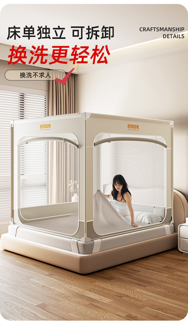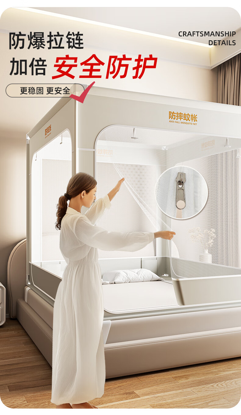 AOTGSSE anti-fall mosquito net baby bed integrated anti-fall guardrail mosquito net all-inclusive anti-fall bed fence quiet white 1.8*2.0 meters bed type four-sided one-piece