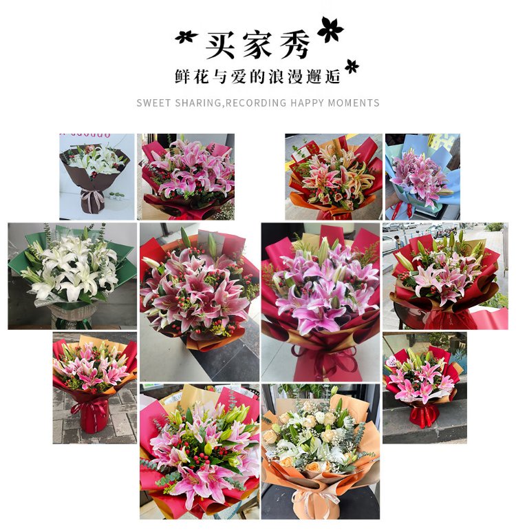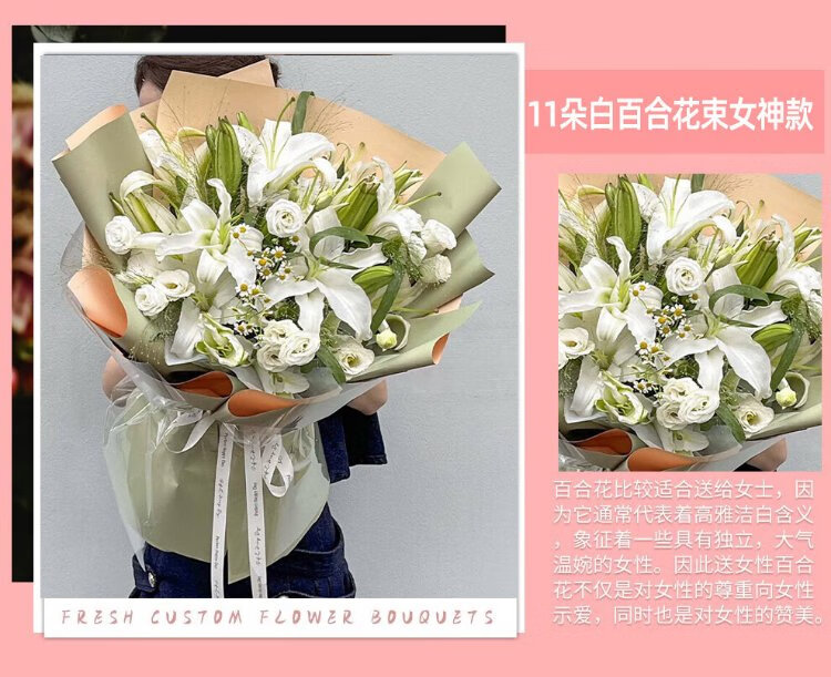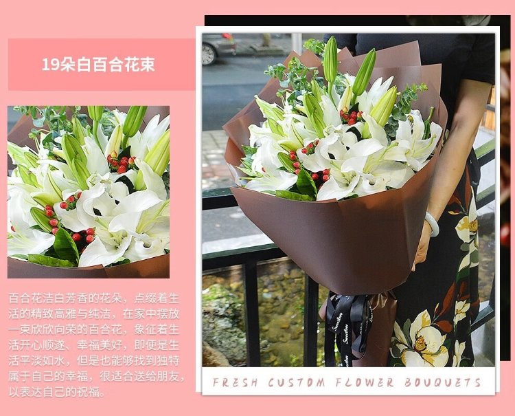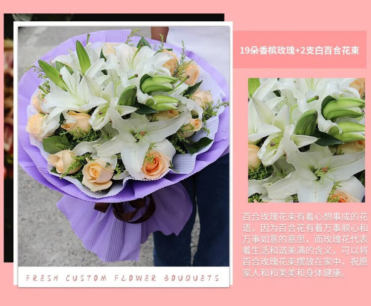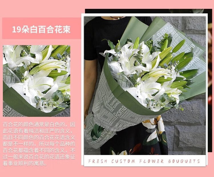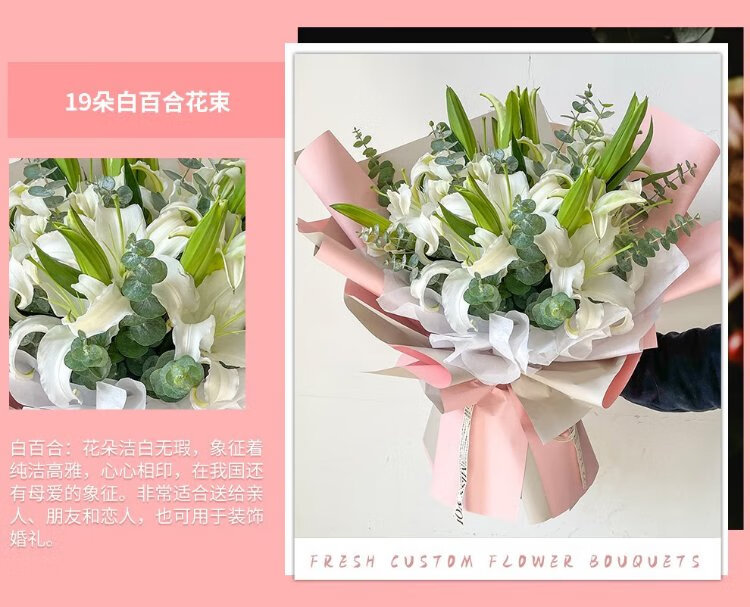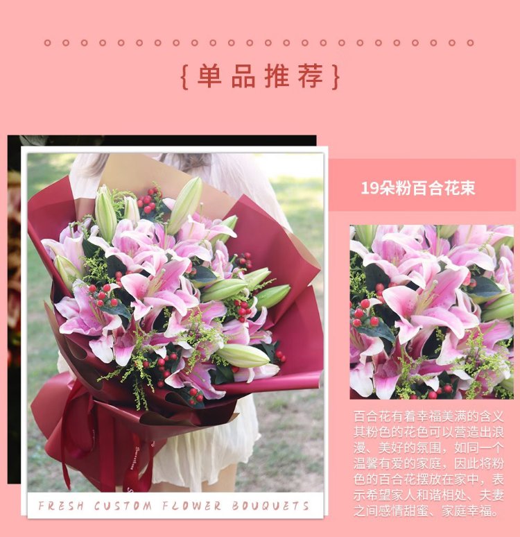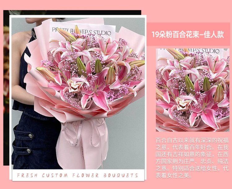 Illustration Flower Express Perfume Lily Bouquet Blessing Confession Gift for Wife and Girlfriend Birthday Gift Nationwide Delivery 19 Pink Lily Bouquet