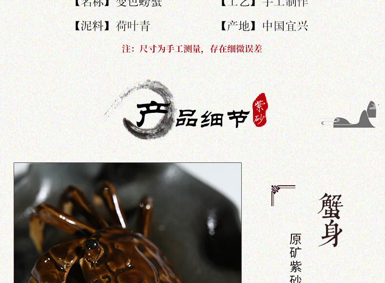 Wanhuyuan purple sand tea pet ornaments tea play color changing crab tea set accessories can raise Kung Fu tea set handmade purple sand creative hairy crab tea tray tea table decorations tea ceremony tea tasting utensils color changing crab