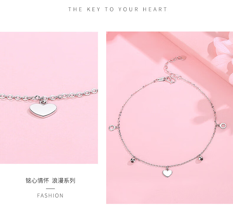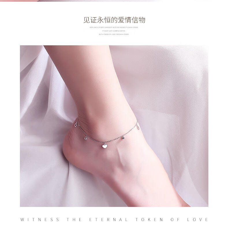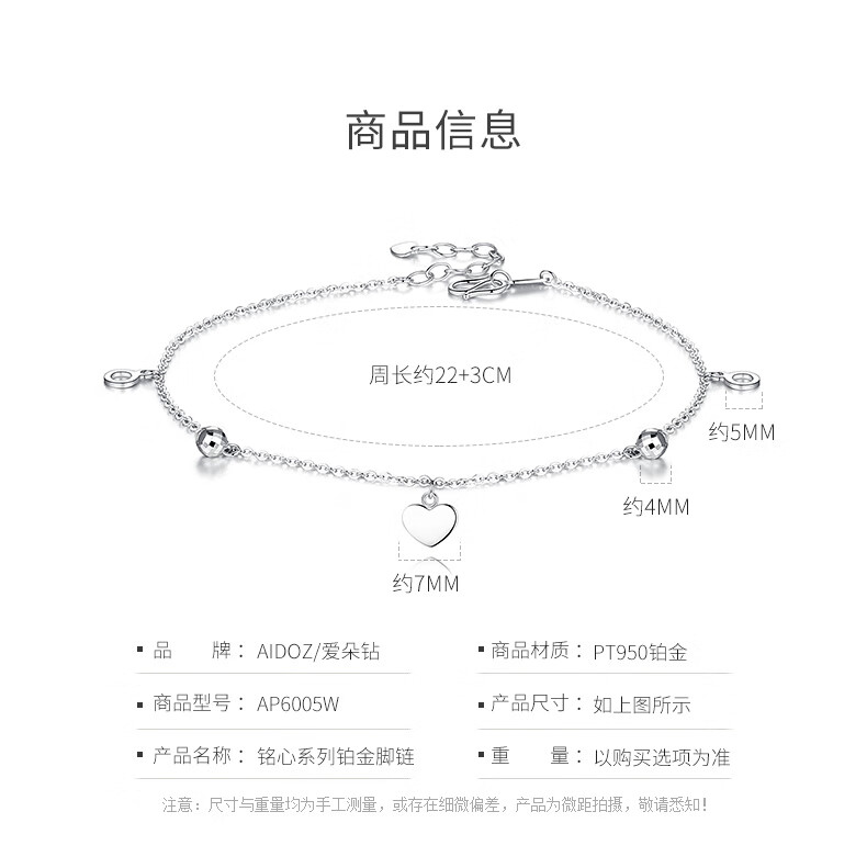 Aido Diamond pt950 platinum anklet for women, platinum heart-shaped round bead transfer bead foot ornament, weight 2.6-2.8 grams, length 22+2cm