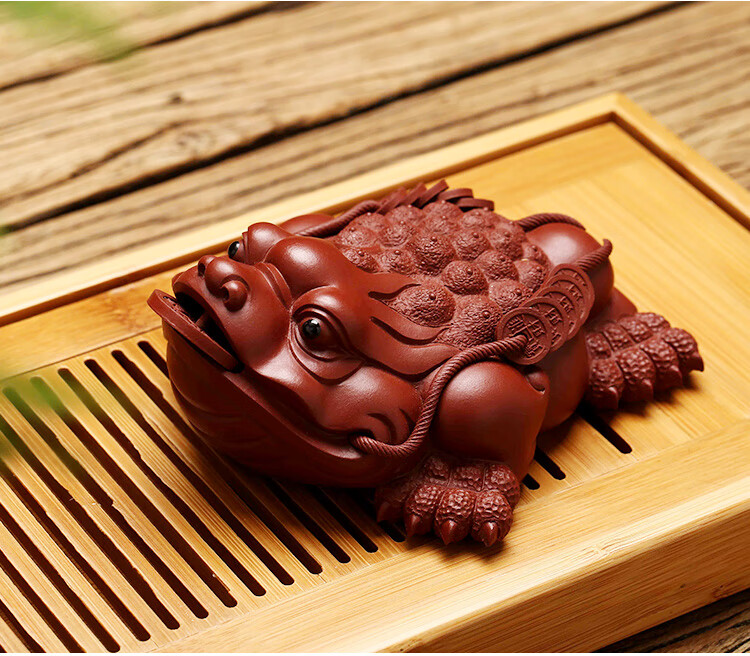 Gold inlaid jade tea pet ornaments, handmade household tea ceremony accessories, toad tea pet, purple sand golden toad, tea table, tea room, tea toy, tea set F Dahongpao golden toad