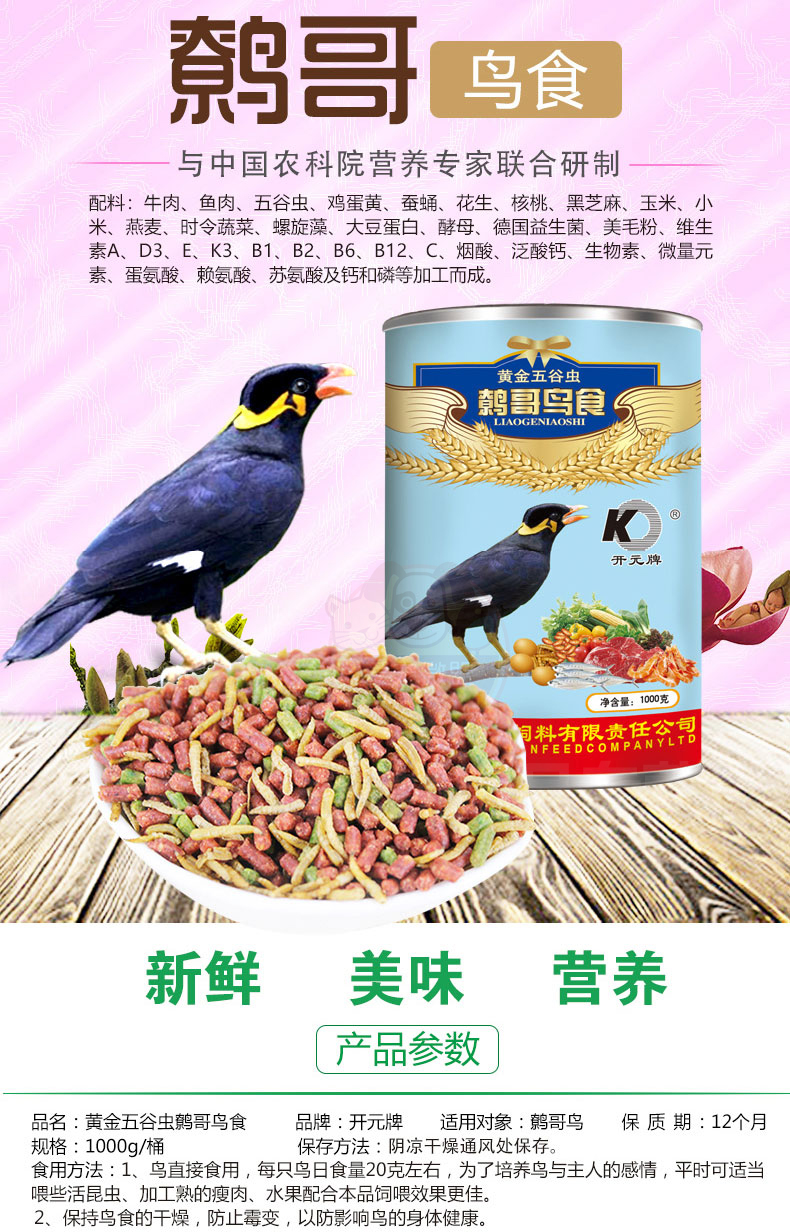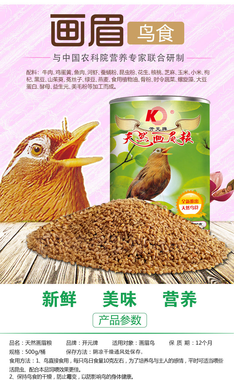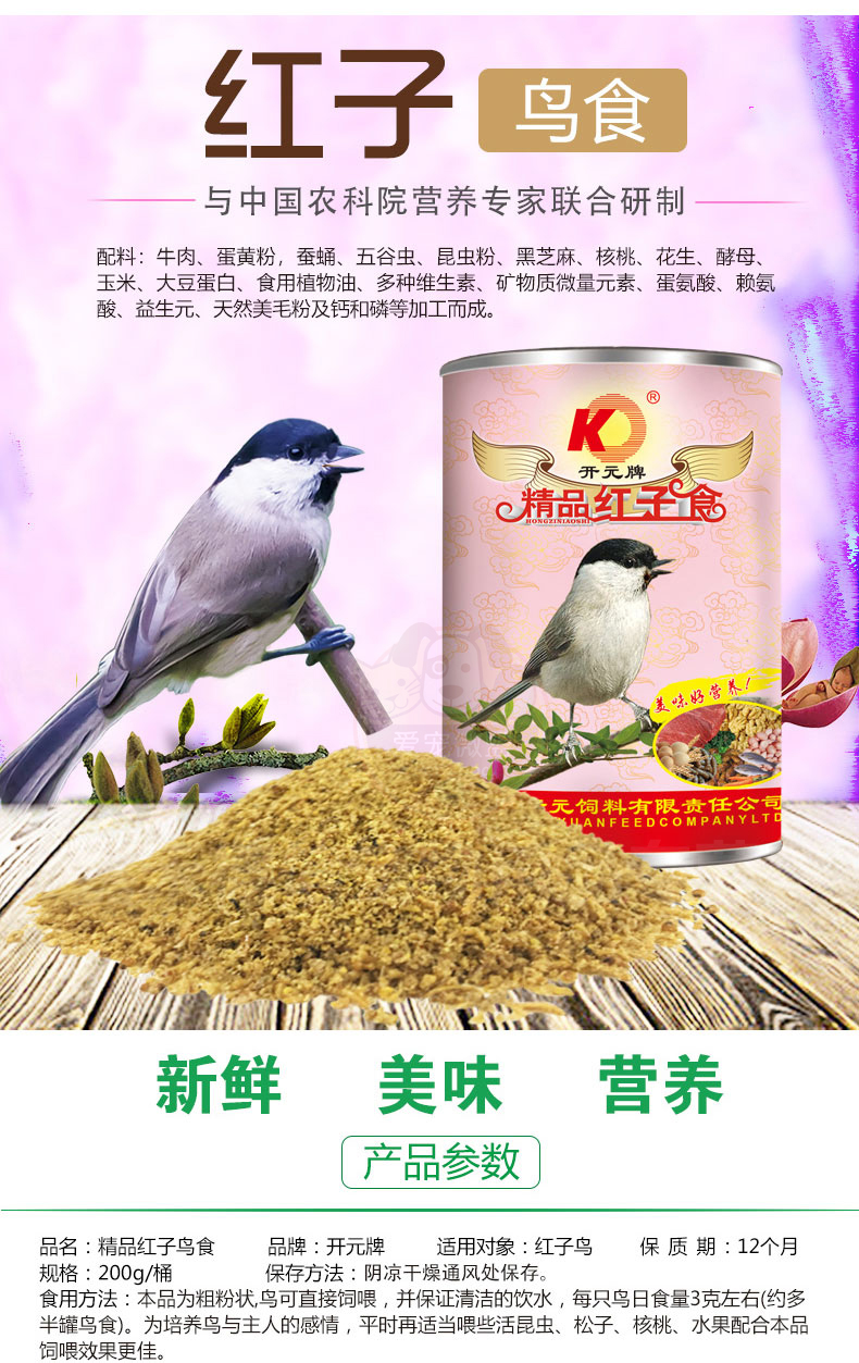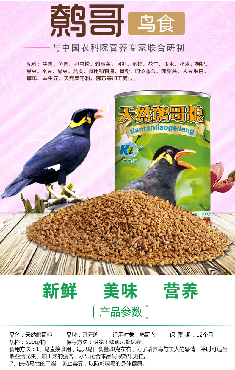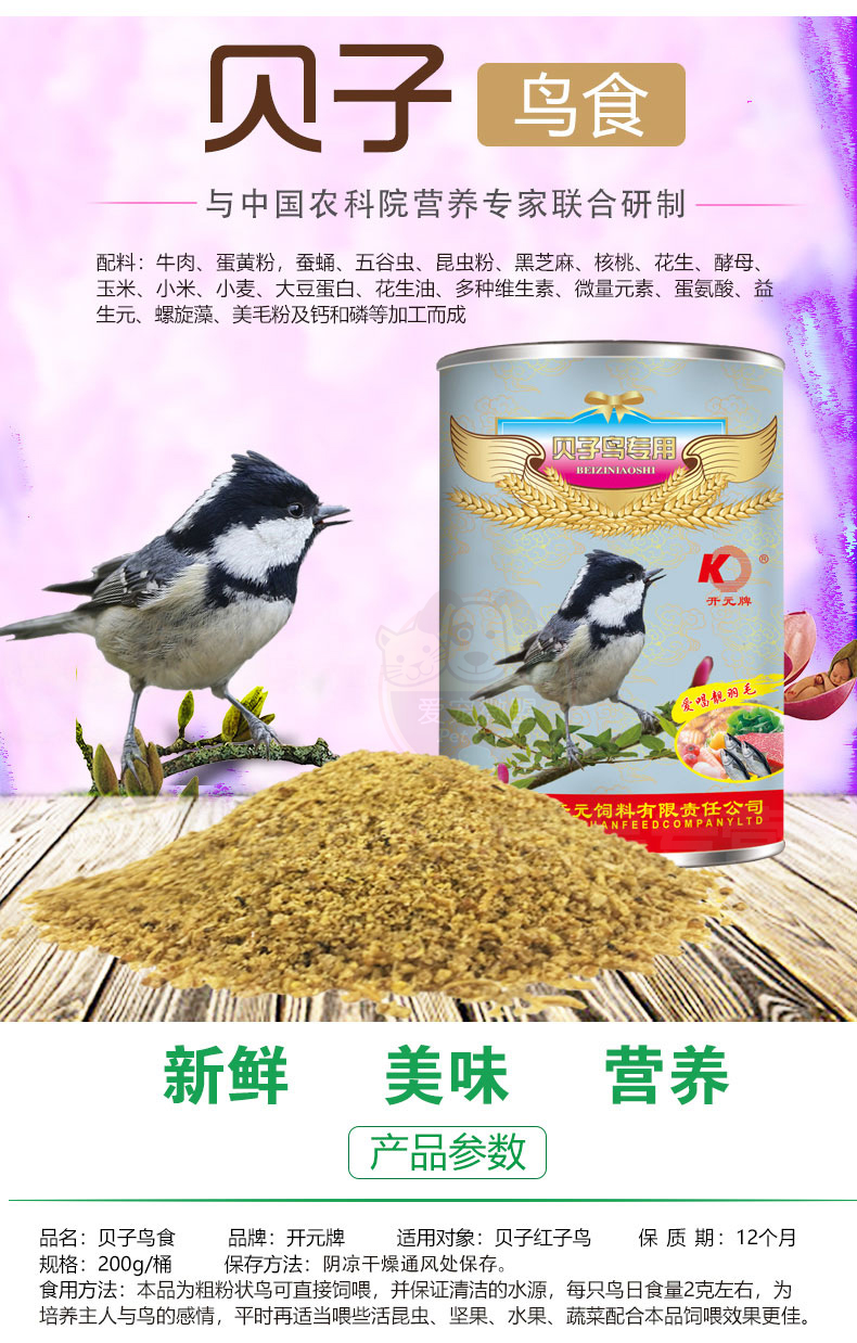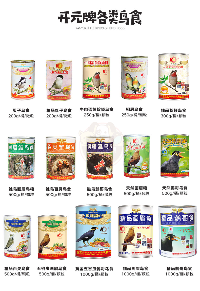 Kaiyuan (KO) bird food bird food feed pigeon pet bird food grain staple food 250g 1 can full price indigo bird food