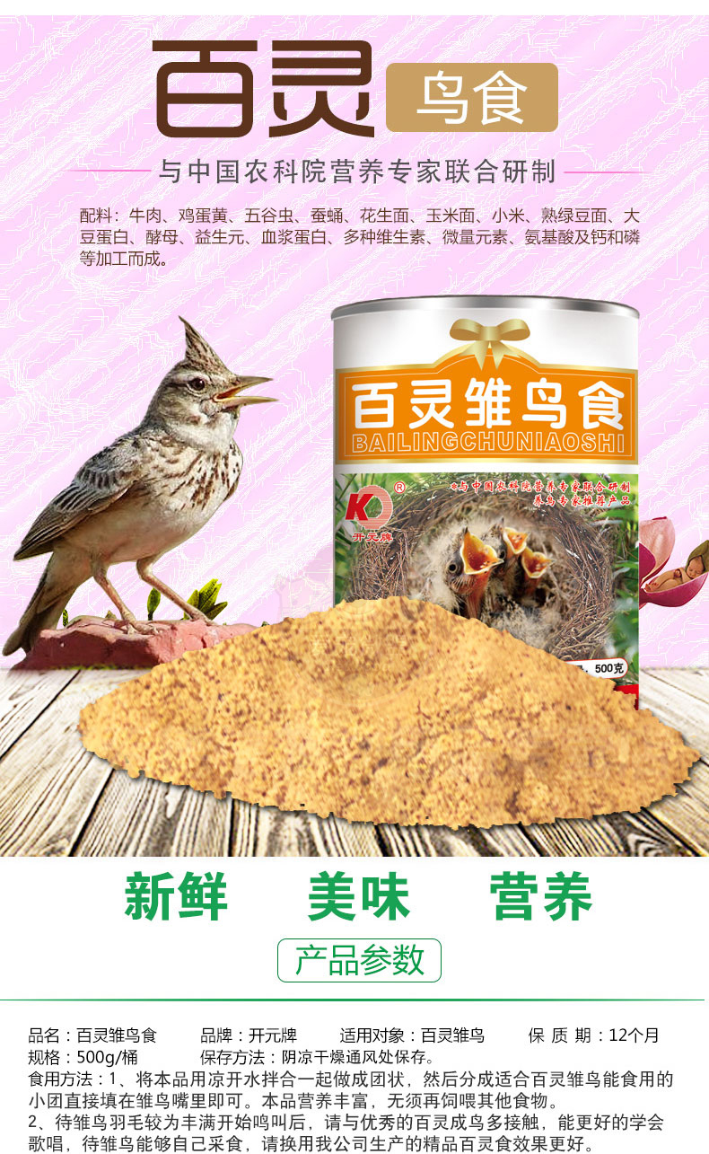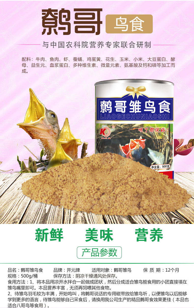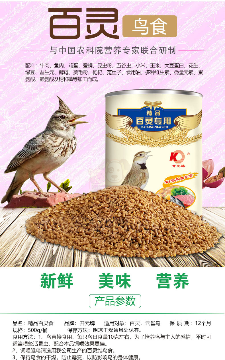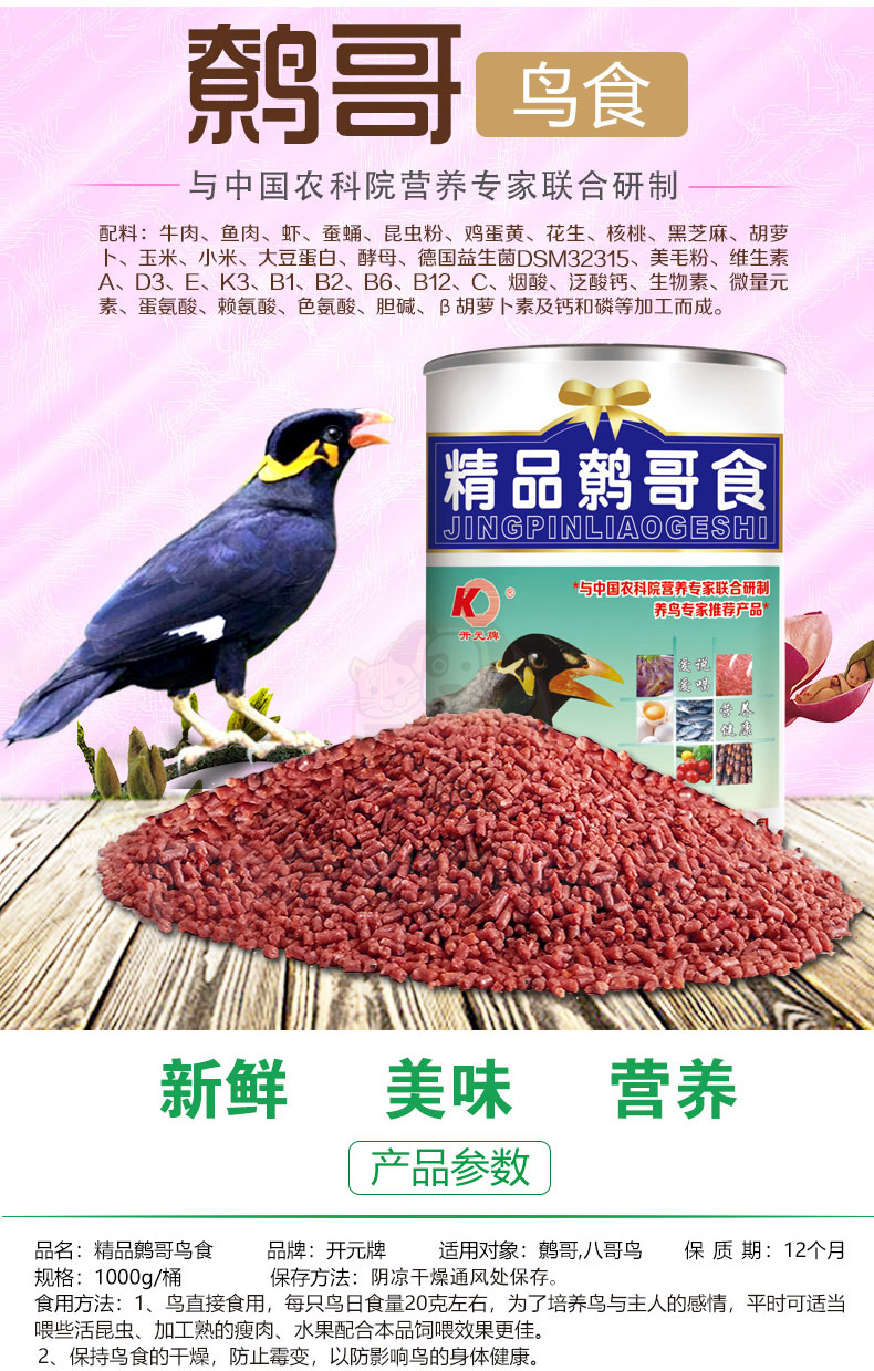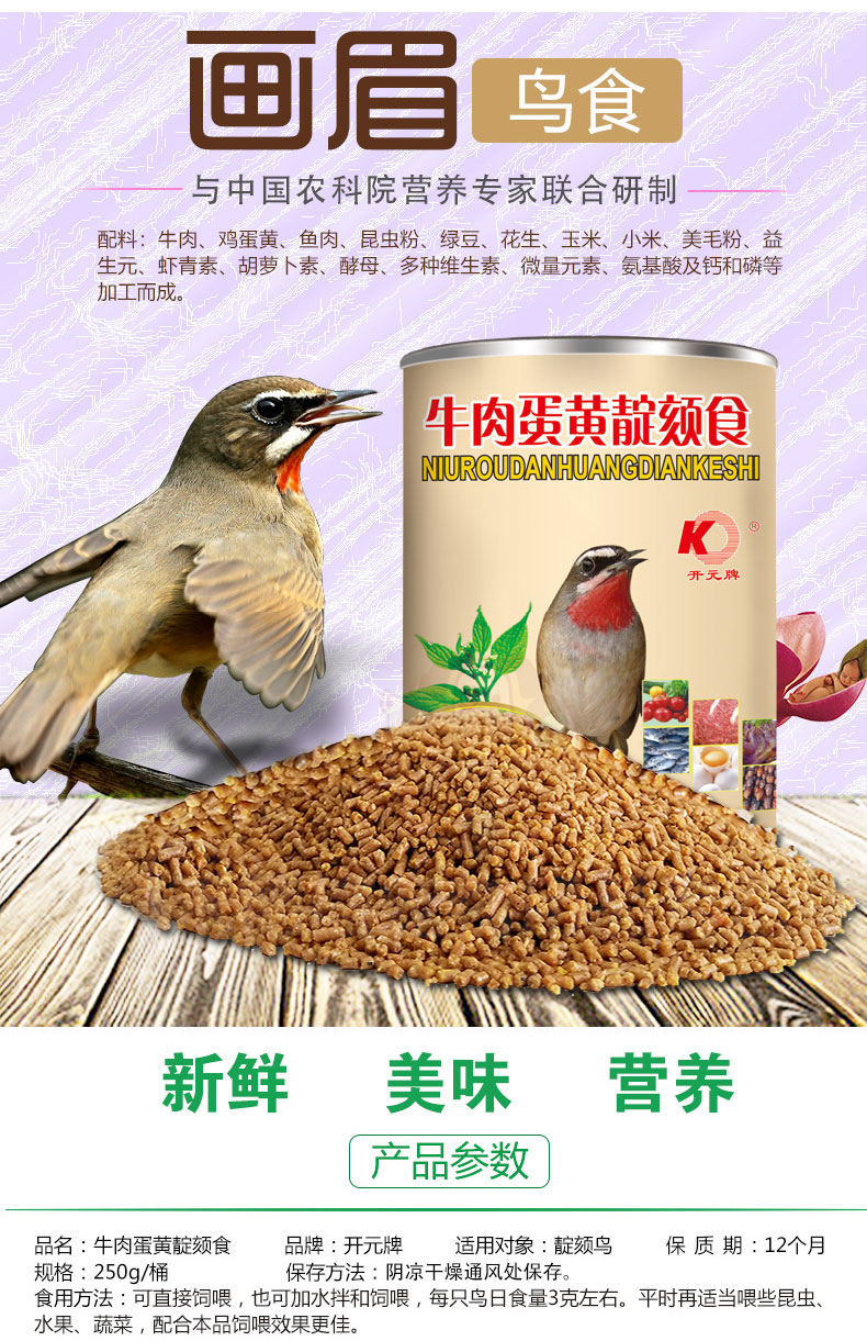 Kaiyuan (KO) bird food bird food feed pigeon pet bird food grain staple food 250g 1 can full price indigo bird food