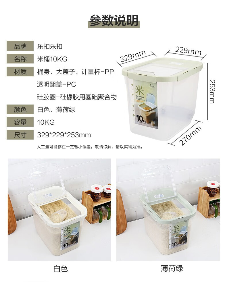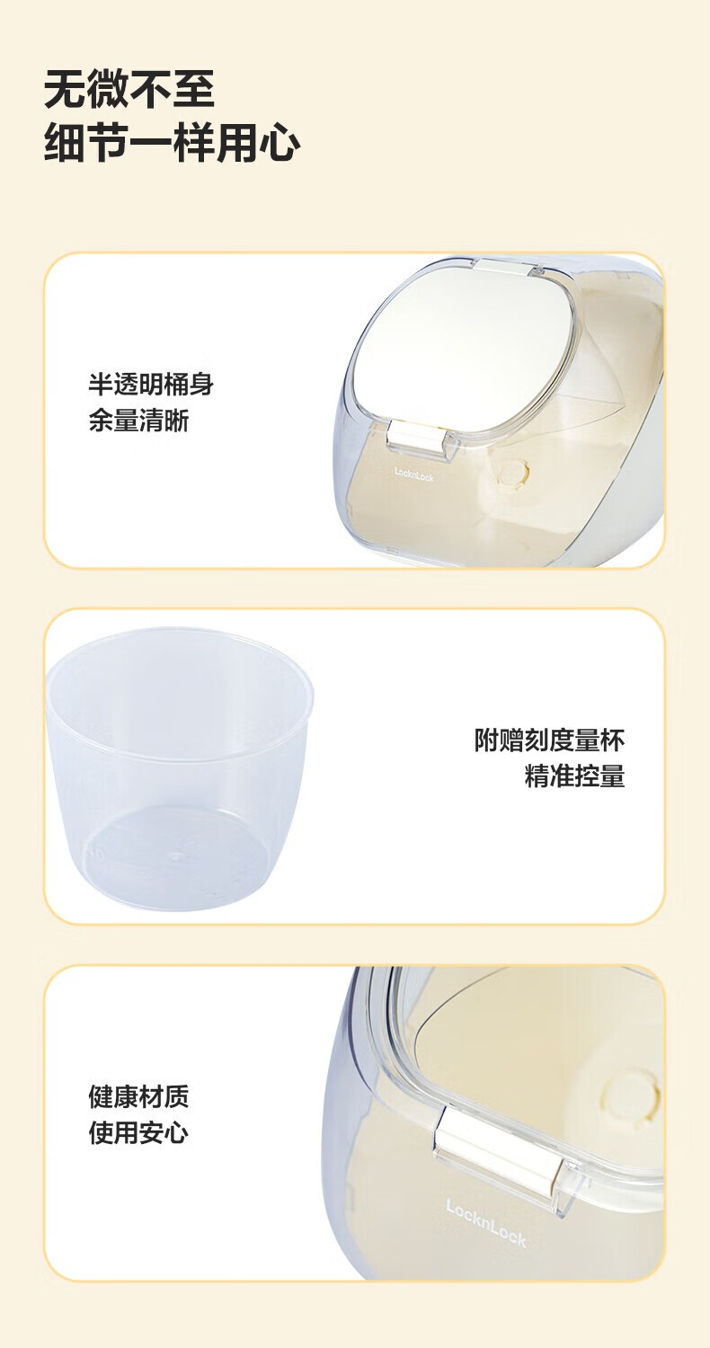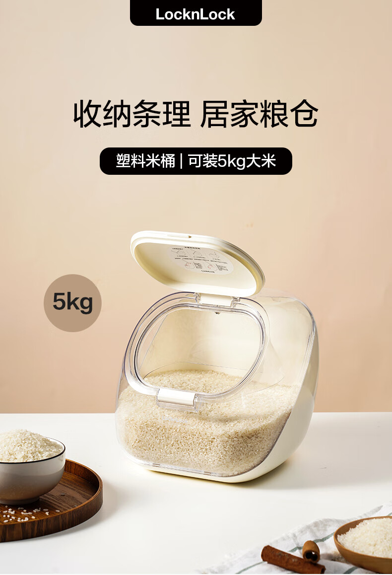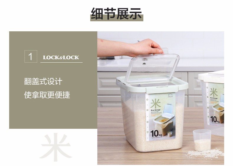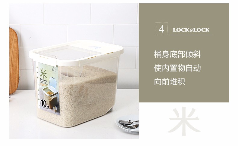 LOCK&LOCK rice bucket grain box large capacity flip-top rice box HPL561WHT white-10L