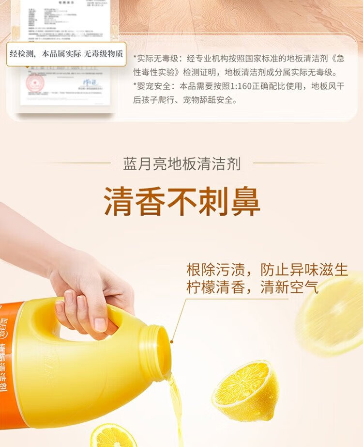 Blue Moon Floor Cleaner 2kg/bottle*3 Lemon Scent Wooden Floor Tile Floor Cleaner Floor Washing Machine Available