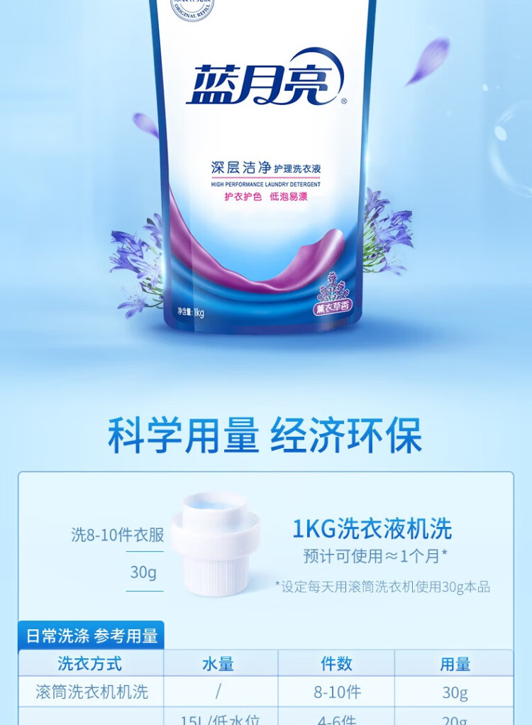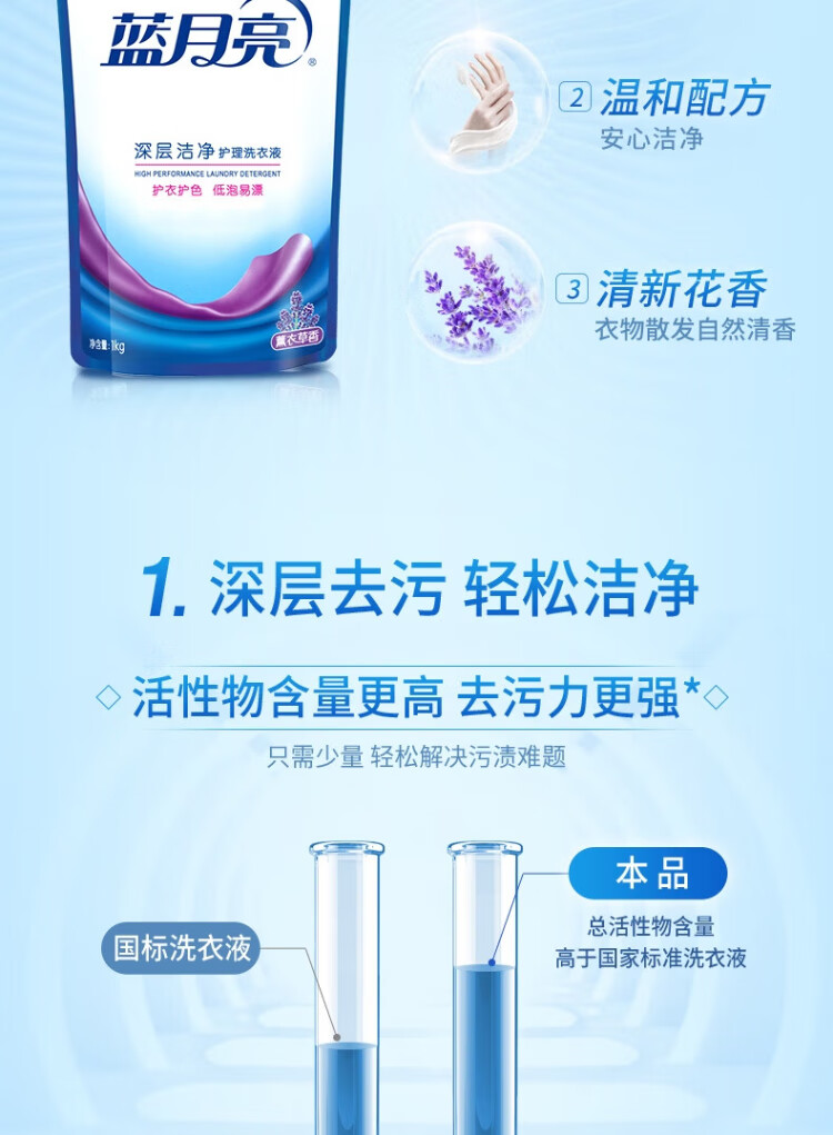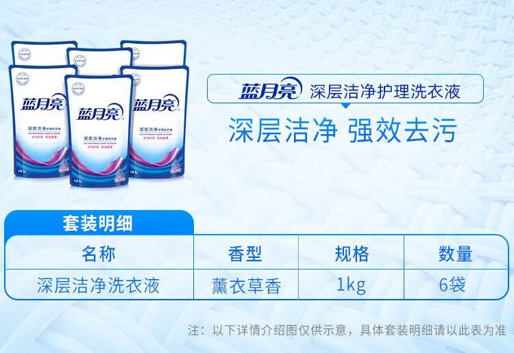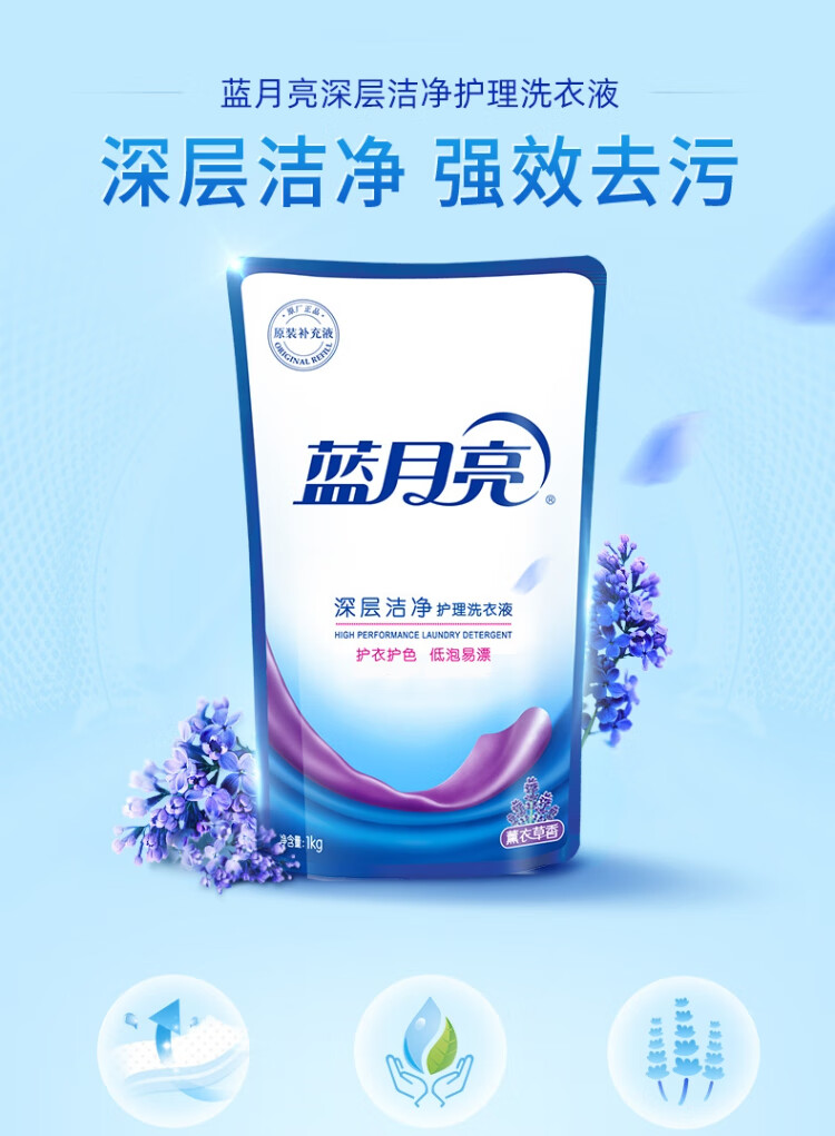 Blue Moon Deep Cleansing Laundry Detergent Lavender Scent 1kg*6 Bag Refill Powerful Decontamination