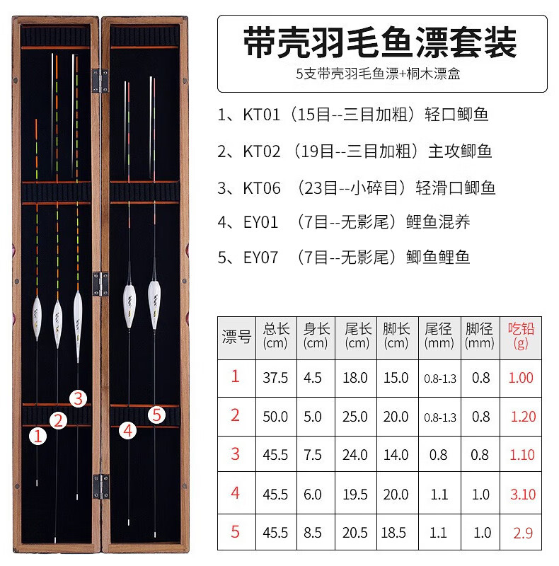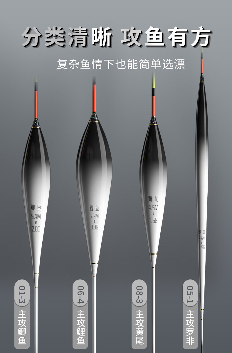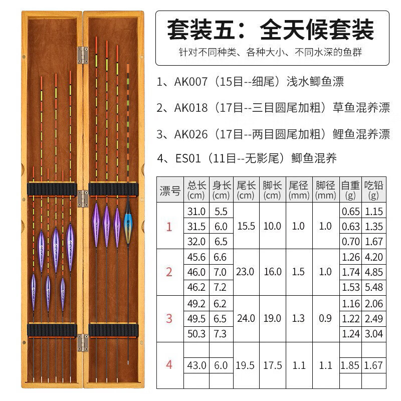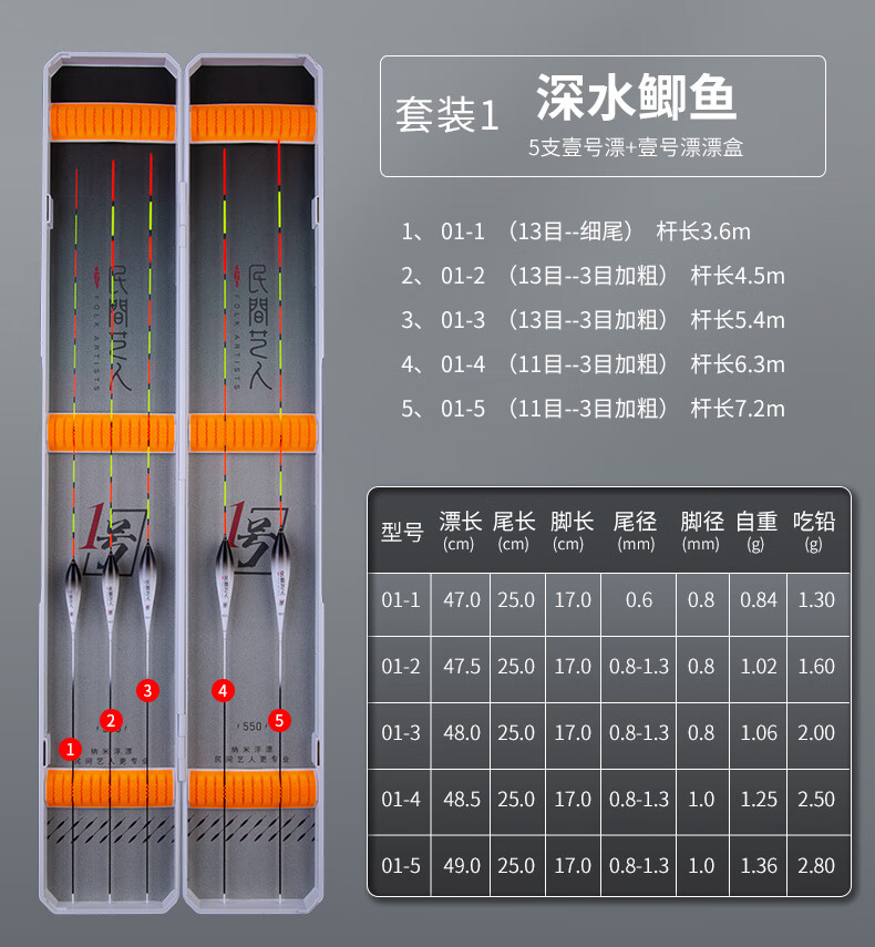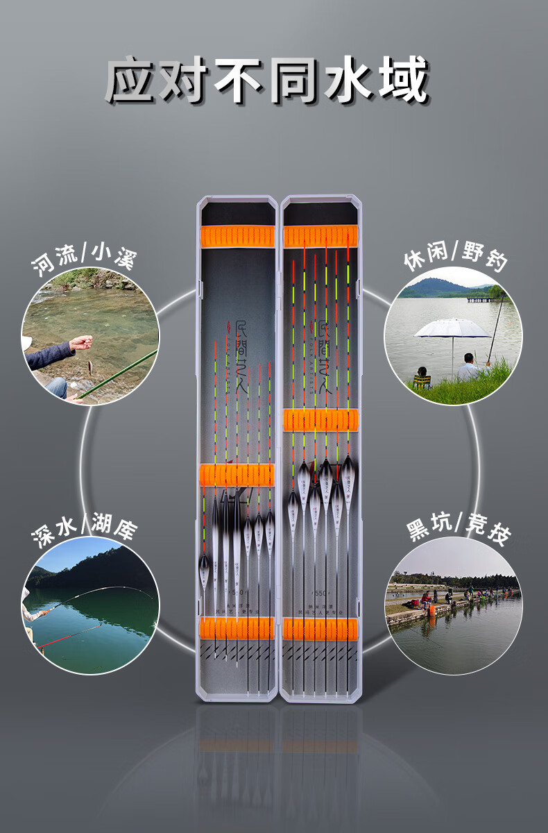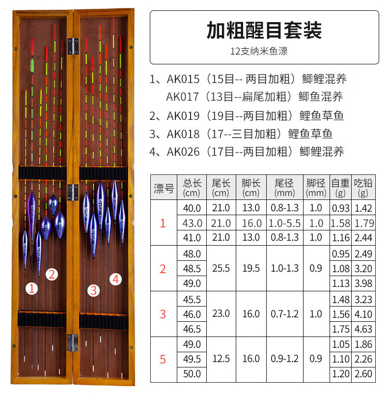 Folk artist fish float set, high-sensitivity float for crucian carp and carp, bold and eye-catching luminous float for wild fishing, gift set with float box, No. 1 float set of five deep-water crucian carp