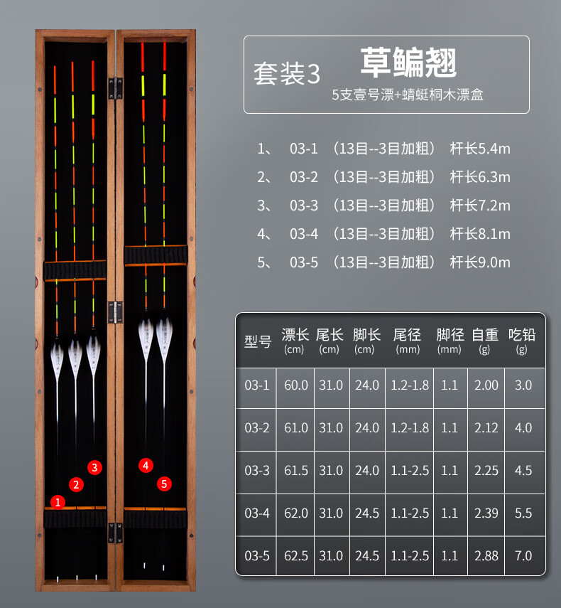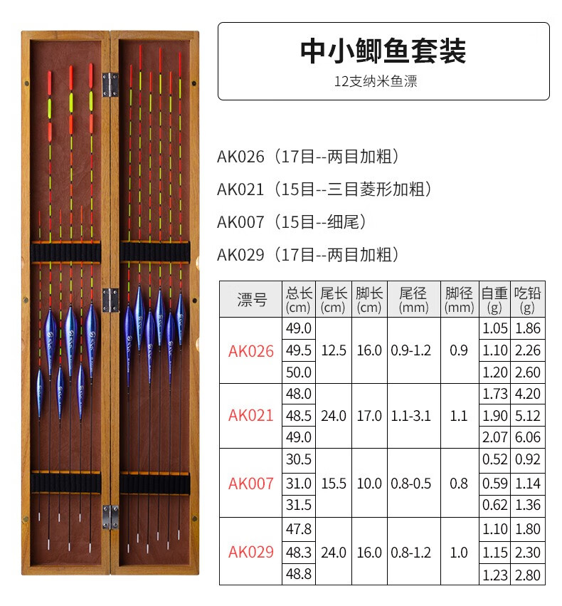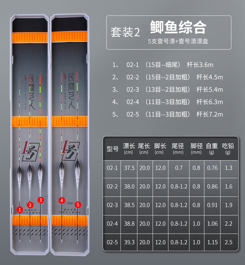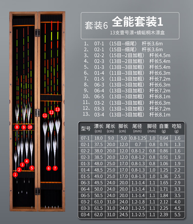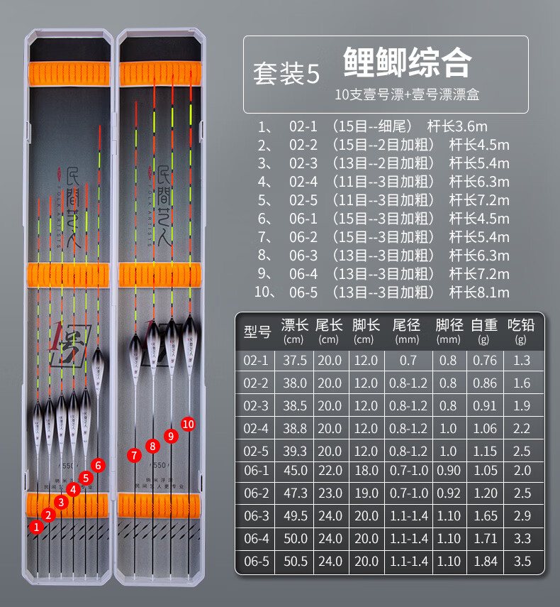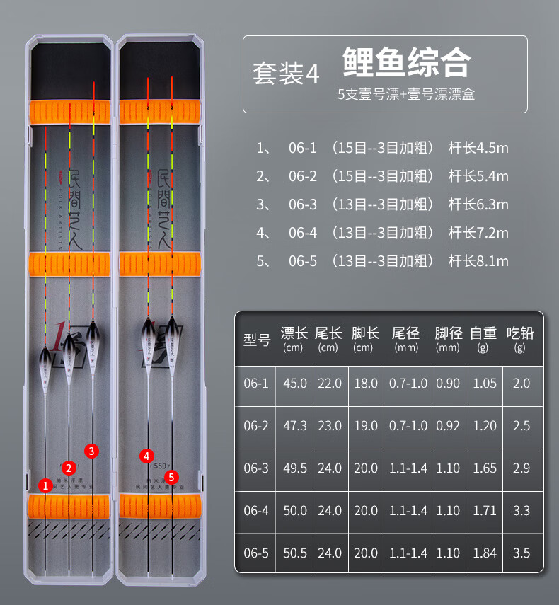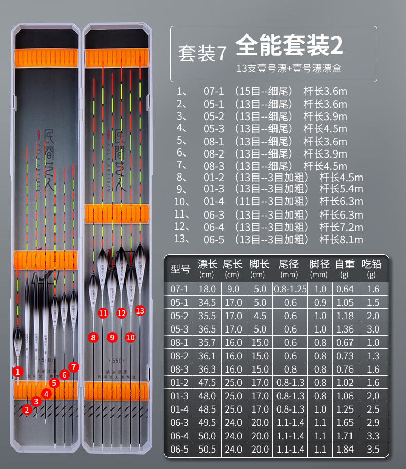 Folk artist fish float set, high-sensitivity float for crucian carp and carp, bold and eye-catching luminous float for wild fishing, gift set with float box, No. 1 float set of five deep-water crucian carp