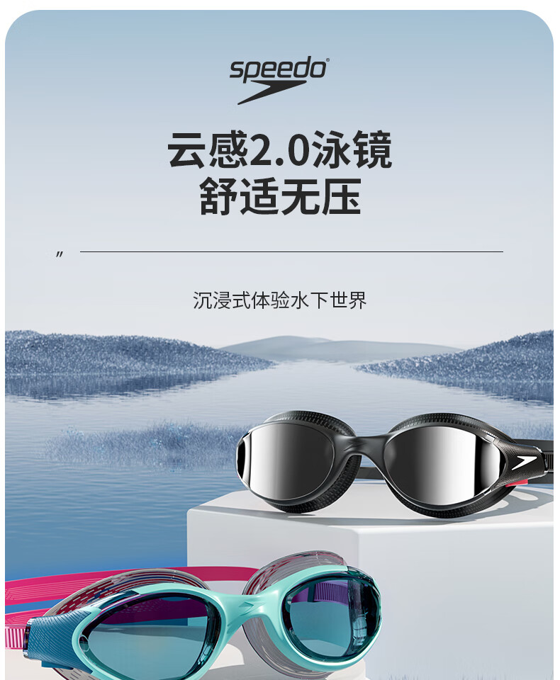 Speedo Speedo swimming goggles large frame Biofuse cloud sense 2.0 waterproof and anti-fog women's swimming goggles men's high-definition swimming equipment Chinese red/silver/transparent color