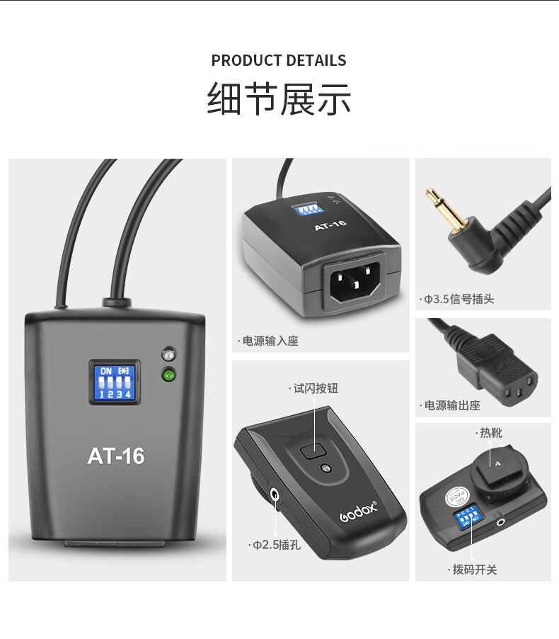 Godox flash trigger AT16 photography light flash studio SLR camera universal wireless trigger AT16 standard