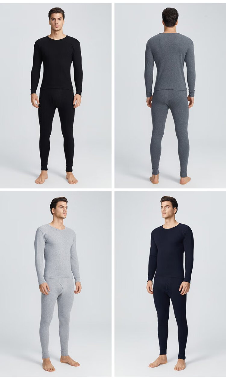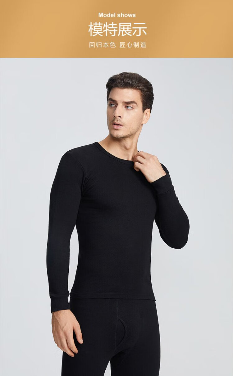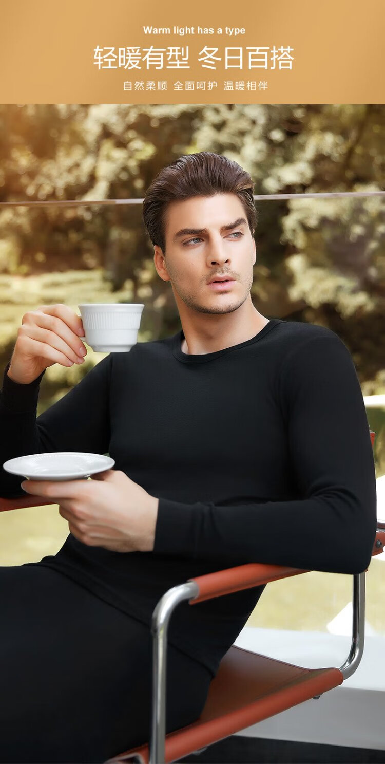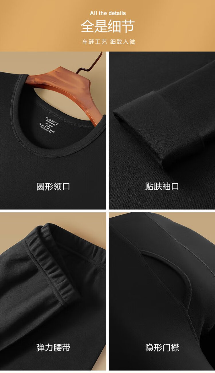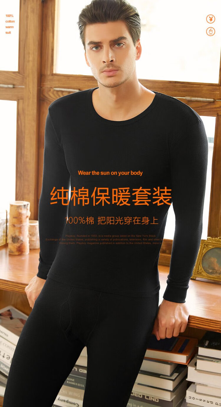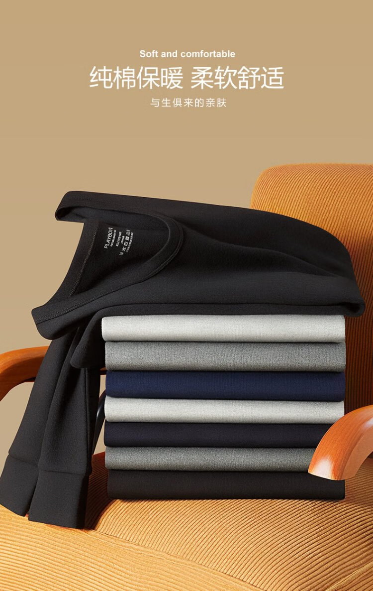 花花公子德绒秋衣秋裤男保暖内衣男磨毛羊绒贴片套装桑蚕丝10A抗菌防螨秋