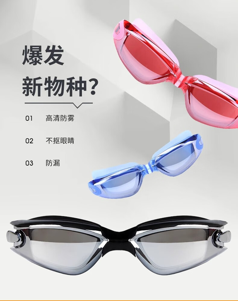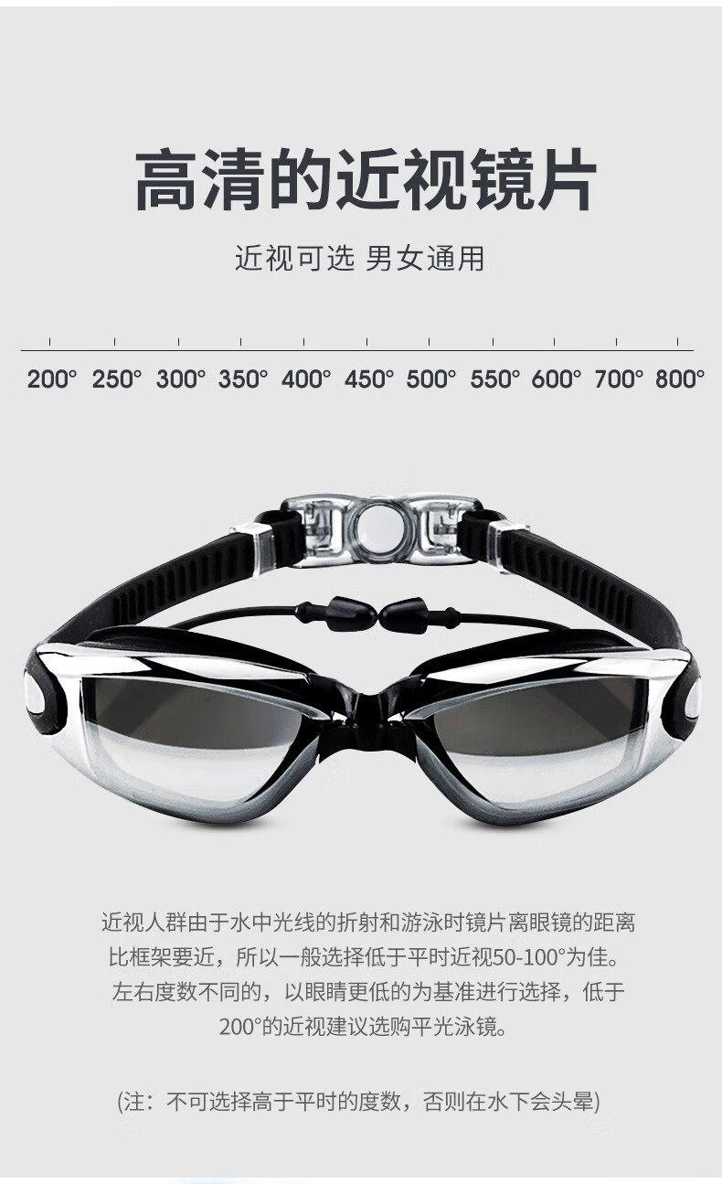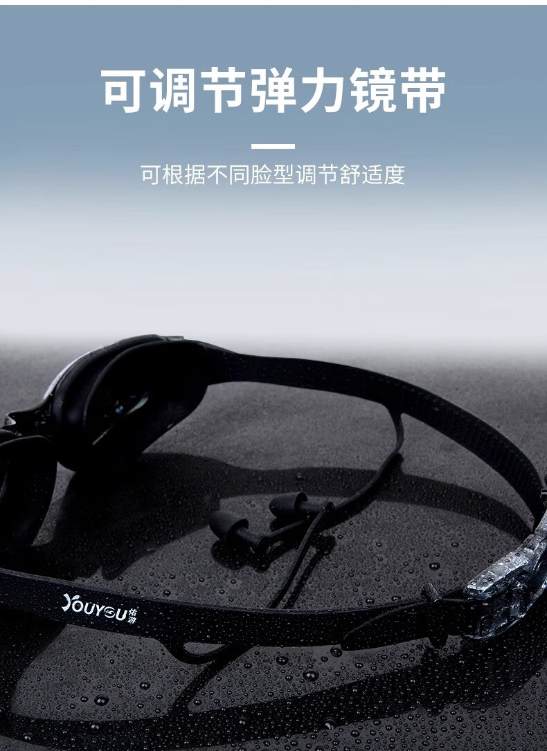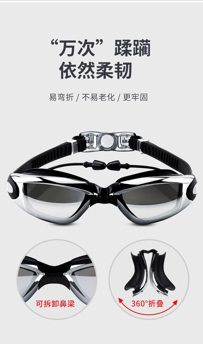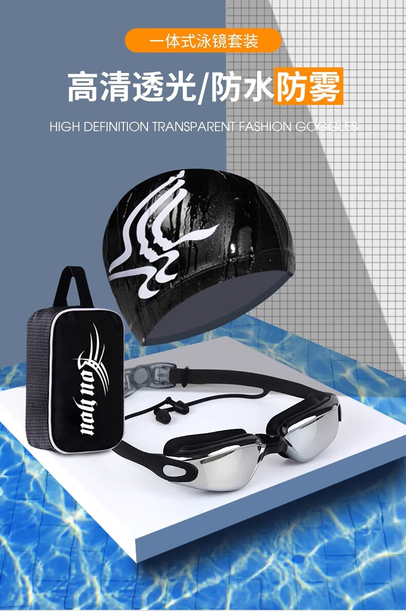 You swimming goggles, swimming cap, high-definition anti-fog and waterproof earplugs, nose clip, glasses and swimming goggles, five-piece set Z6615, electroplated black flat