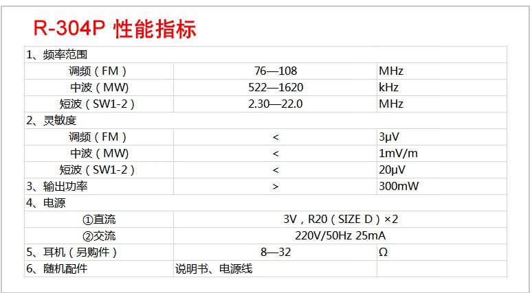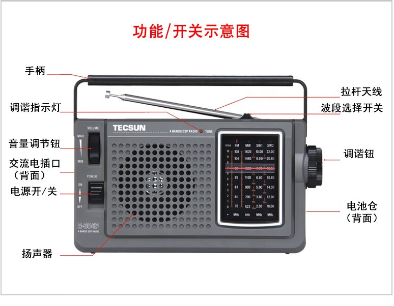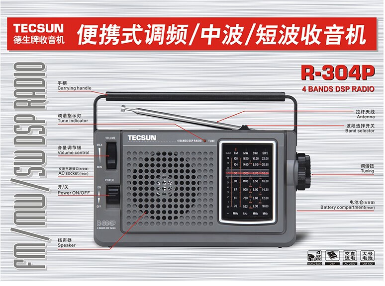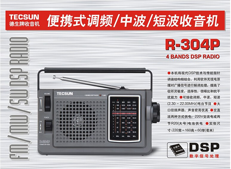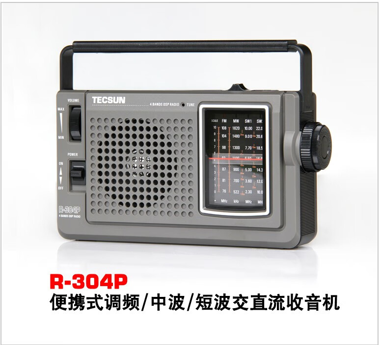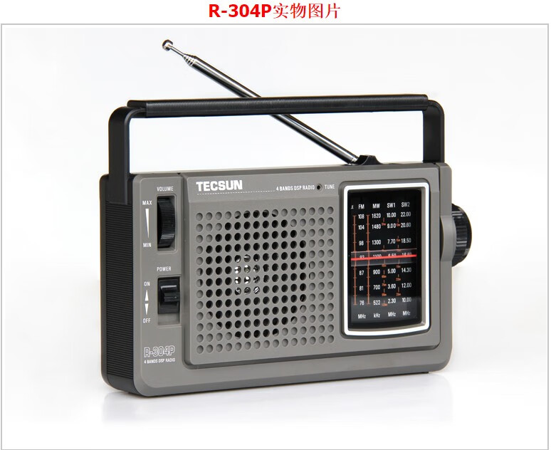 Tecsun R-304P portable pointer radio for the elderly, full-band desktop portable plug-in semiconductor broadcast radio, standard configuration + 2 AA batteries