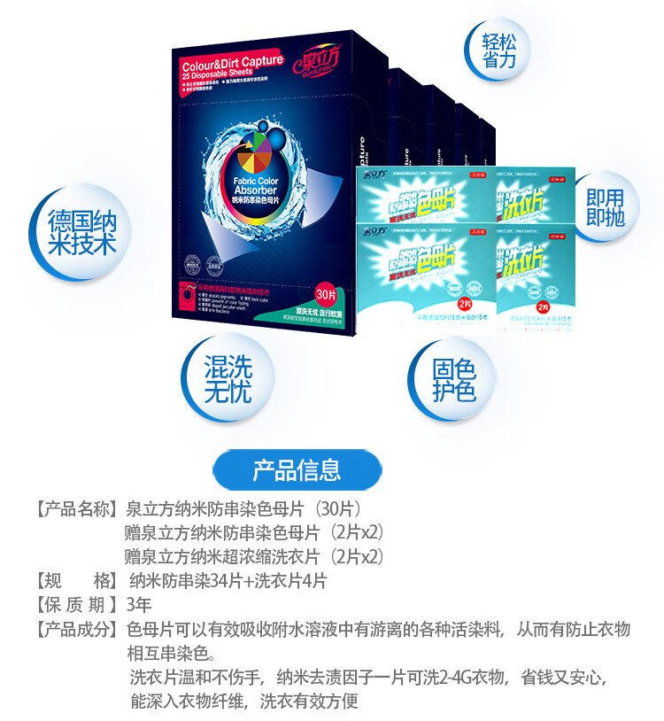 Quancube color absorbing tablet set 38 pieces (34 color absorbing tablets + 4 laundry tablets) anti-staining mother piece laundry paper color protection and color fixation