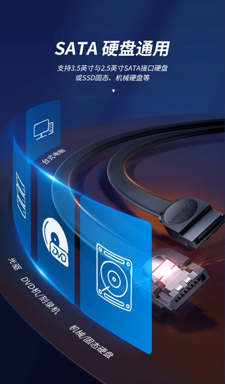 Greenlink high-speed SATA3.0 hard disk data connection cable external solid-state mechanical hard disk optical drive serial port power supply dual-channel conversion cable straight 0.5 meters 30796