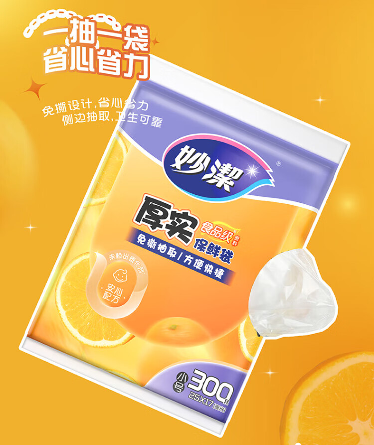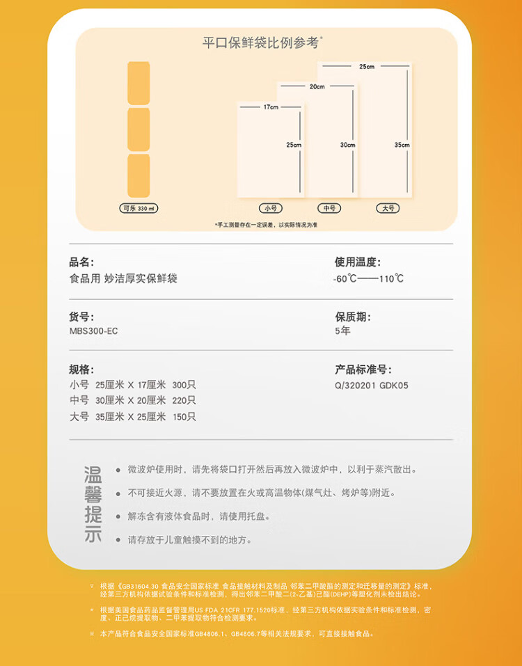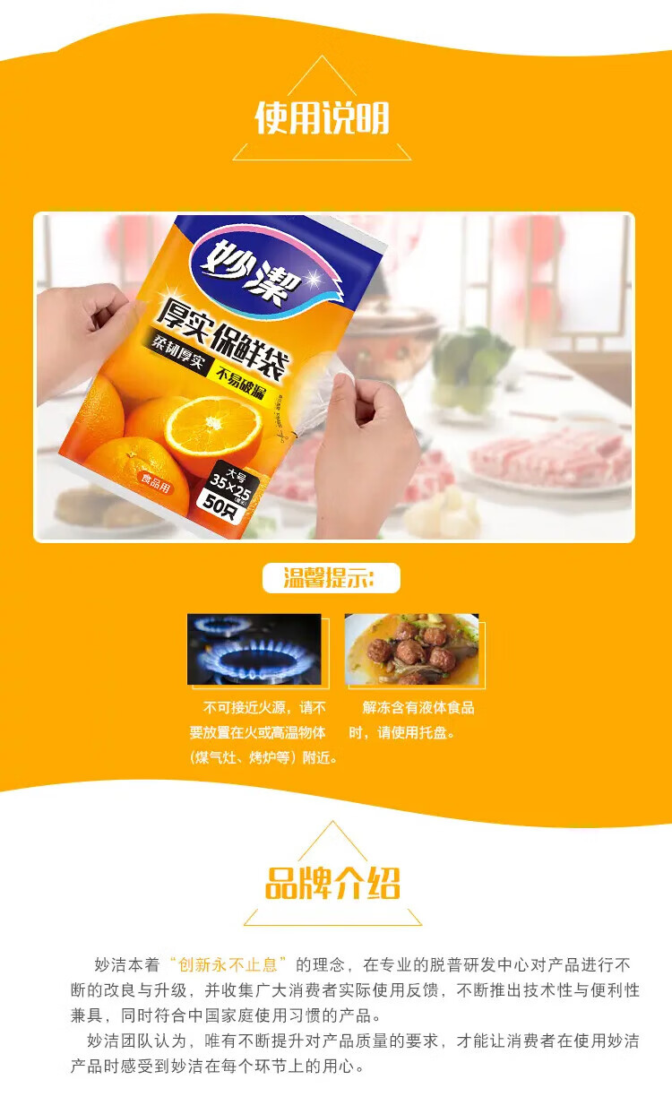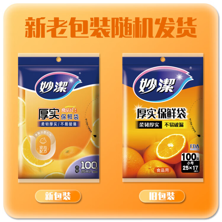 Miaojie thick removable flat mouth fresh-keeping bags are thick and durable, large size 50 pieces * 5 bags