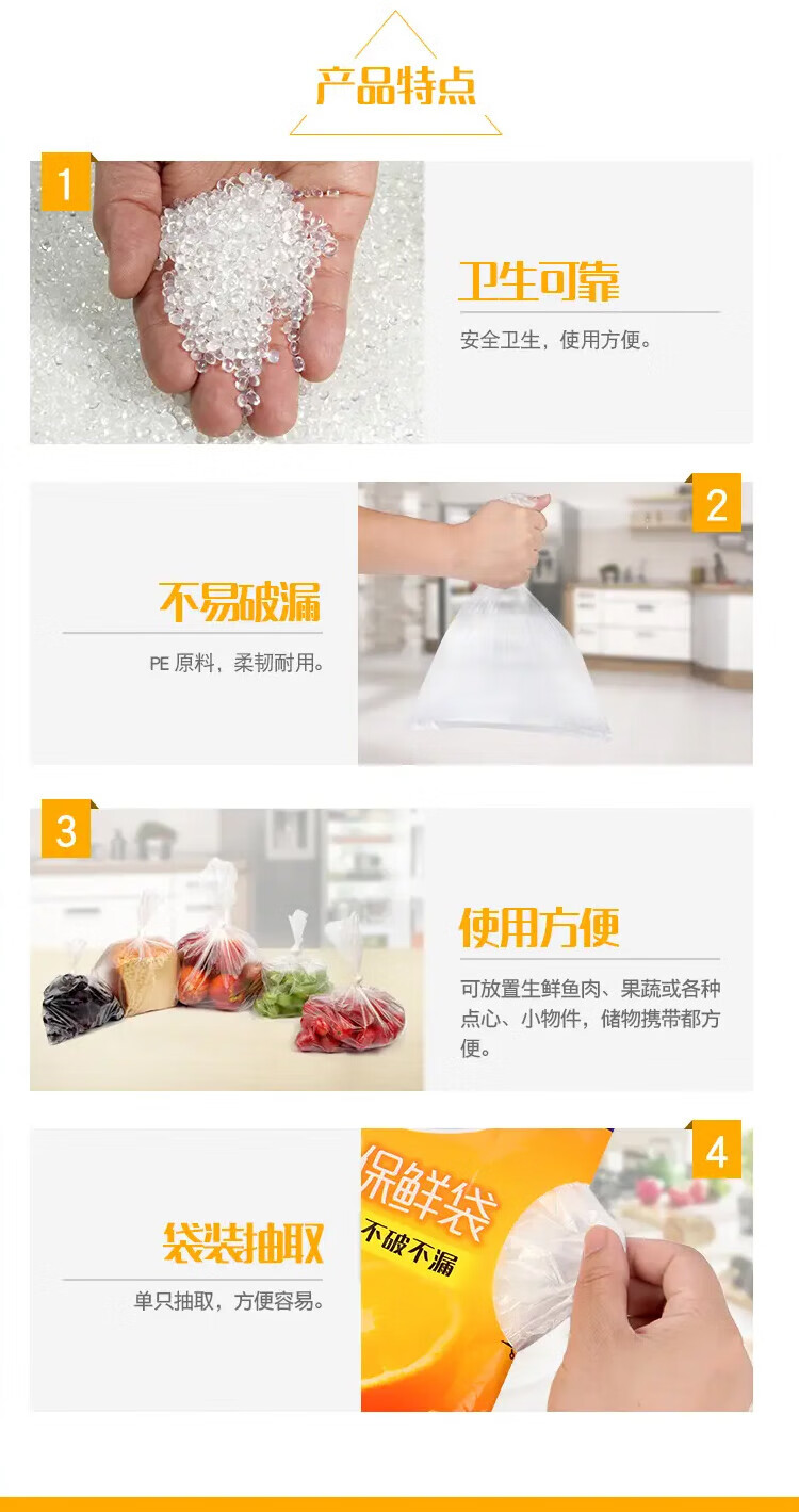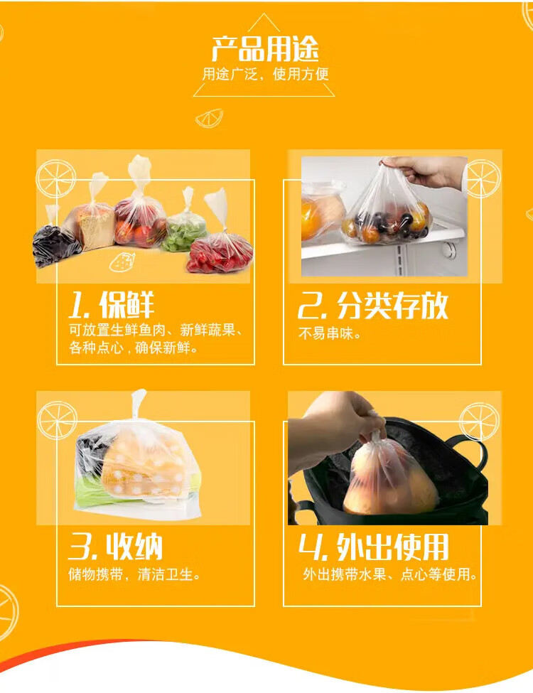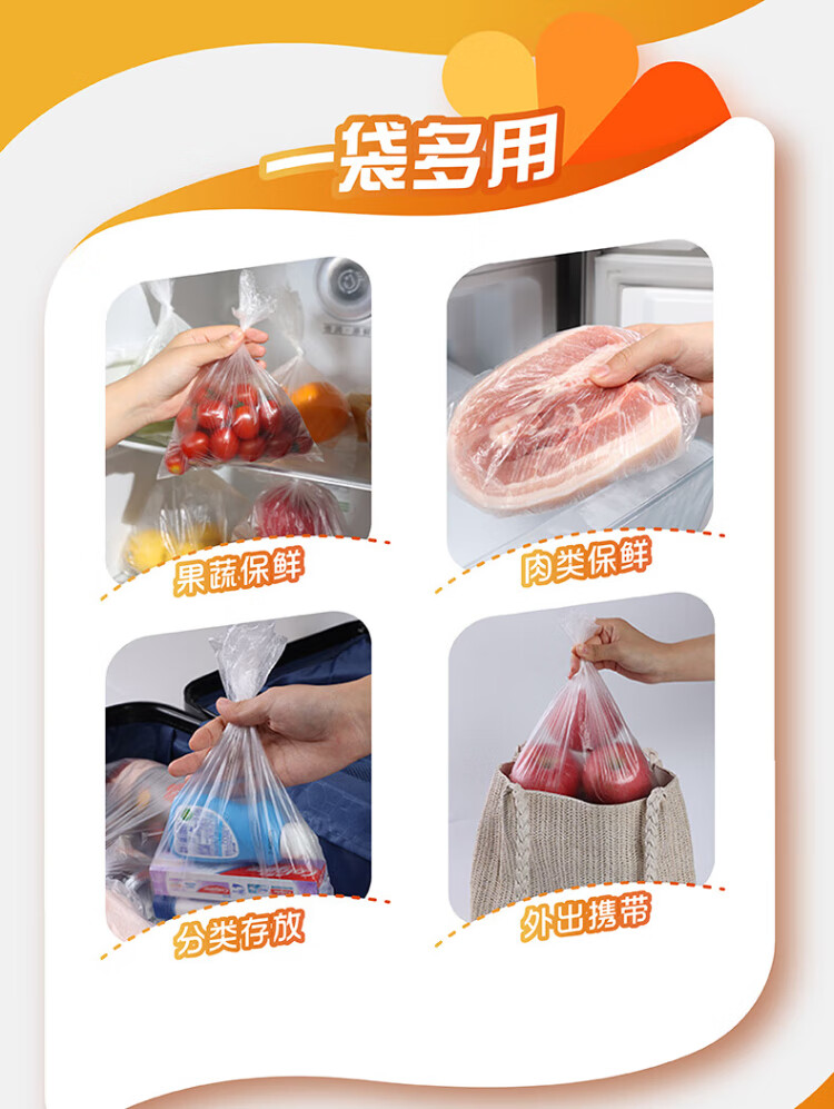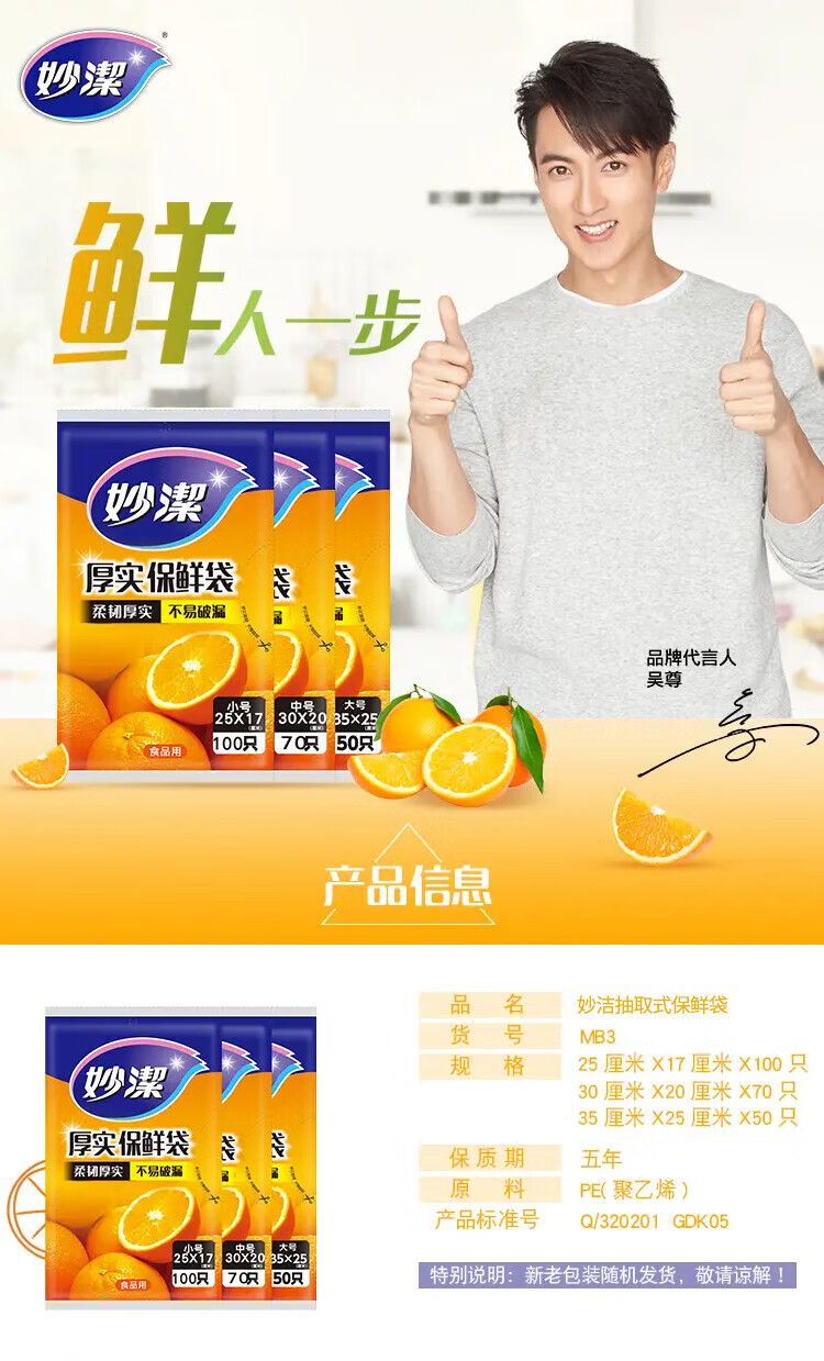 Miaojie thick removable flat mouth fresh-keeping bags are thick and durable, large size 50 pieces * 5 bags