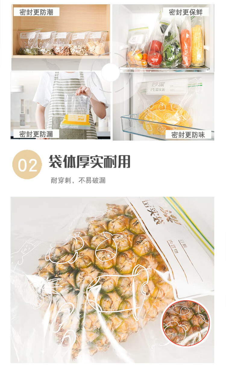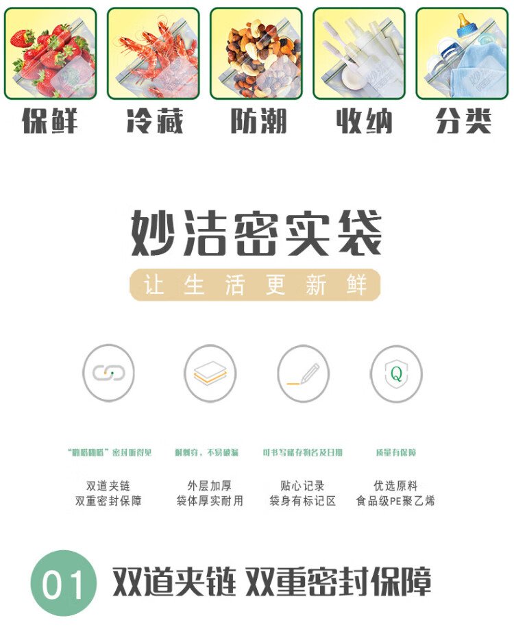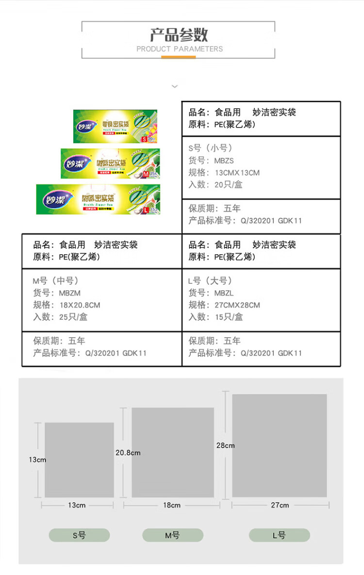 Miaojie snap dense bag food sealed fresh-keeping bag thickened waterproof double chain milk storage bag fresh-keeping bag small size 20 pieces * 3 boxes