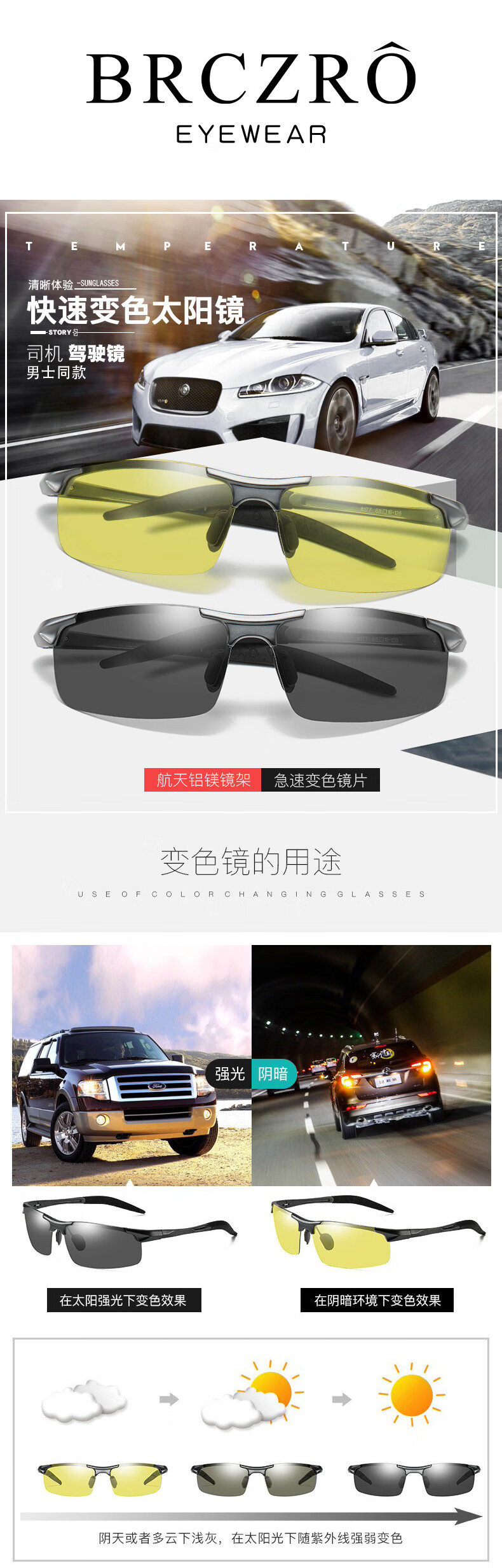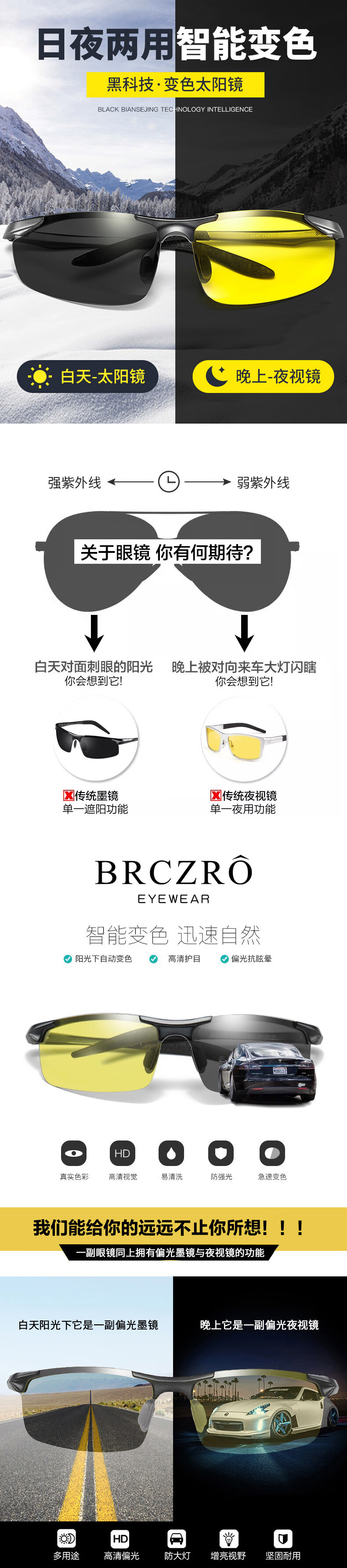 Beiche (BRCZRO) sunglasses men's sunglasses men's day and night color-changing glasses night vision glasses polarized glasses fishing driving driving anti-high beam