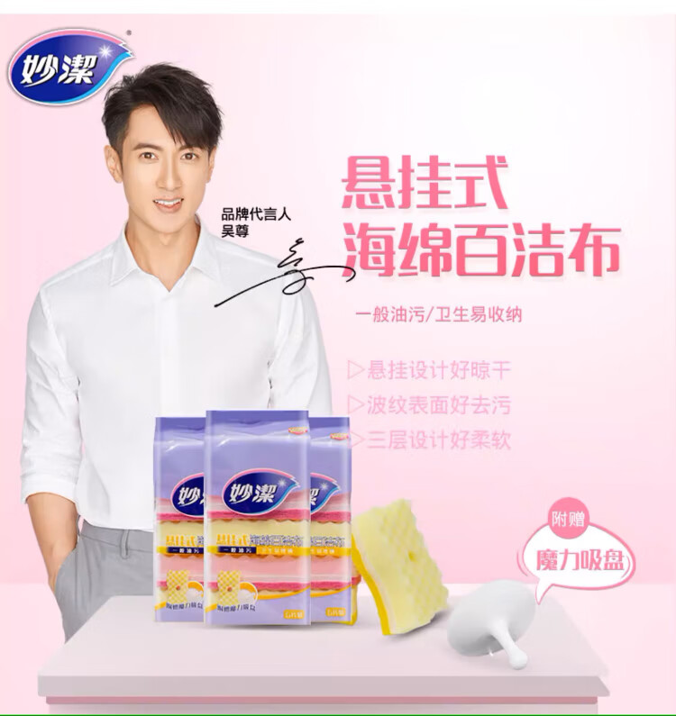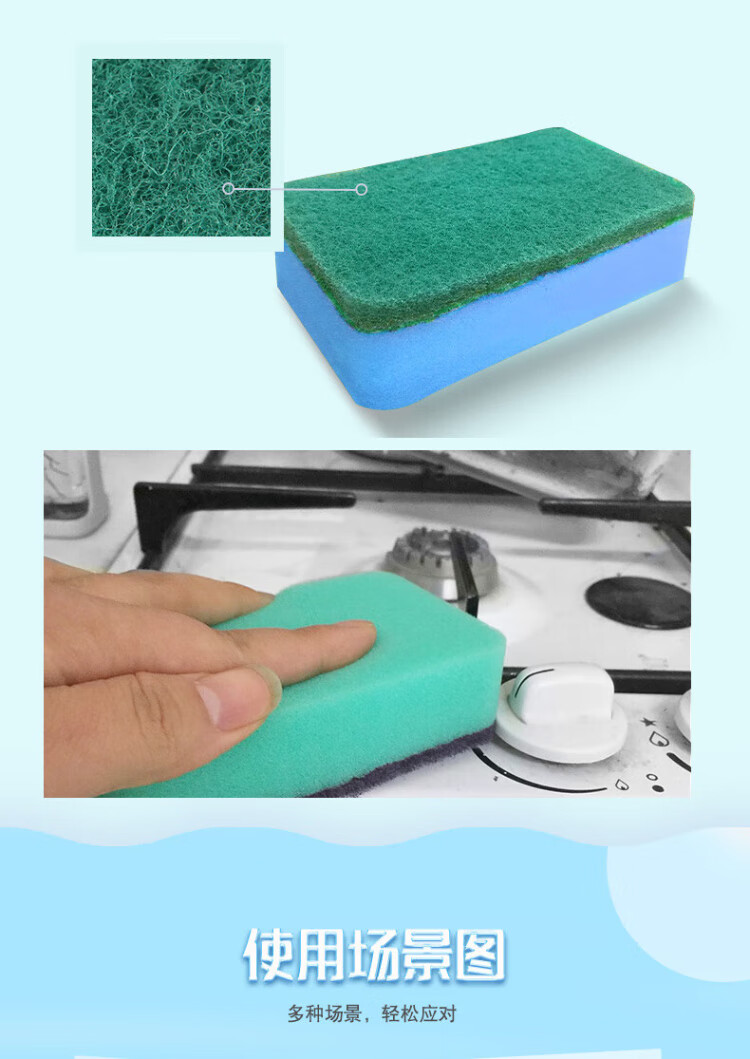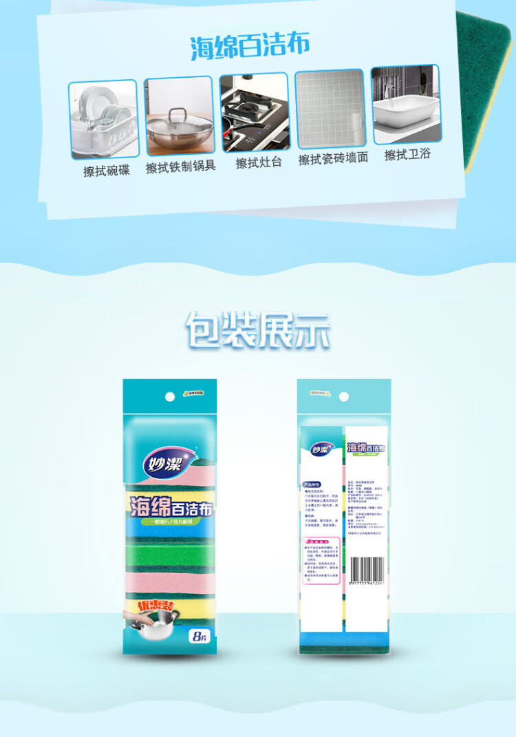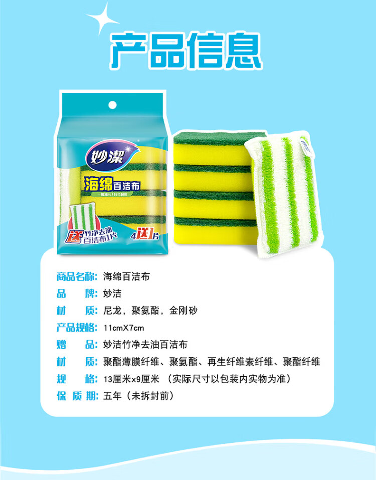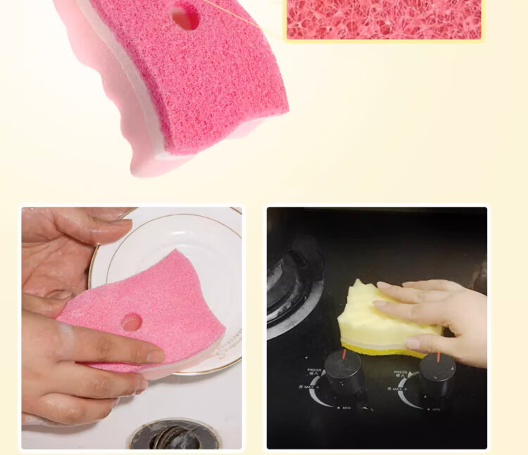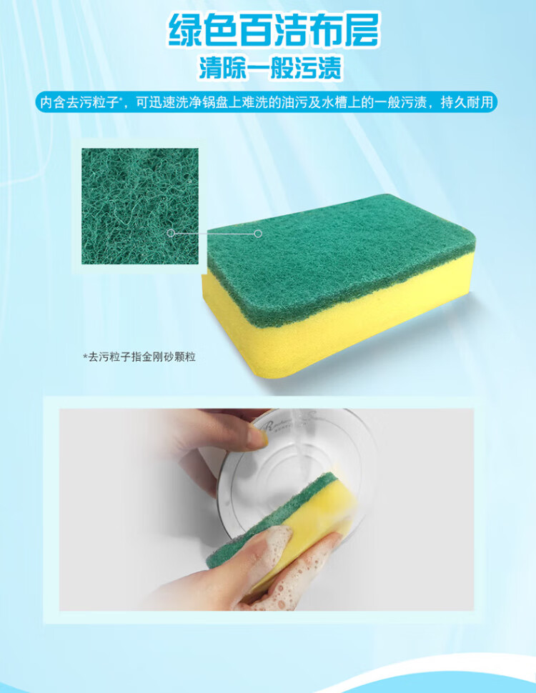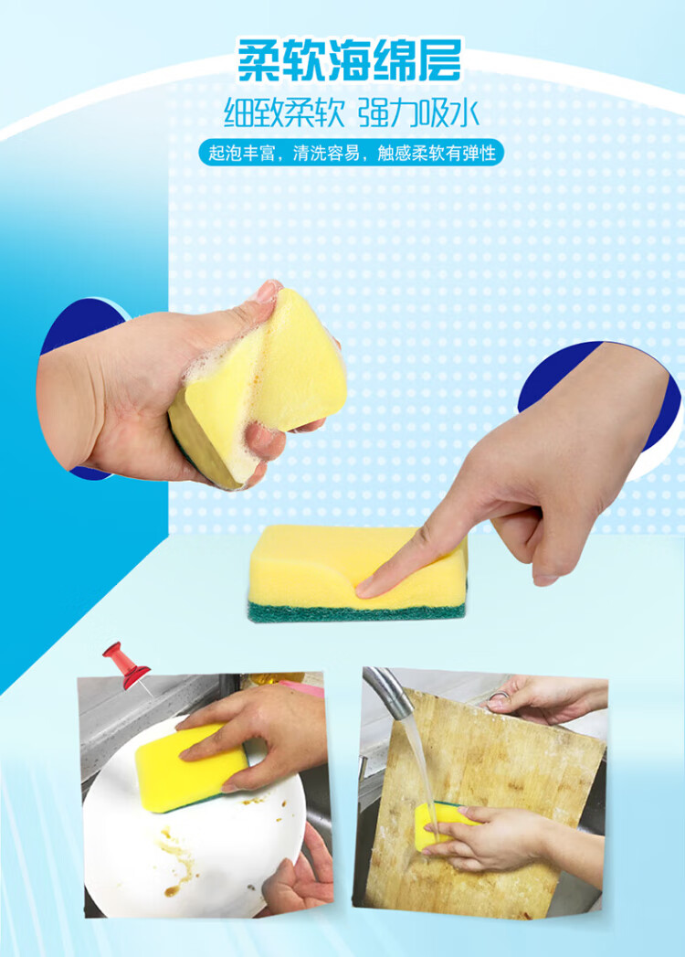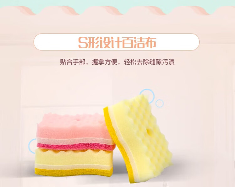 Miaojie sponge scouring pad, easy to absorb water, kitchen degreasing dishwashing cotton, hanging type 5 pieces, with hanging suction cup, 2 bags