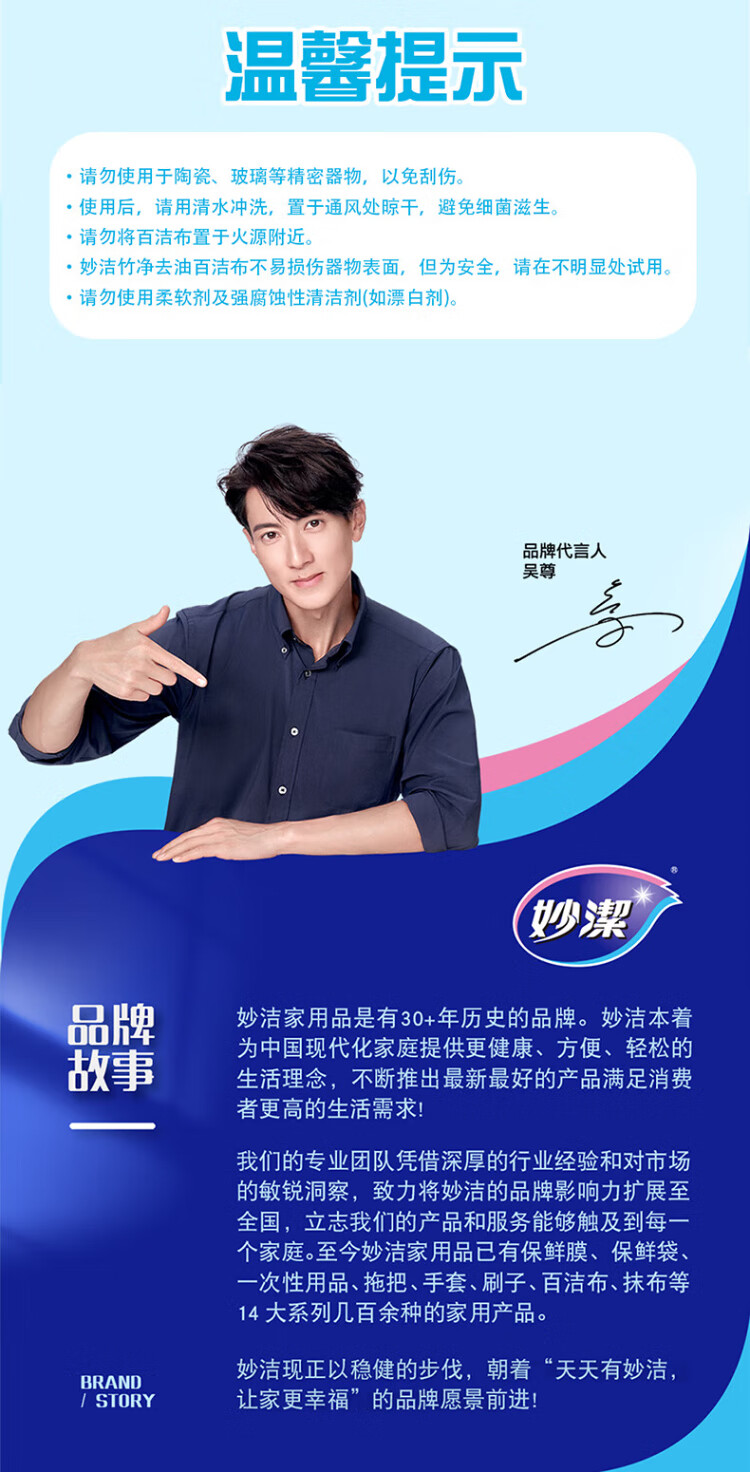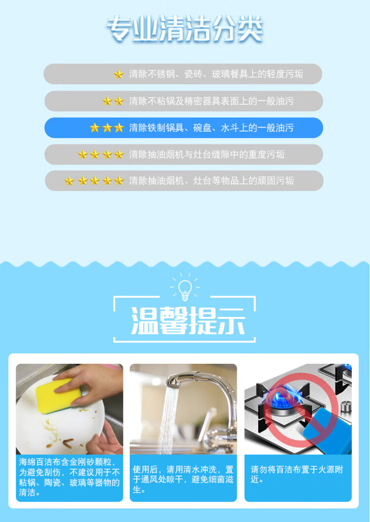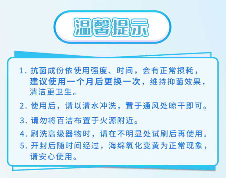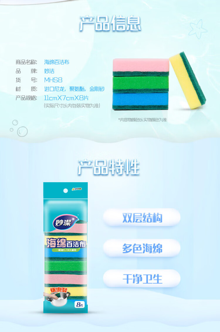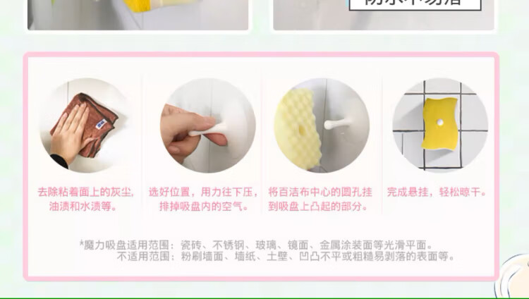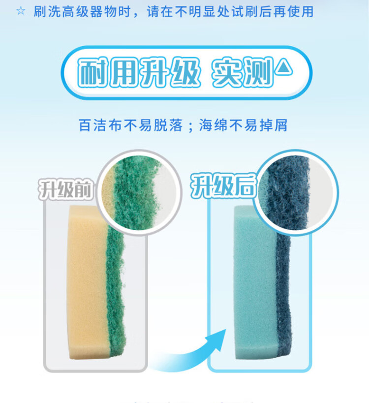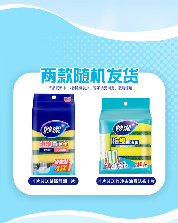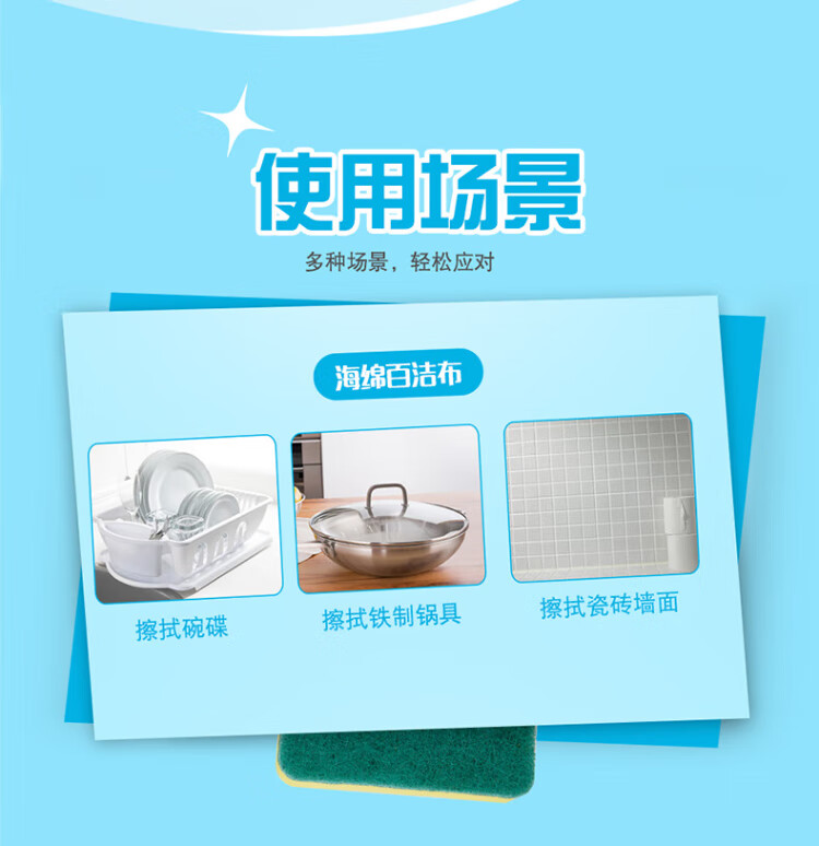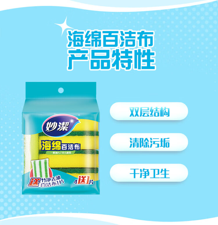 Miaojie sponge scouring pad, easy to absorb water, kitchen degreasing dishwashing cotton, hanging type 5 pieces, with hanging suction cup, 2 bags