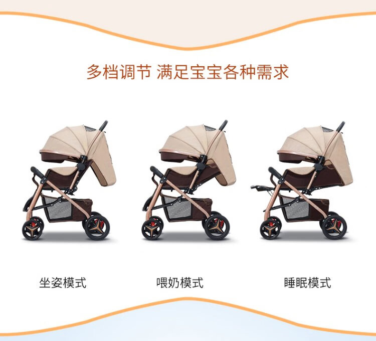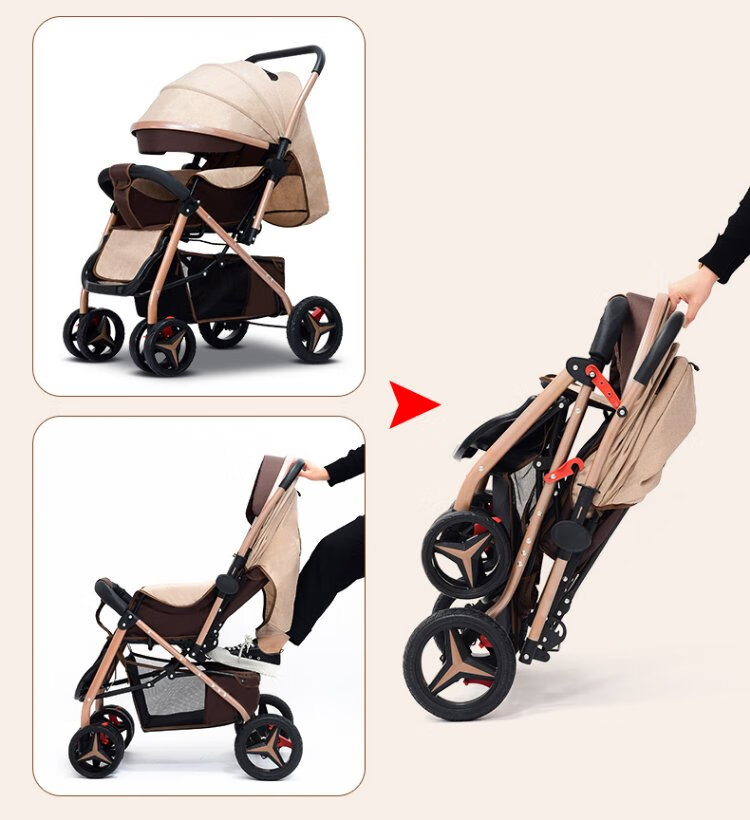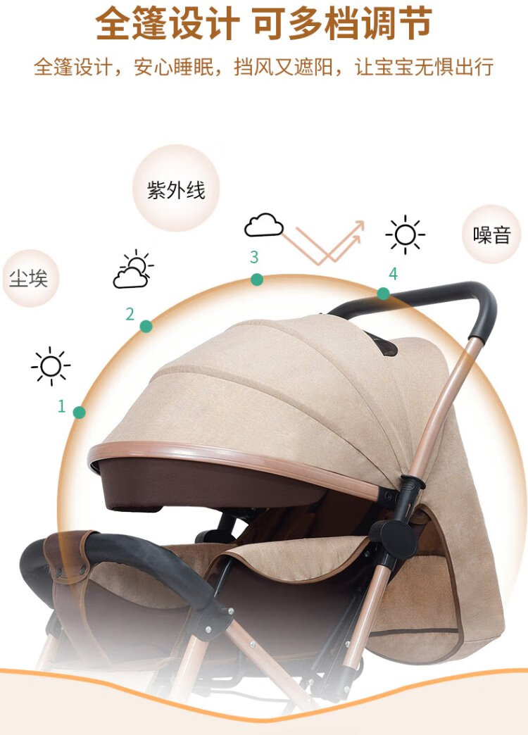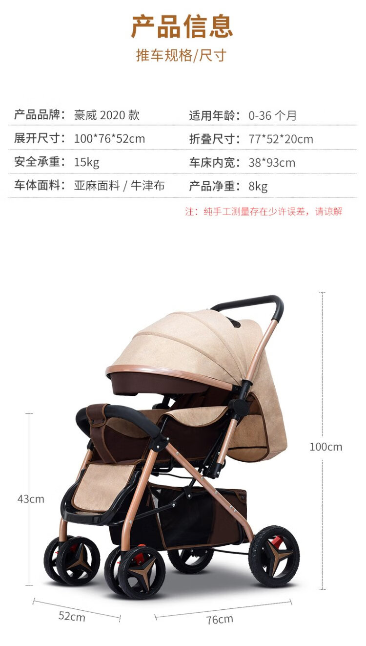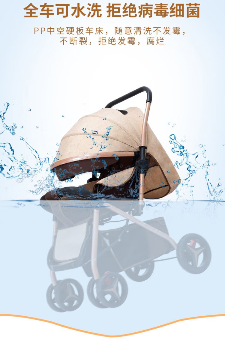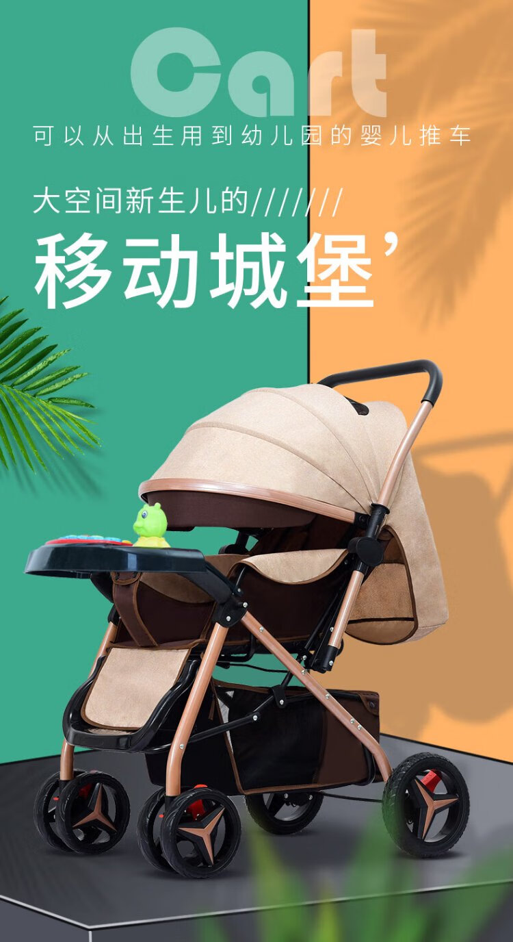 Haowei baby stroller can sit and lie down, two-way portable stroller 0-3 years old, lightweight BB stroller (the whole car is washable) Khaki + flagship model + two-way sit and lie down + music tray (the whole car is washable)