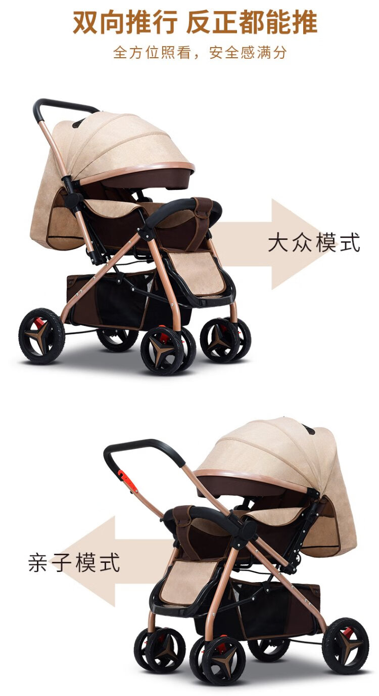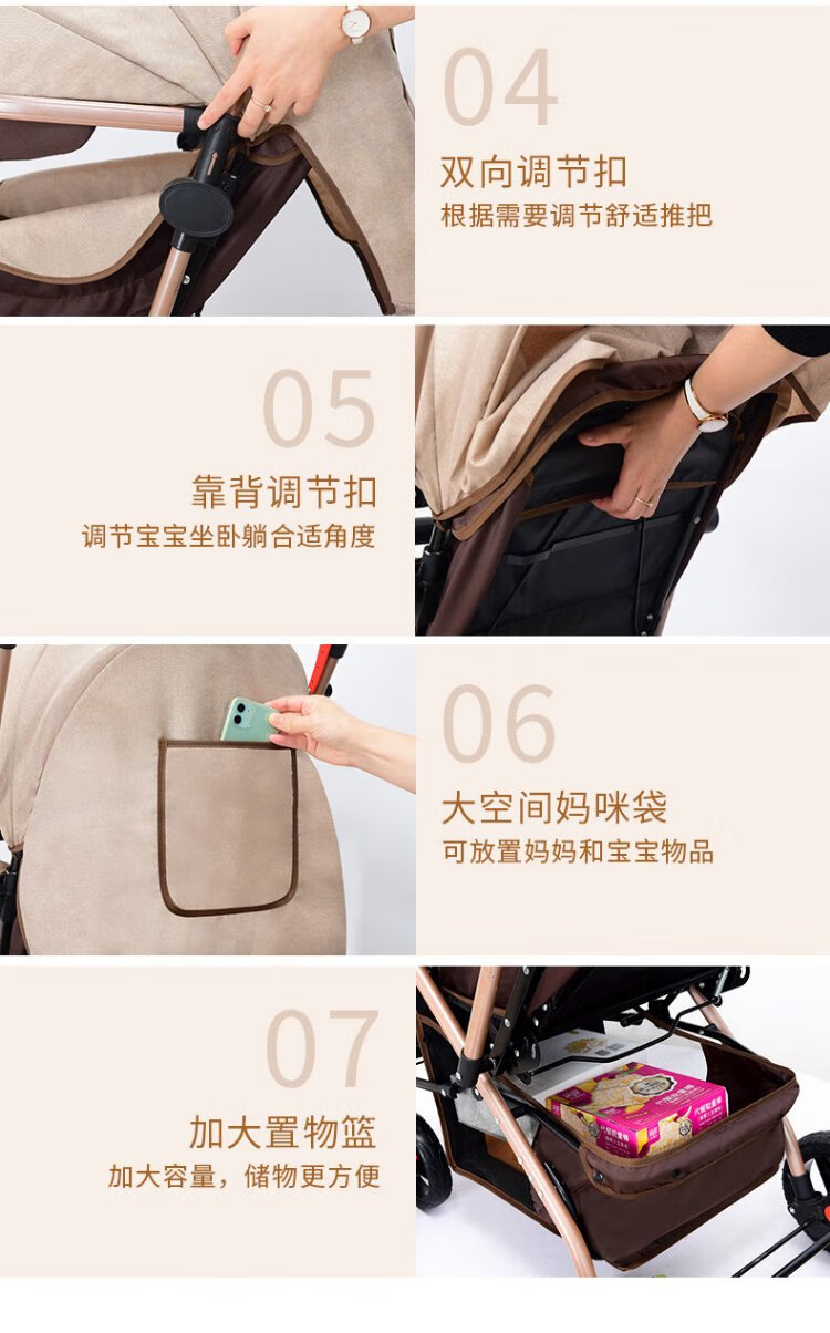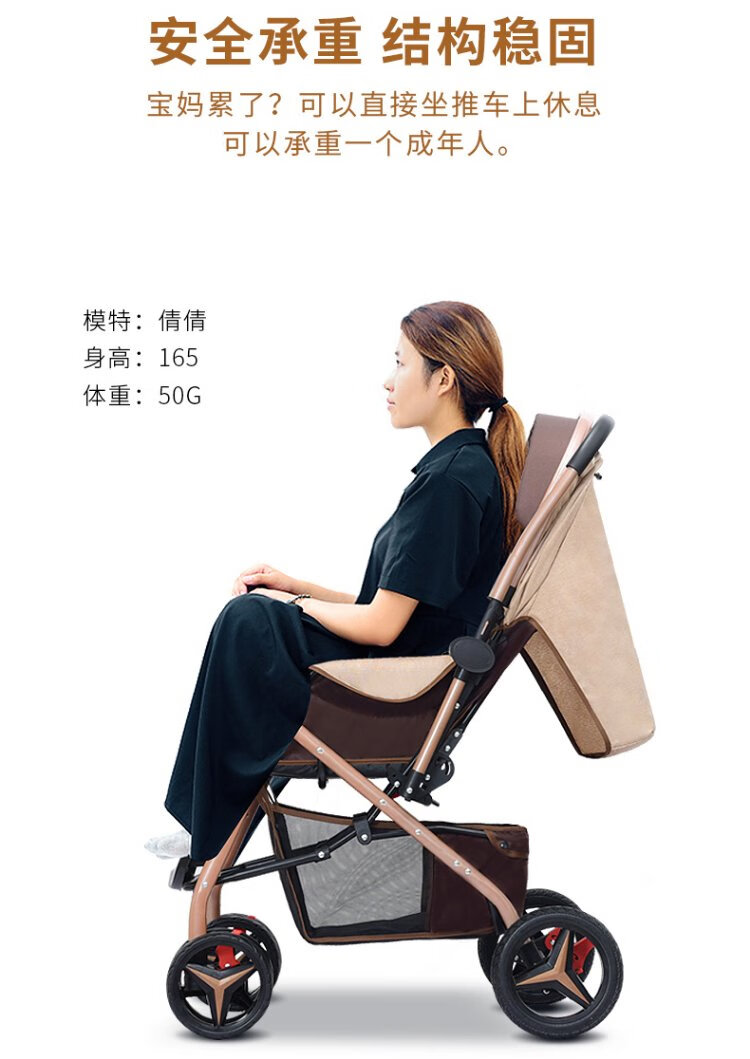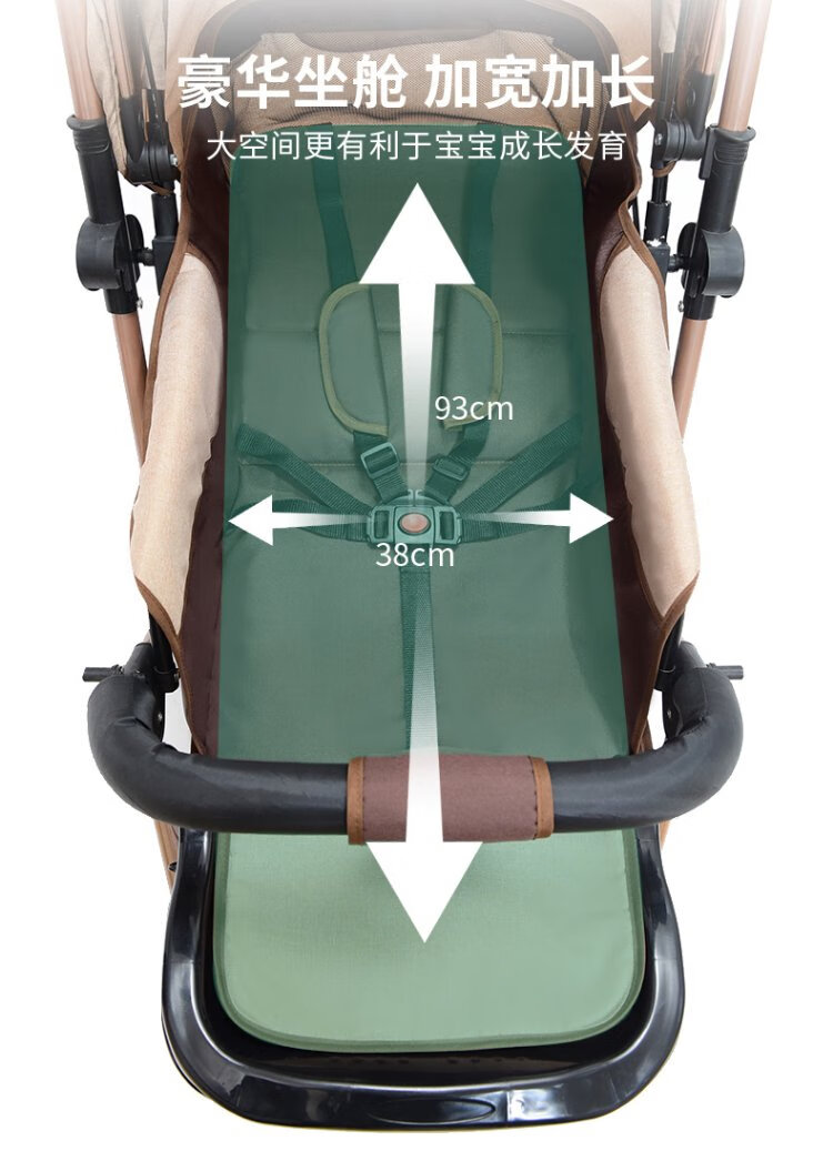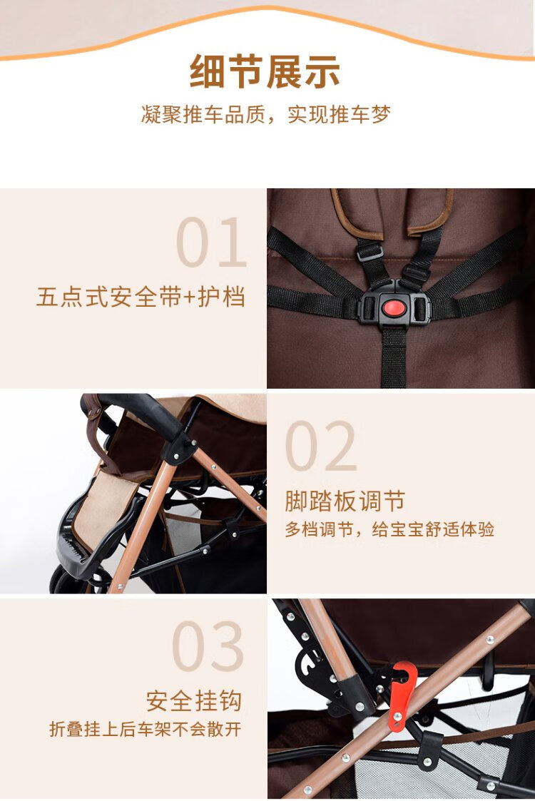 Haowei baby stroller can sit and lie down, two-way portable stroller 0-3 years old, lightweight BB stroller (the whole car is washable) Khaki + flagship model + two-way sit and lie down + music tray (the whole car is washable)