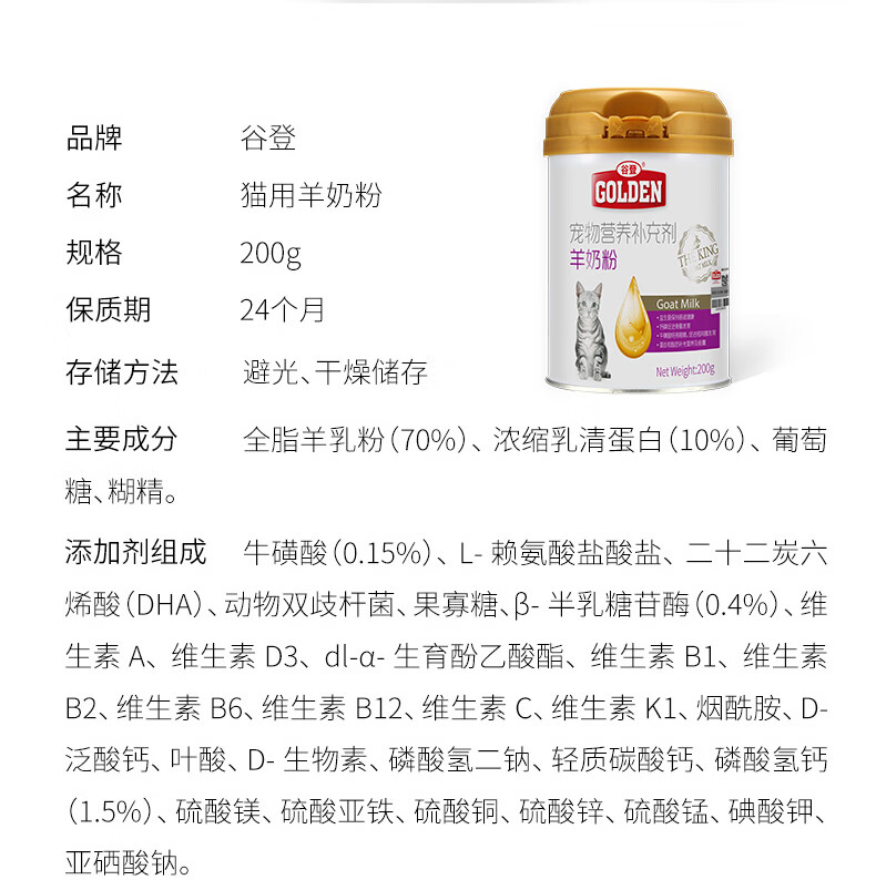 Guden Pet Goat Milk Powder Cat Special Newborn Milk Cat Goat Milk Pet Milk Powder Nutritional Supplement Pet Food Goat Milk Powder for Cats 200g/can