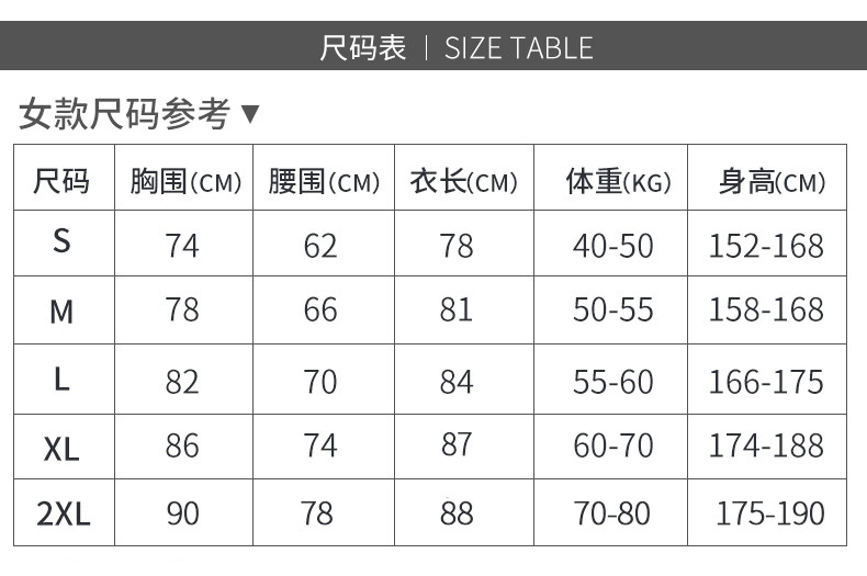 China (cm) 160-165/84-86 165-170 / 88-90 167-172 / 92-96 168-173 / 98-102 170-176 / 106-110